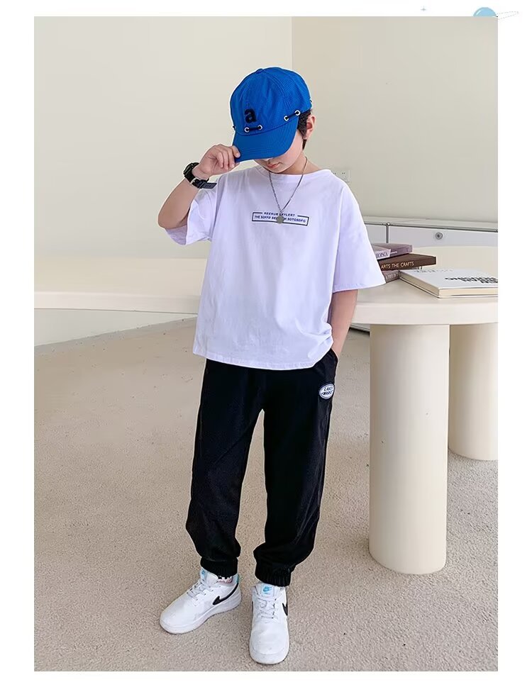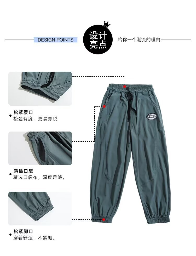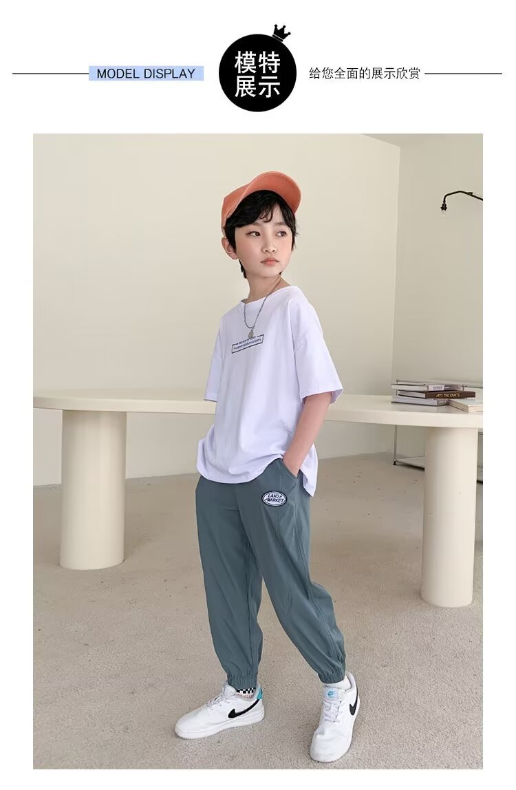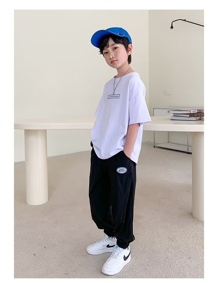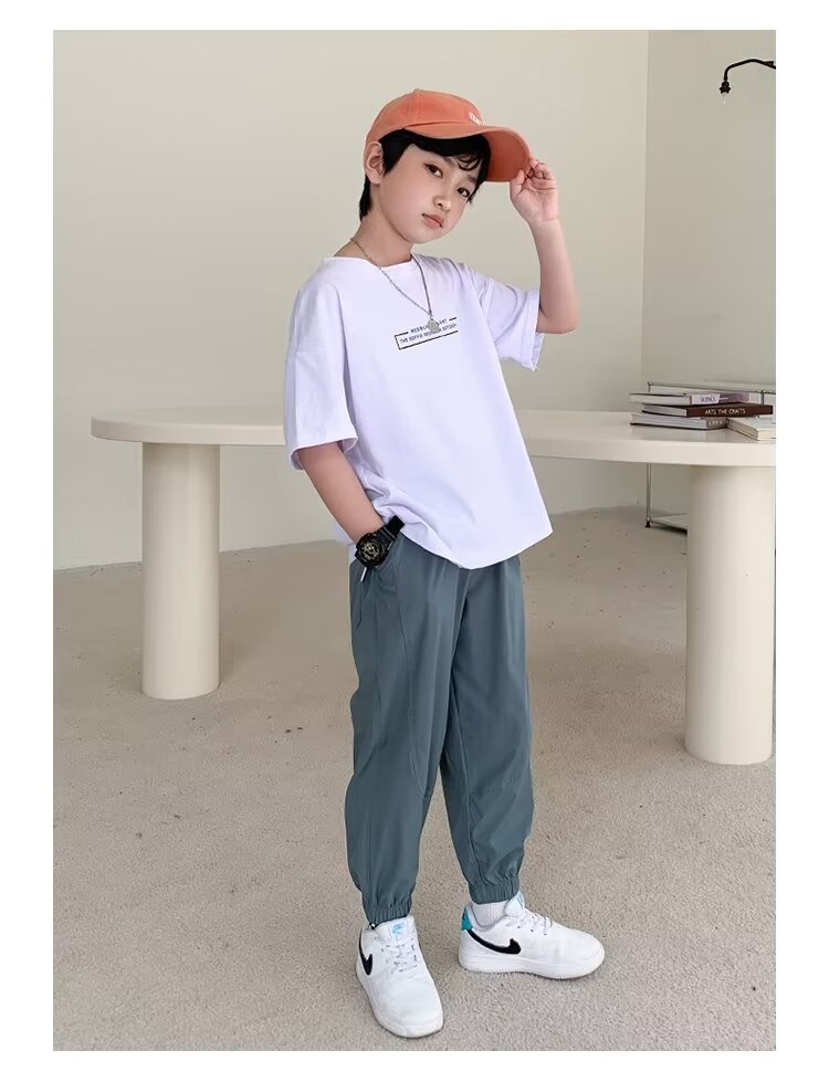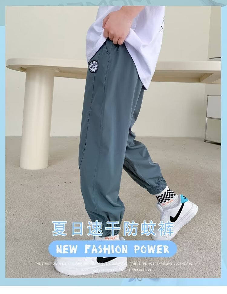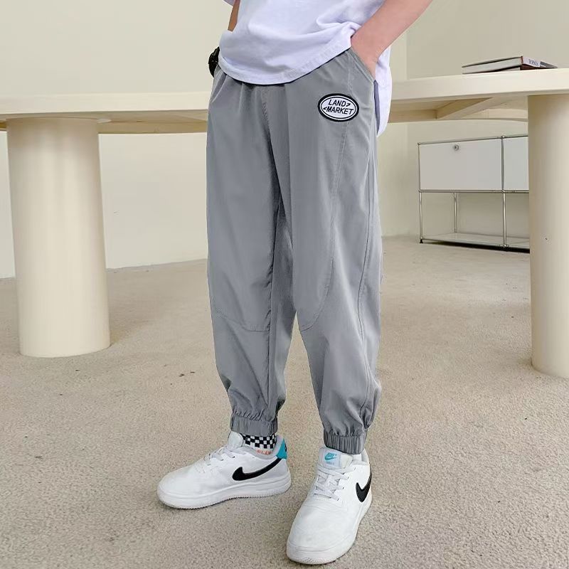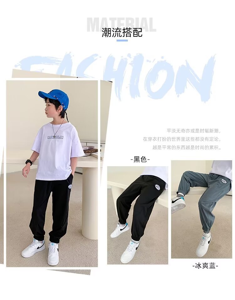2025 여름 소년 캐주얼 바지 얇은 할란 바지 미국 스타일 레트로 레그 바지 올 매치 트렌디 그레이 블랙
