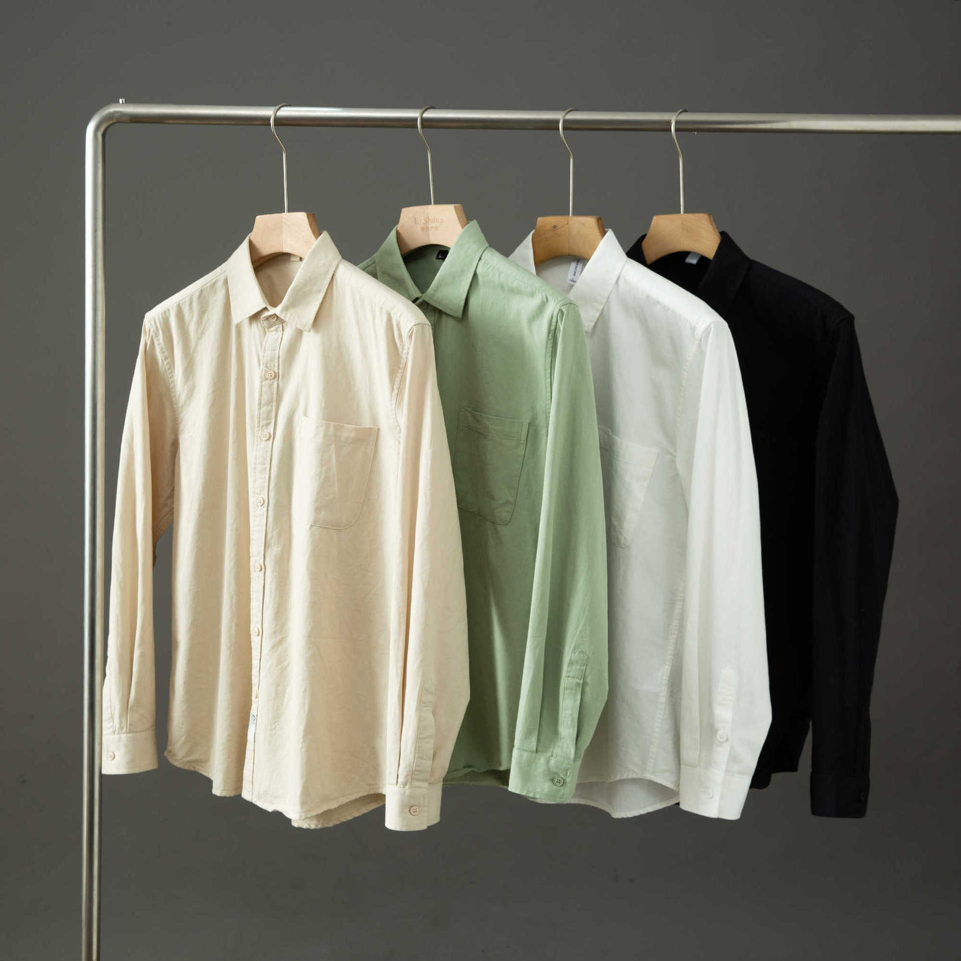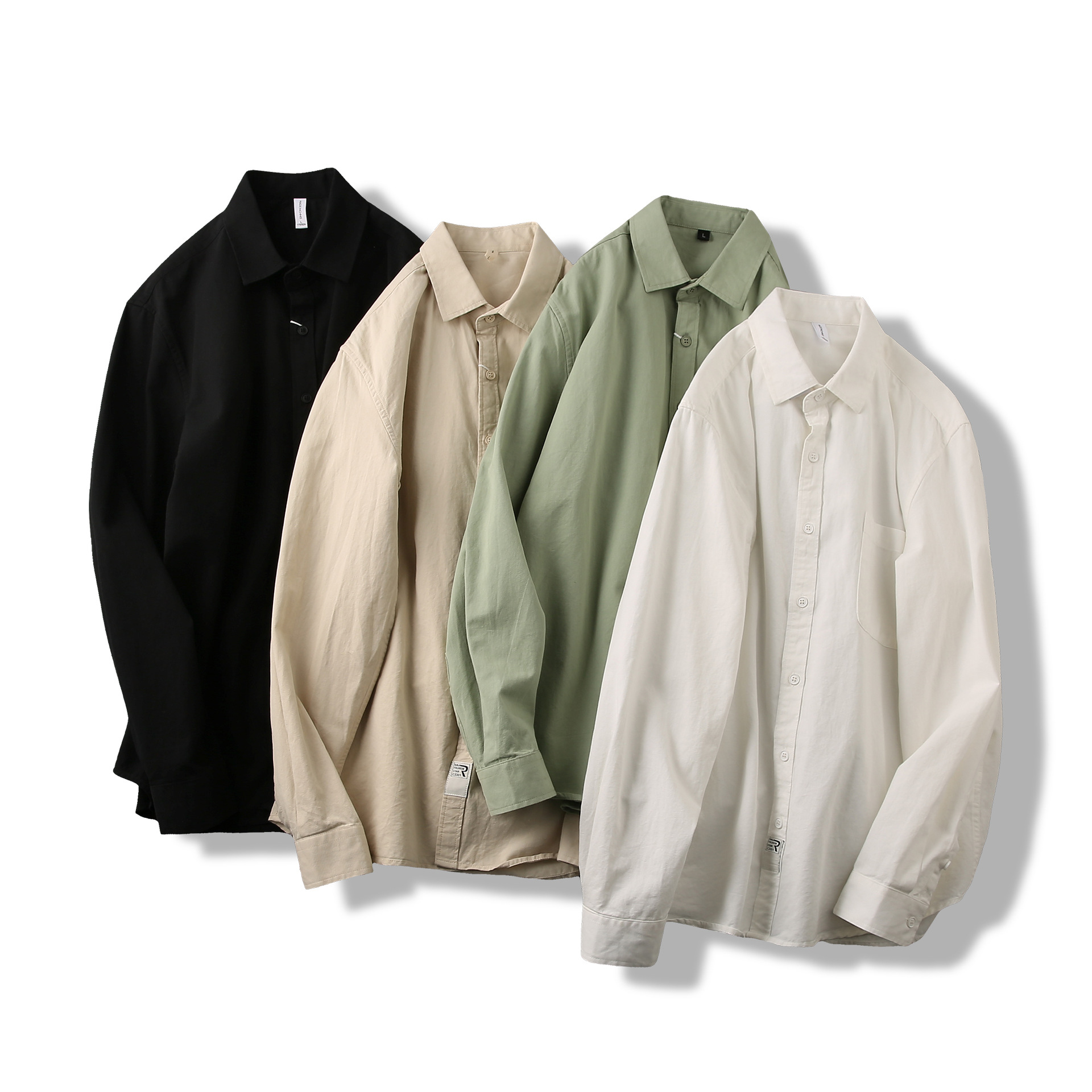 대외 무역 컷 라벨 남성 의류-간단한 단색 캐주얼 뾰족한 칼라 남성 긴팔 셔츠 봄 새로운 기본 셔츠스토어 가기
