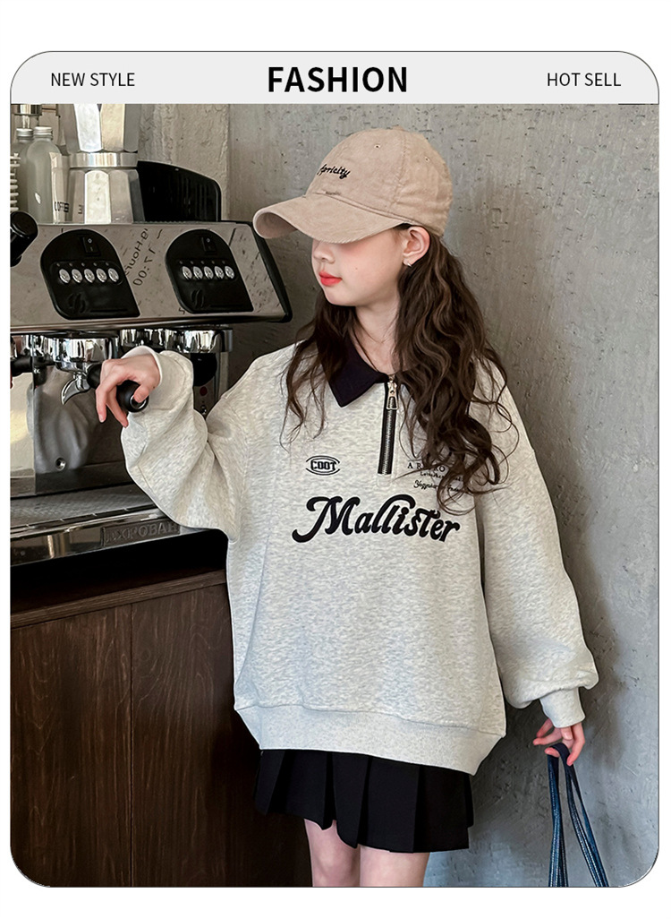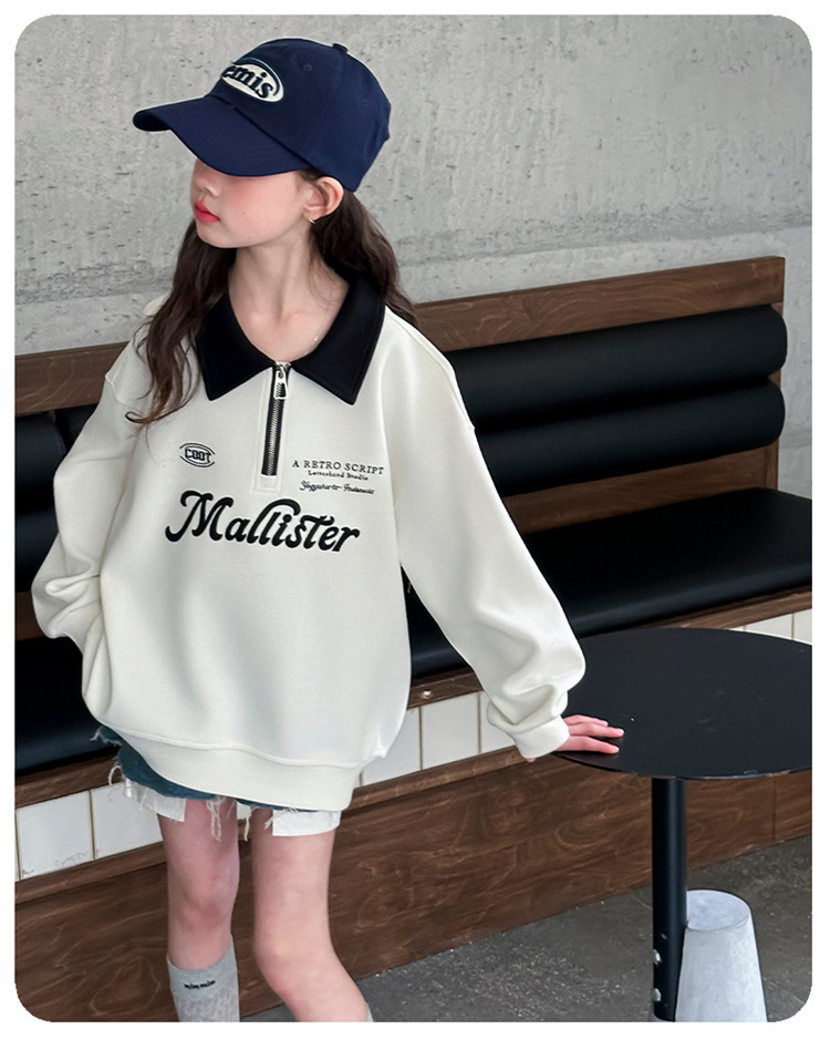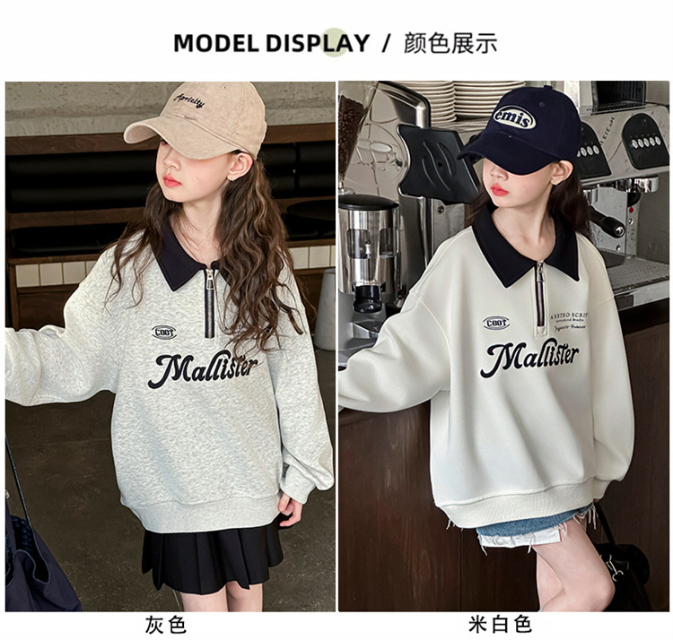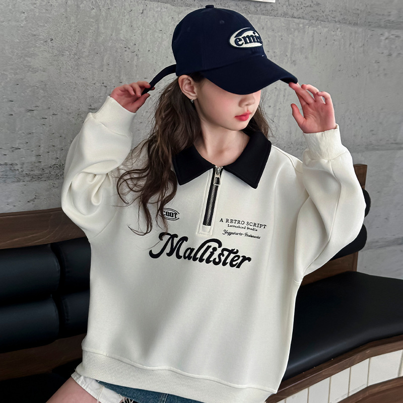 여자 지퍼 폴로 스웨터 2025 봄 새 스타일 큰 어린이 패셔너블 서양식 한국 올 매치 옷깃 탑베이스 셔츠