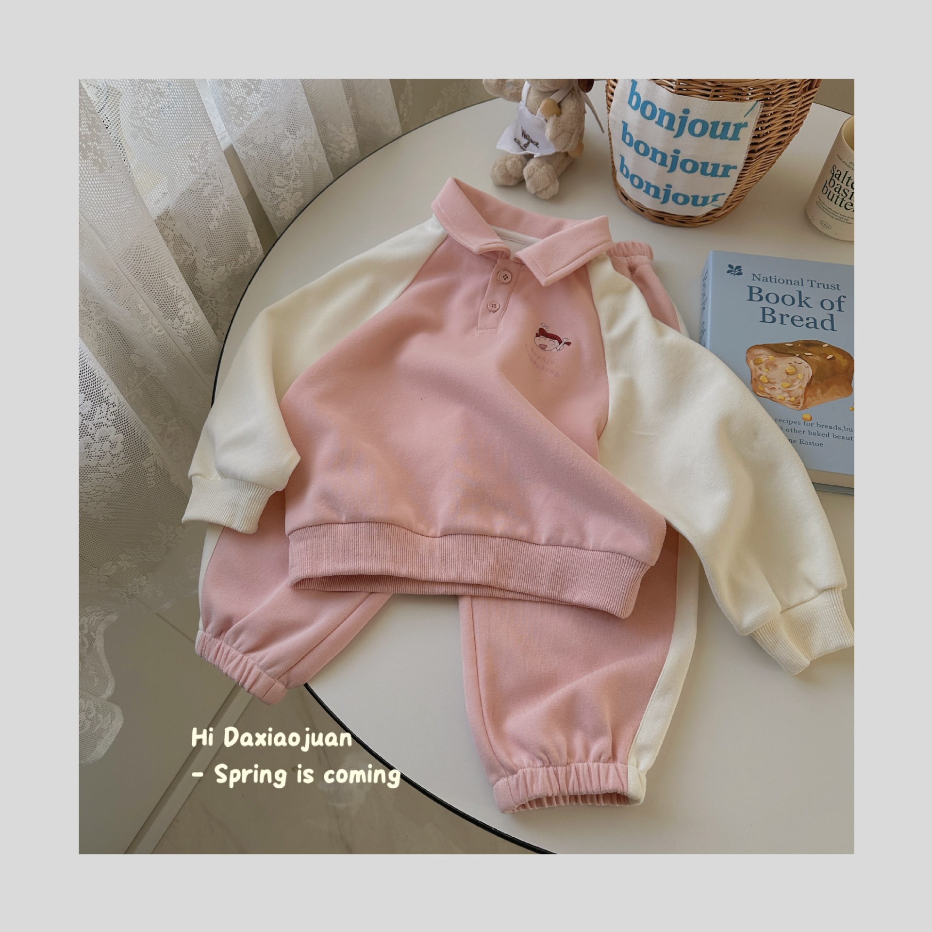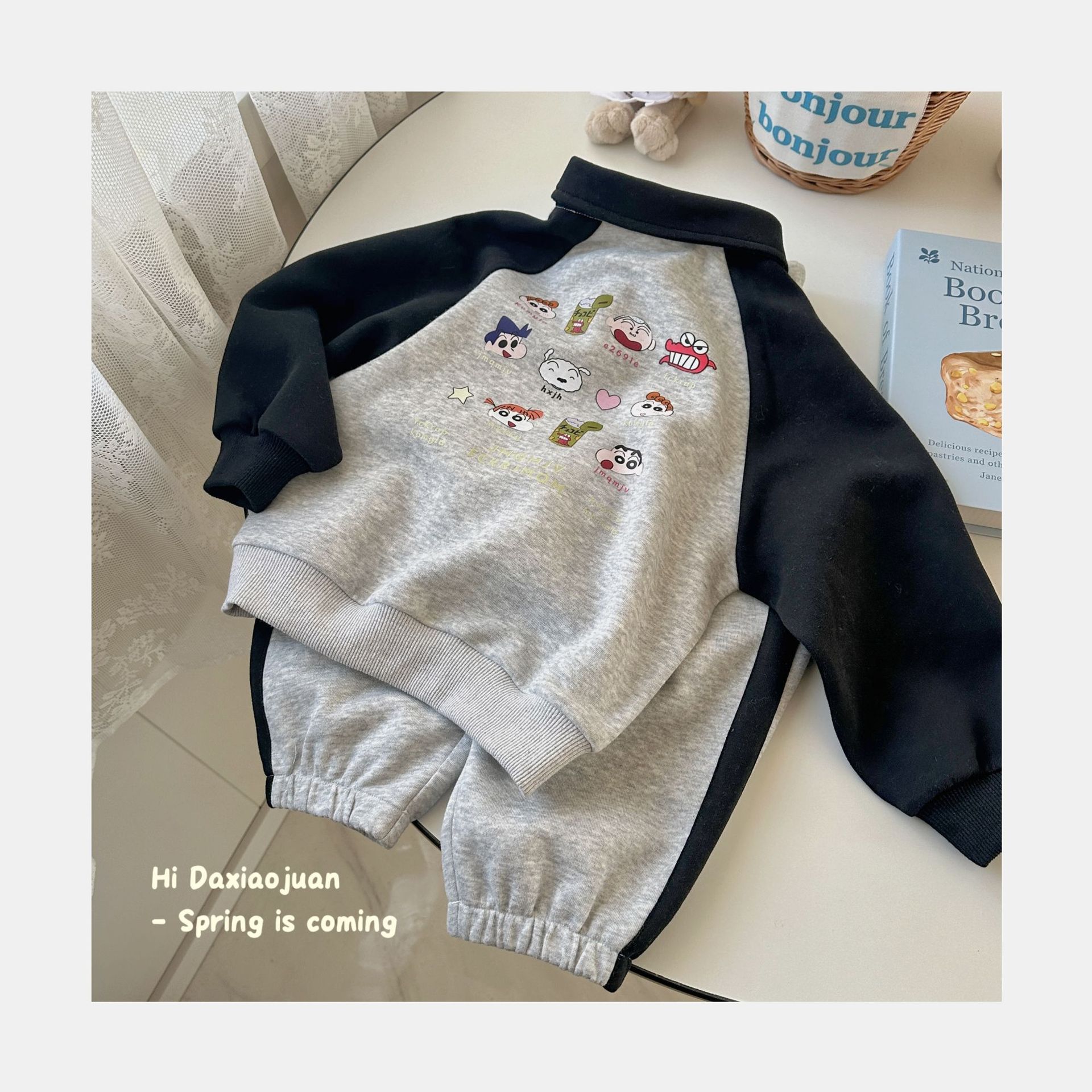 스팟 사이즈 롤 25 봄, 가을 어린이 만화 폴로 셔츠 옷깃 유치원 운동복 스포츠 캐주얼 바지 정장