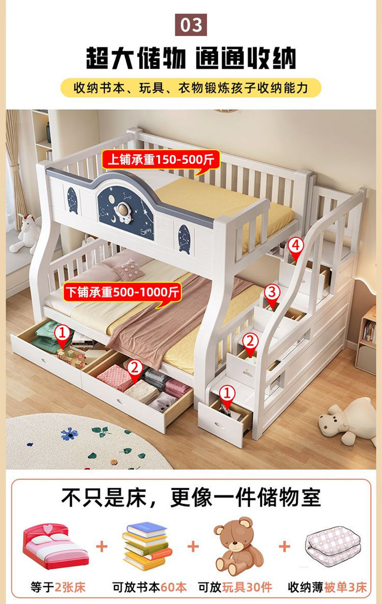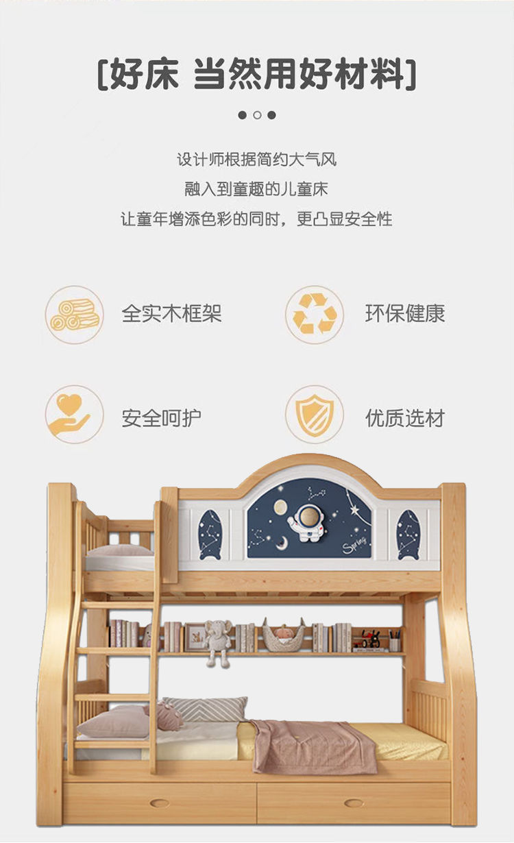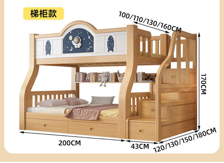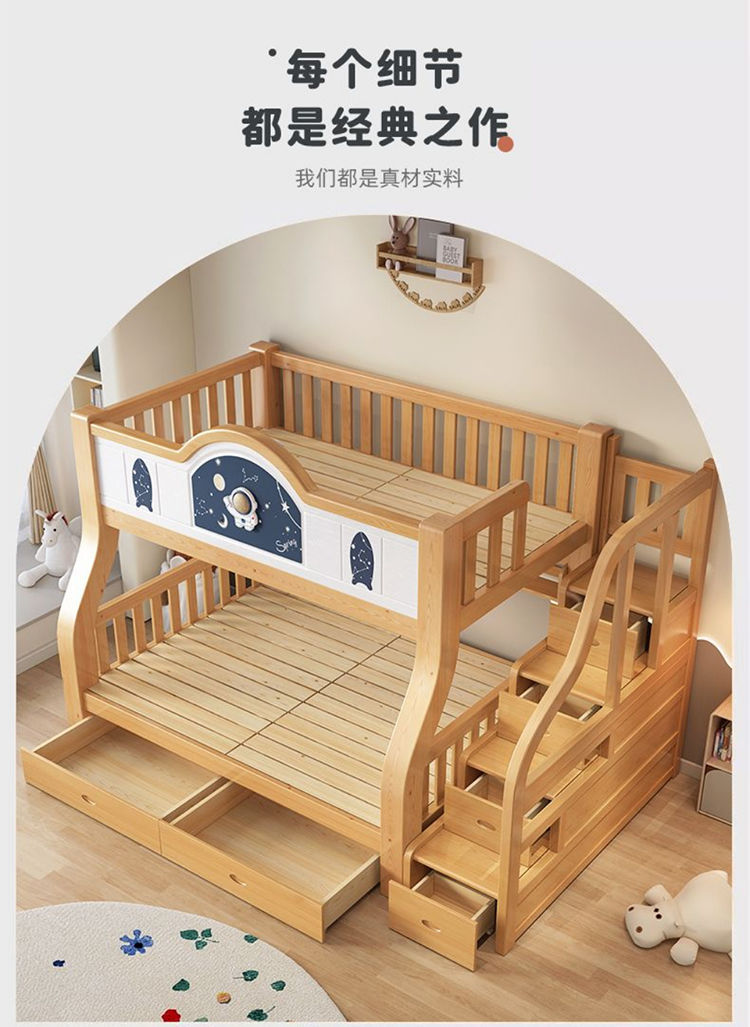 • -상단 침대 너비는 160cm, 하단은 180cm입니다. (순수한 원목으로 제작)