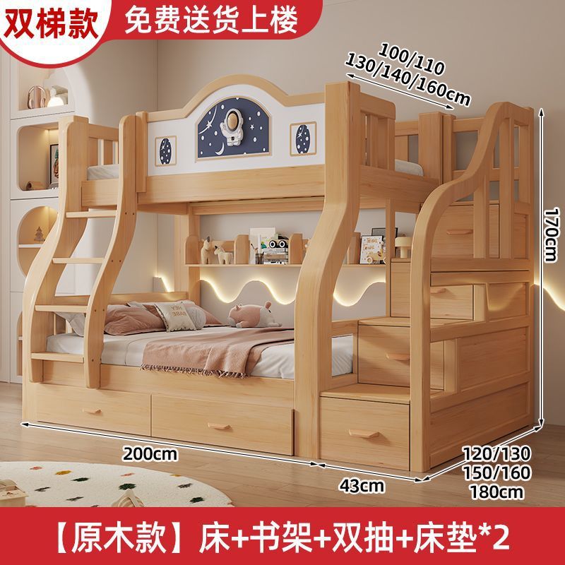 새로운 두꺼운 단단한 나무 침대 이층 어린이 침대 2 층 다기능 높은 낮은 침대 높은 낮은 침대스토어 가기