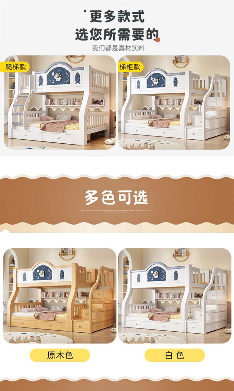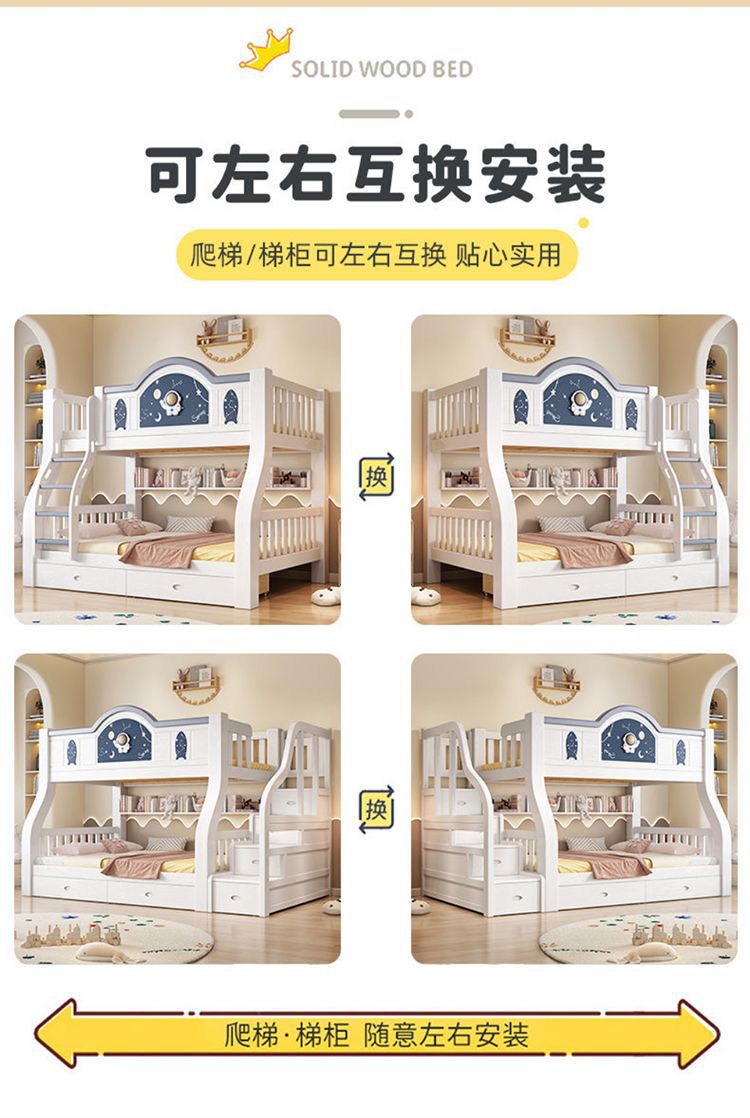 새로운 두꺼운 단단한 나무 침대 이층 어린이 침대 2 층 다기능 높은 낮은 침대 높은 낮은 침대