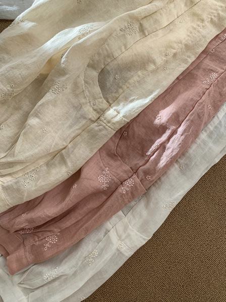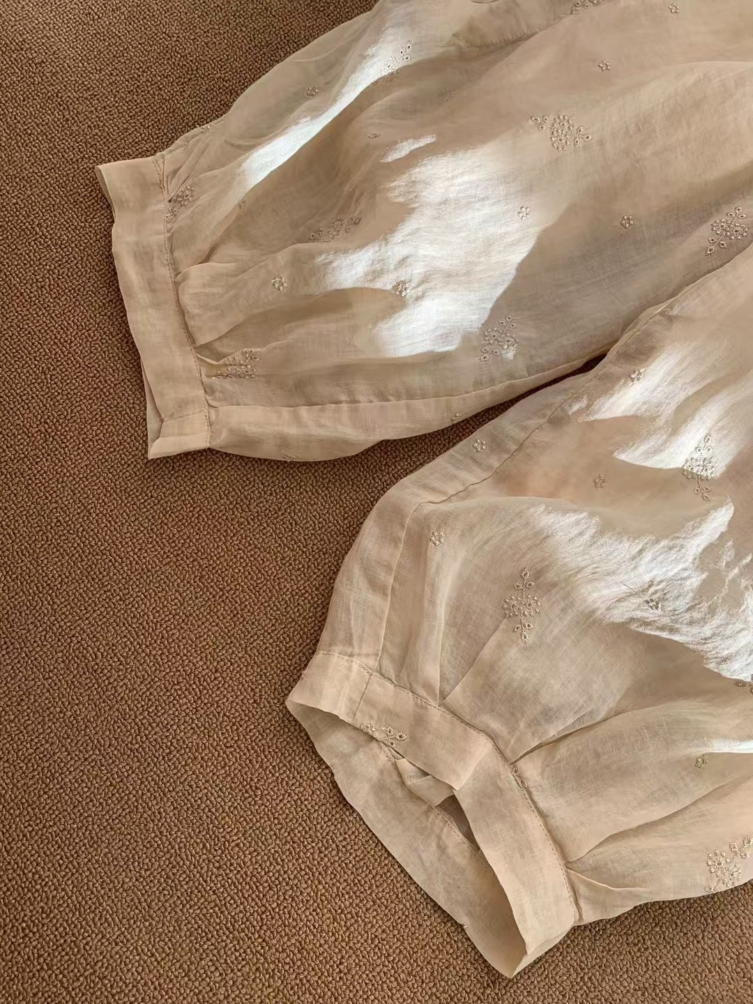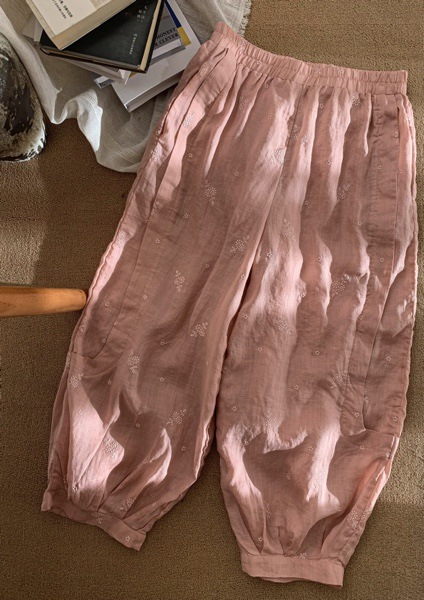 예술적 기질 순수한 색 자수 탄성 허리 넓은 다리 바지 여성의 2025 봄 새로운 느슨한 하렘 바지