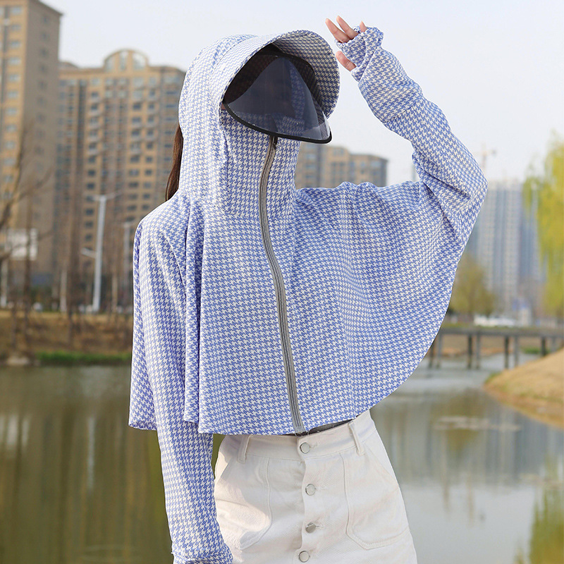 짧은 여름 태양 보호 의류 블라우스 태양 보호 의류 그늘 목도리 경량 야외 피부 의류 작은 원피스 얼굴 마스크
