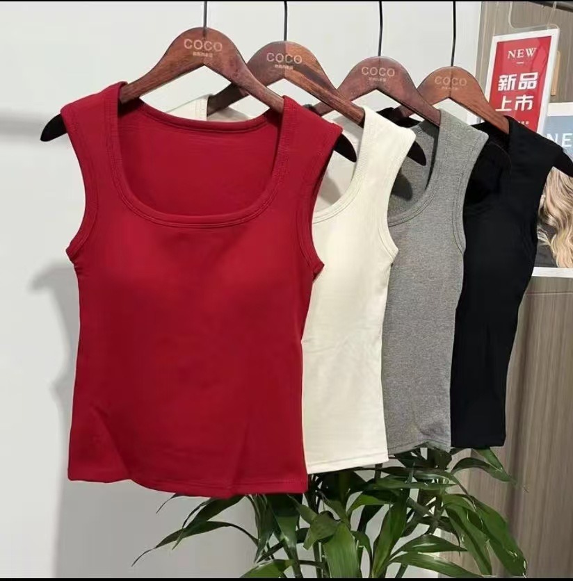 가슴 패드와 면화 조끼 고정 컵 슬링 여자 캐주얼 올 매치 슬림-내부 가슴 포장 튜브 탑이있는 민소매 탑스토어 가기