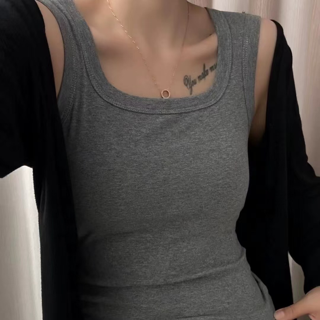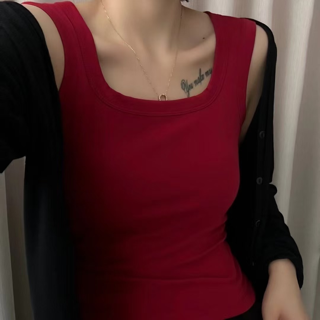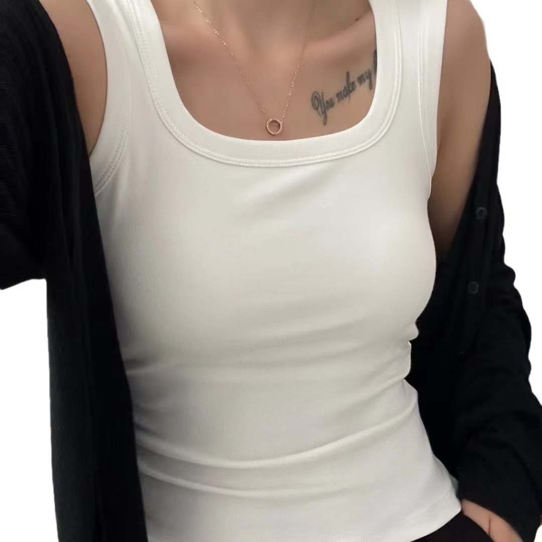 가슴 패드와 면화 조끼 고정 컵 슬링 여자 캐주얼 올 매치 슬림-내부 가슴 포장 튜브 탑이있는 민소매 탑