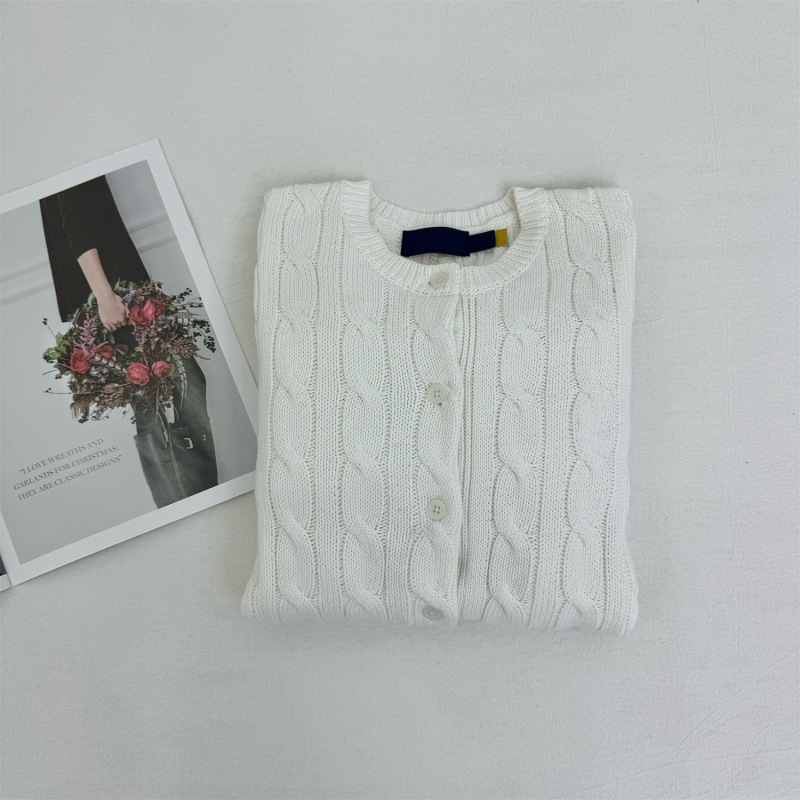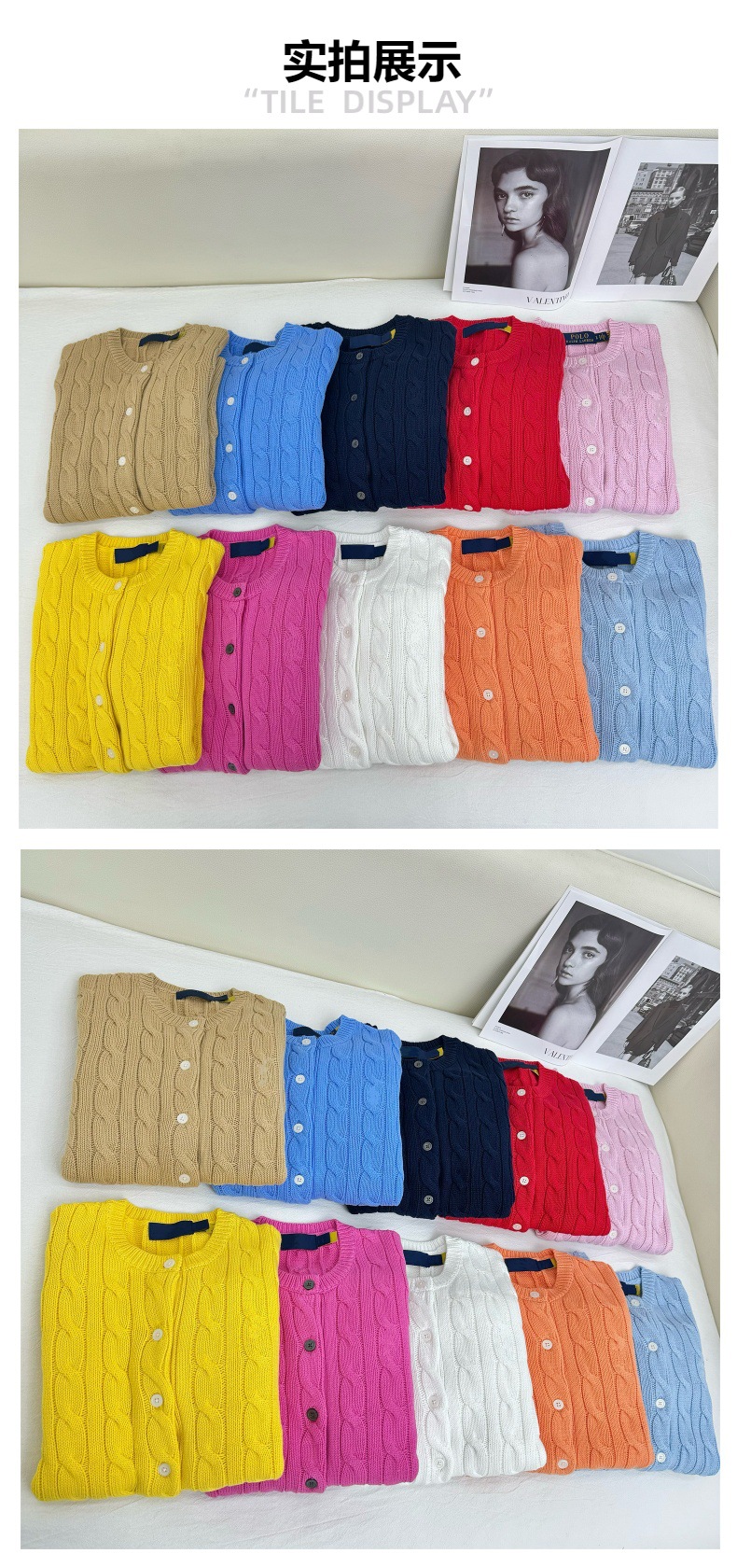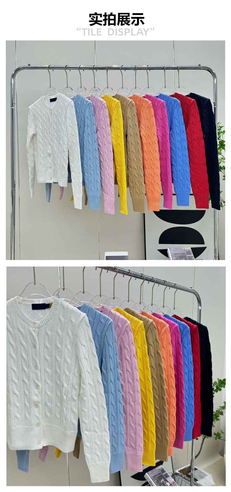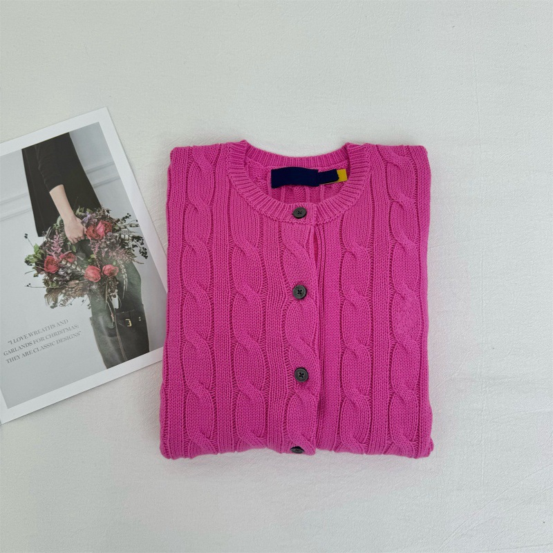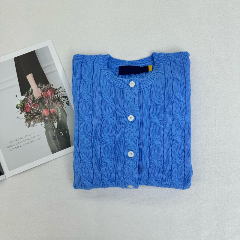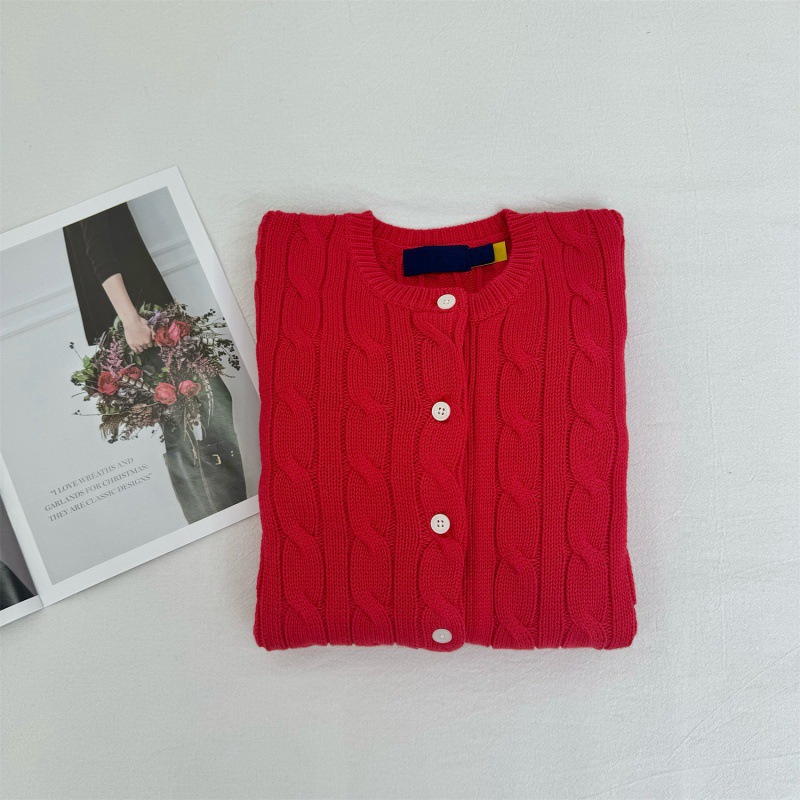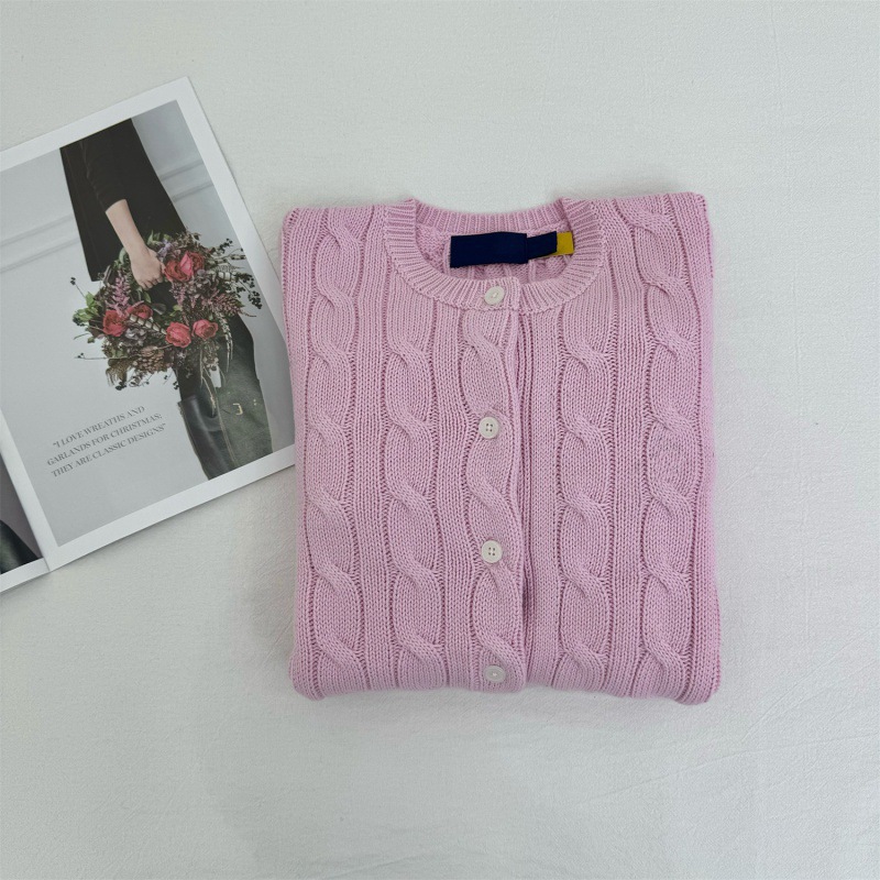 RL 러프 포니 자수 클래식 대마 꽃면 니트 카디건 스웨터 코트 여성