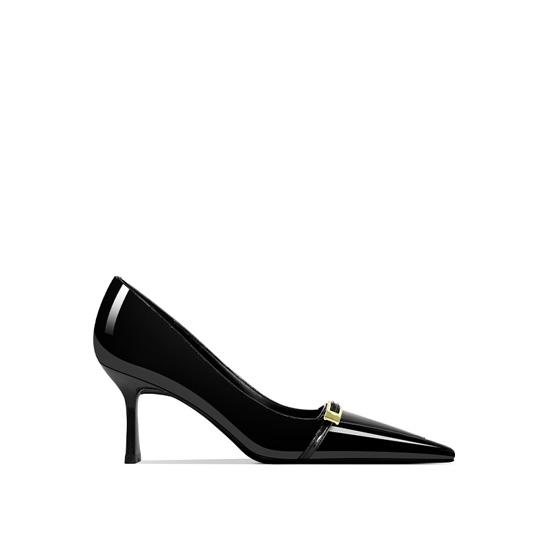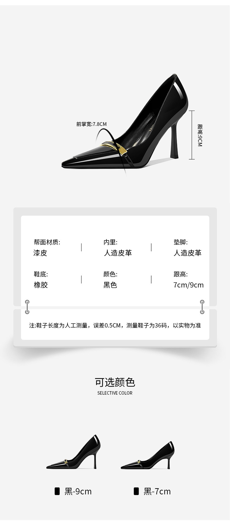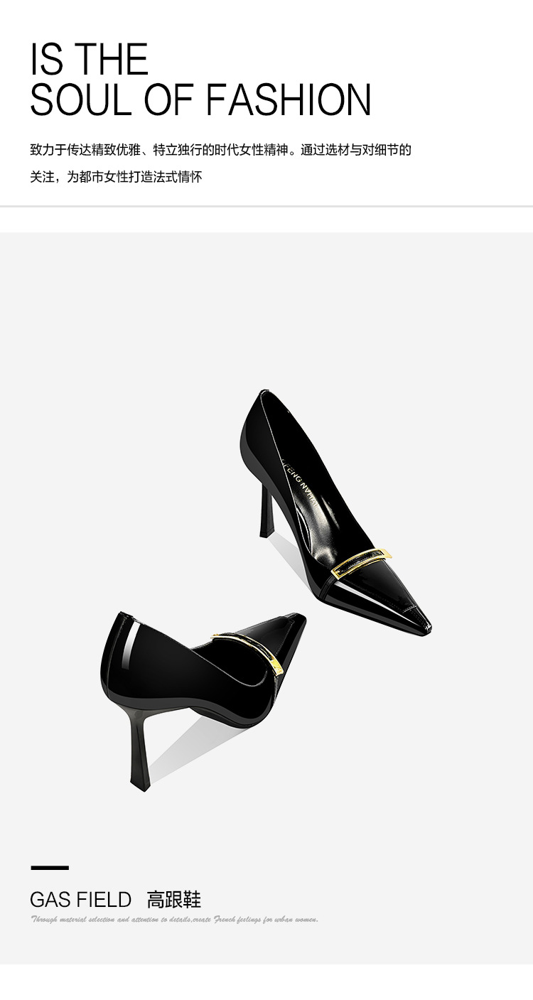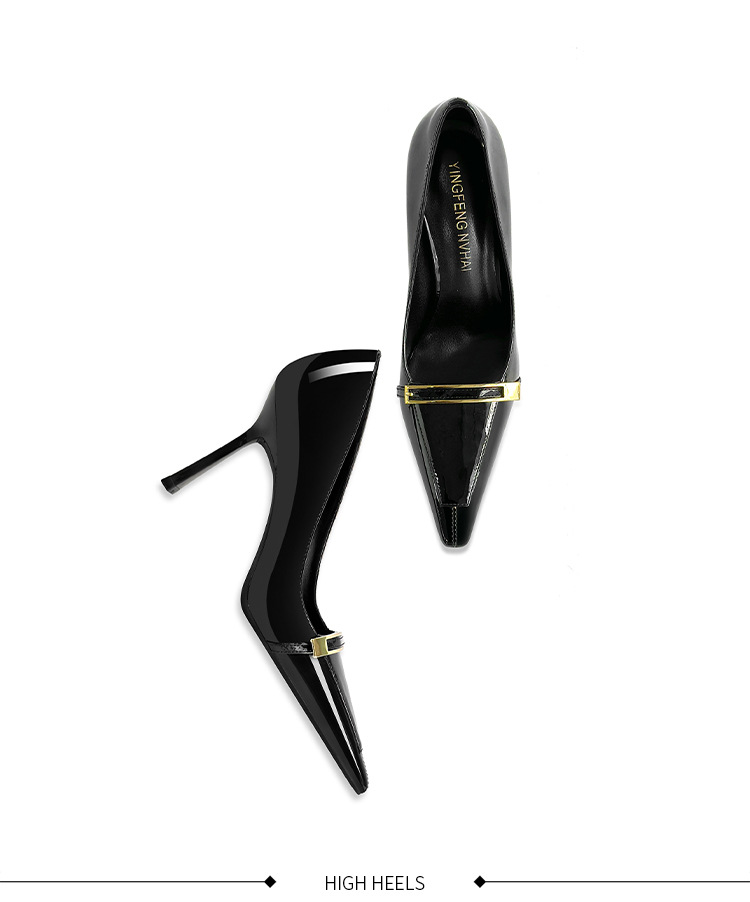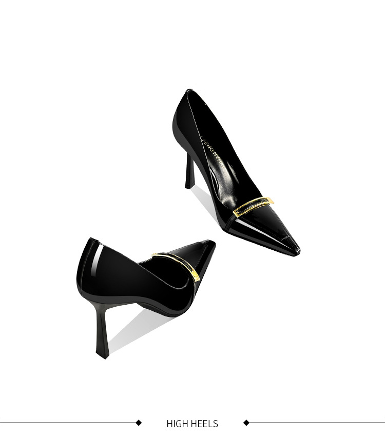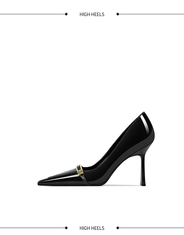 [재고 있음] 메탈 버클 섹시 슈즈, 스틸레토 힐, 뾰족코, 얕은 입구, 블랙, 우아한 스타일, 작은 사각코 하이힐 여성용스토어 가기