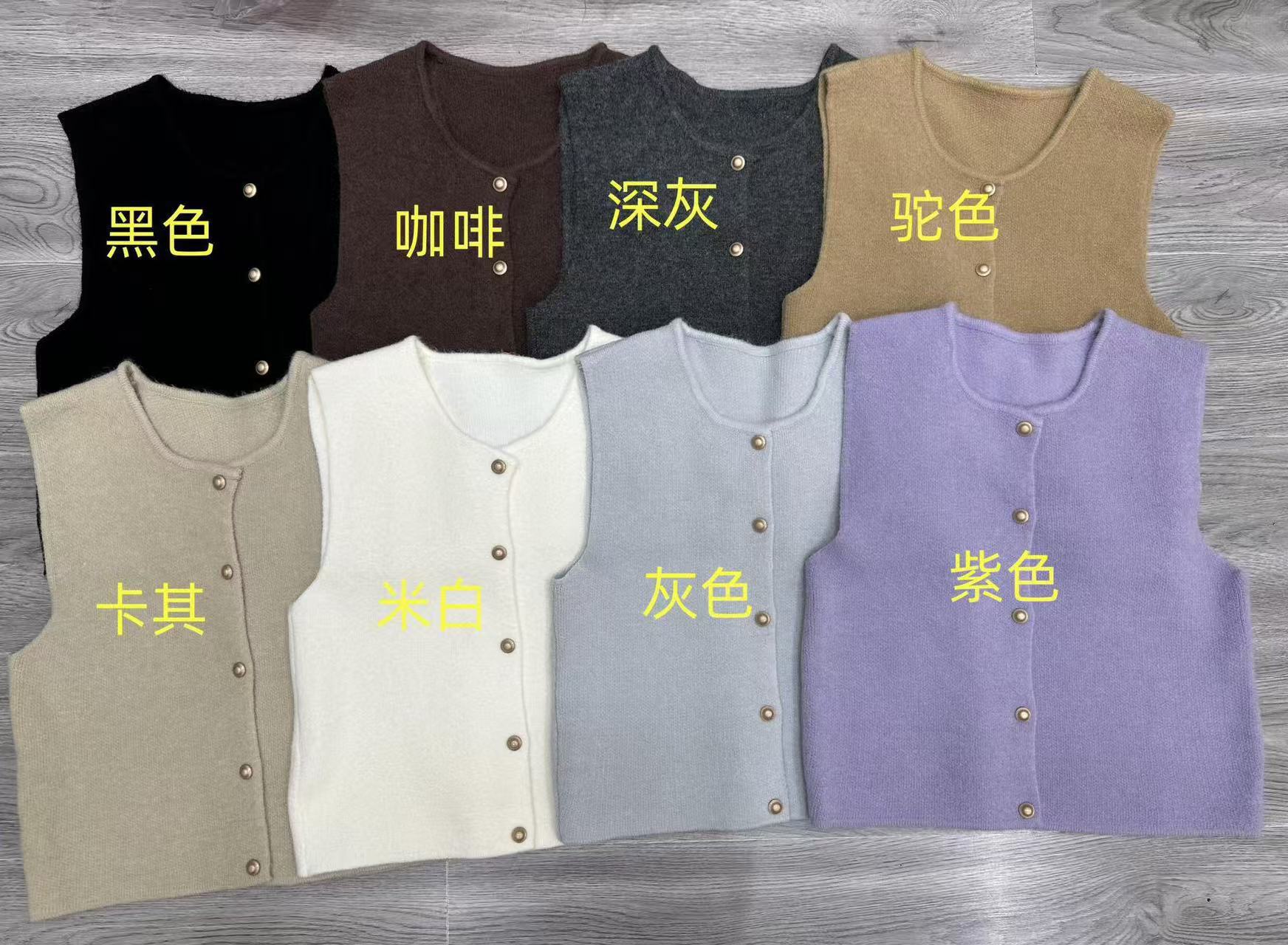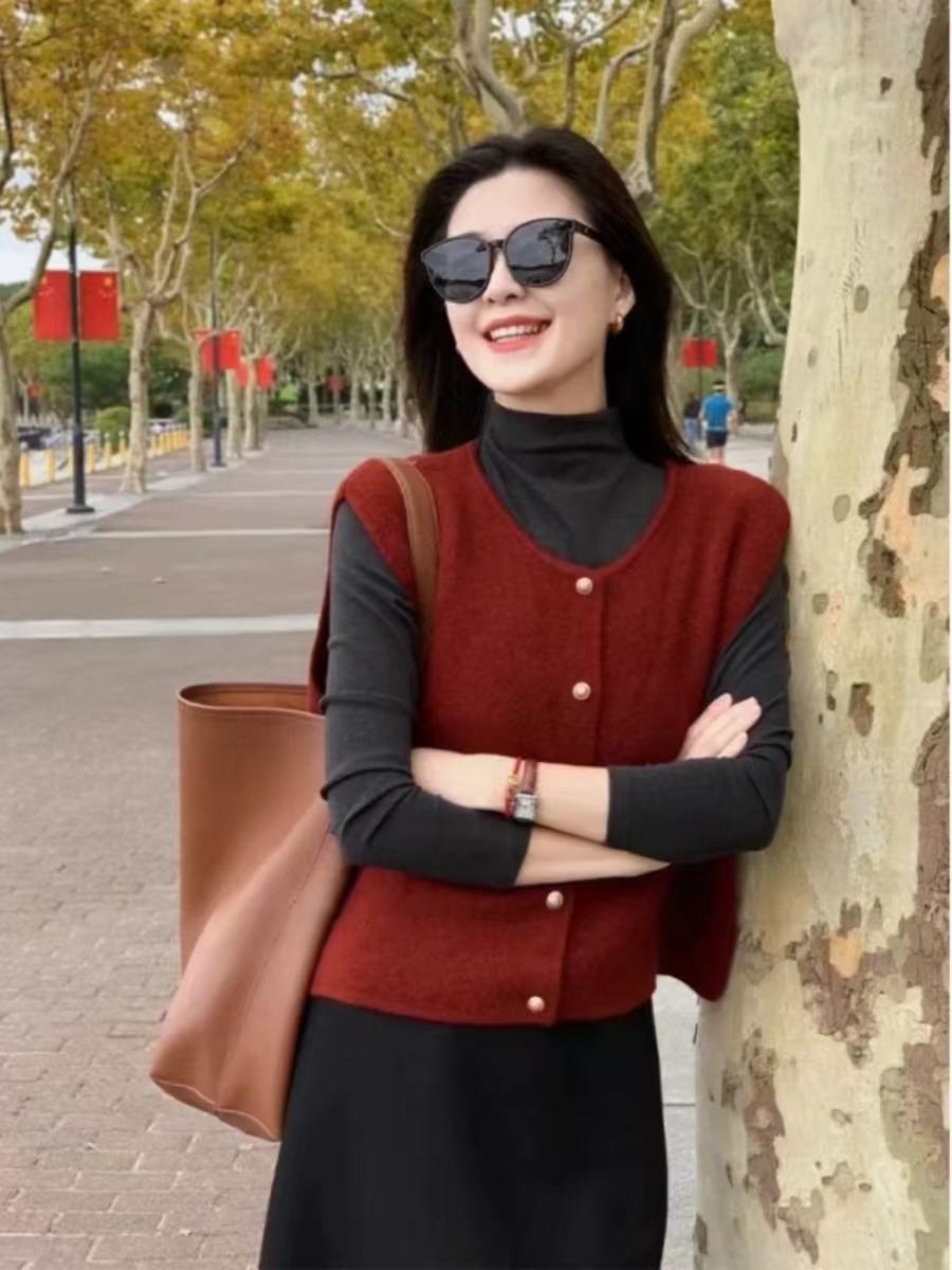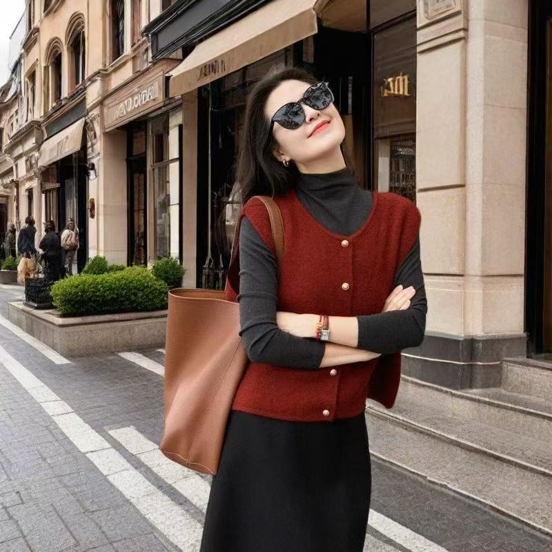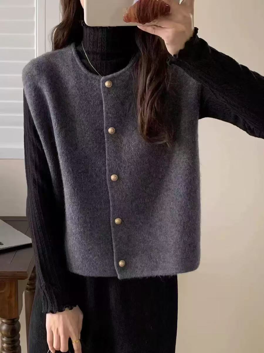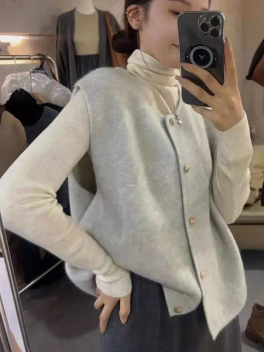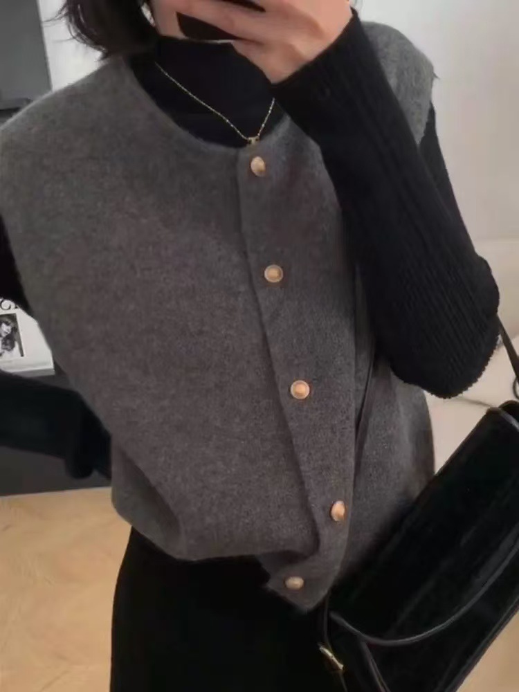 유럽과 미국의 한국 스타일 라운드 넥 솔리드 컬러 니트 조끼 여성 스택 가을 및 겨울 새로운 싱글 브레스트 느슨한 외부 스웨터 여성용