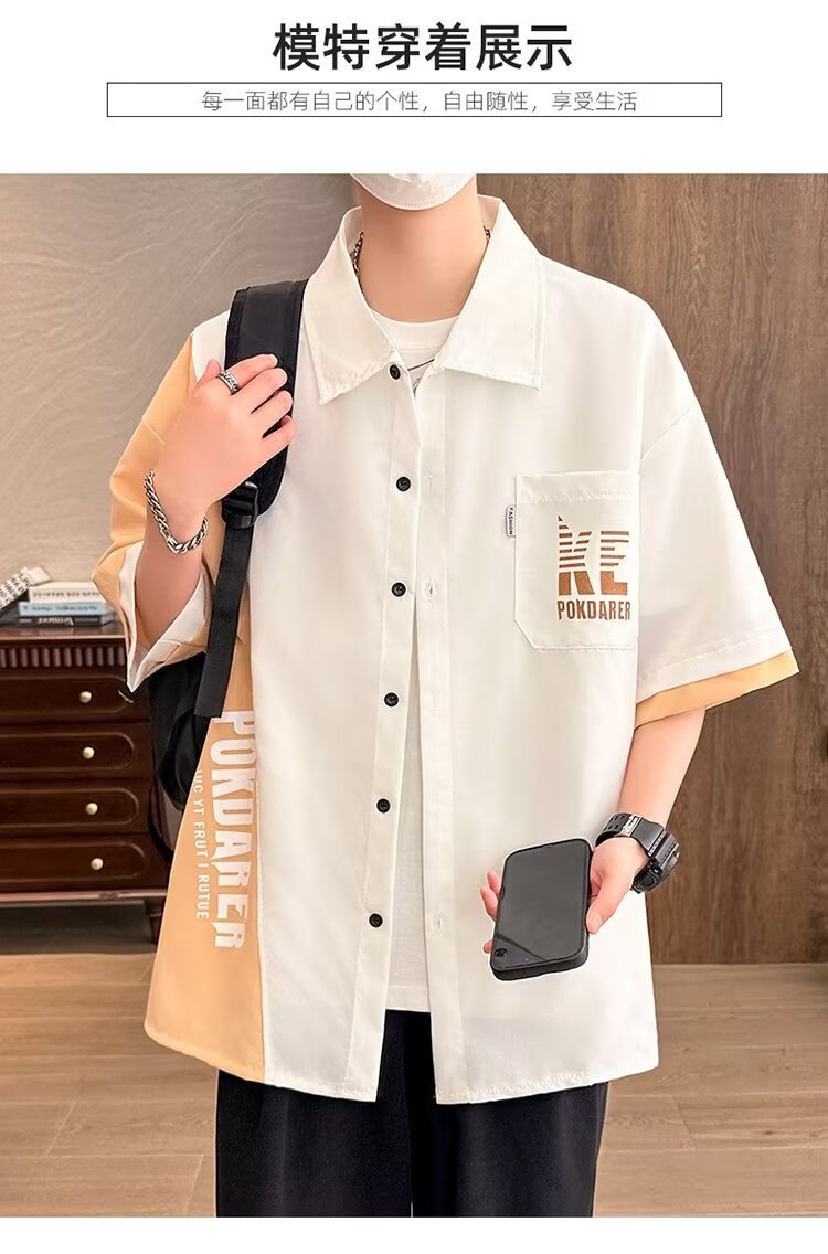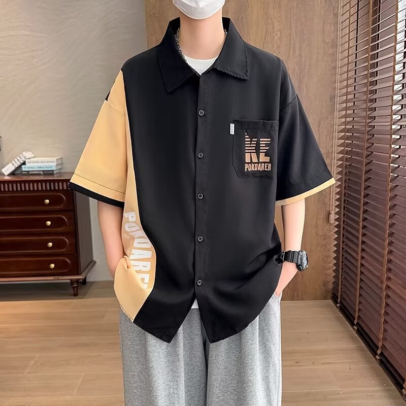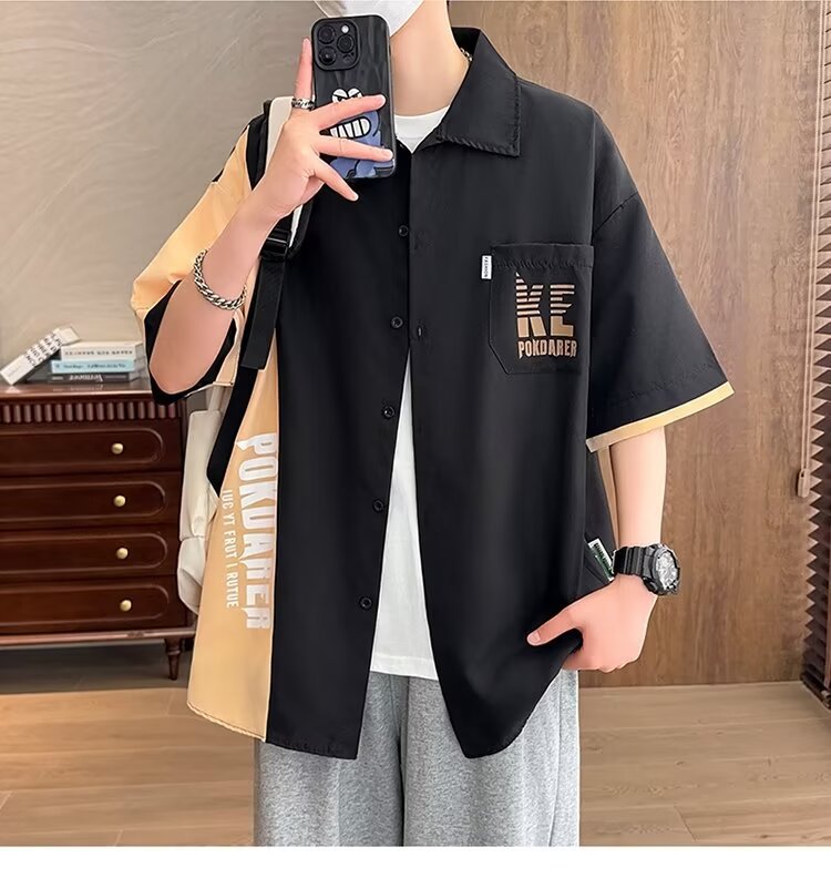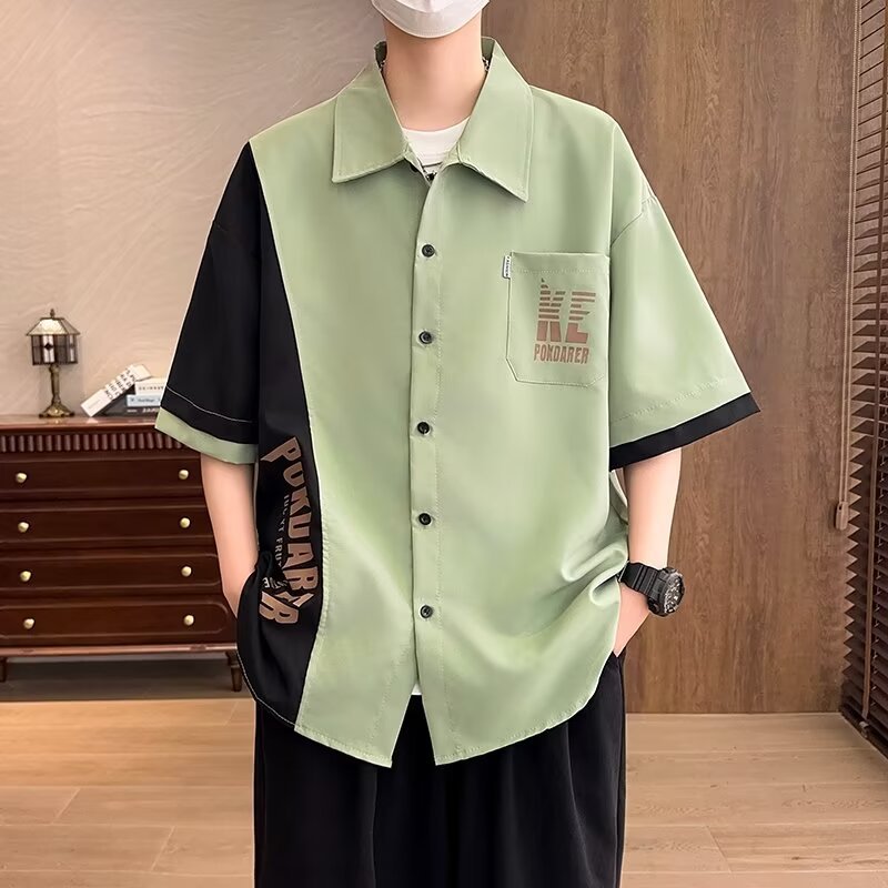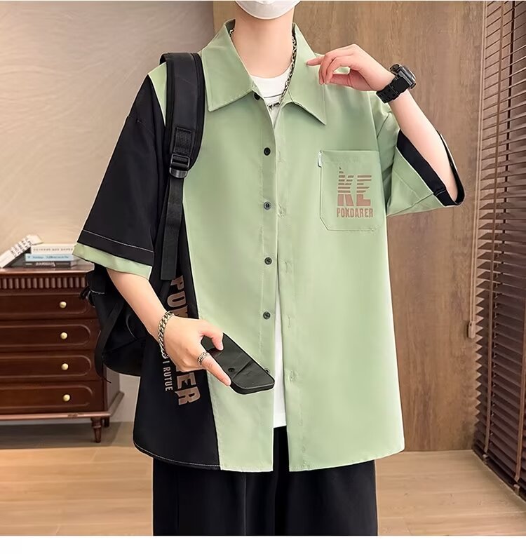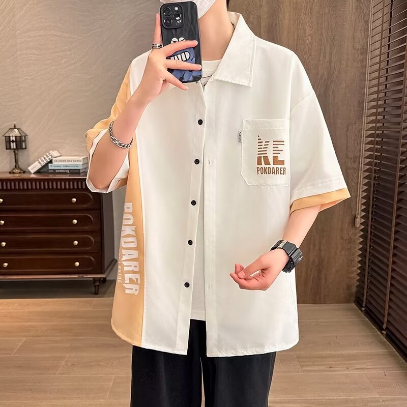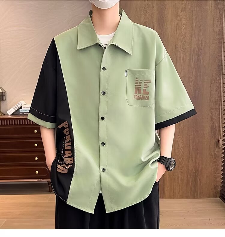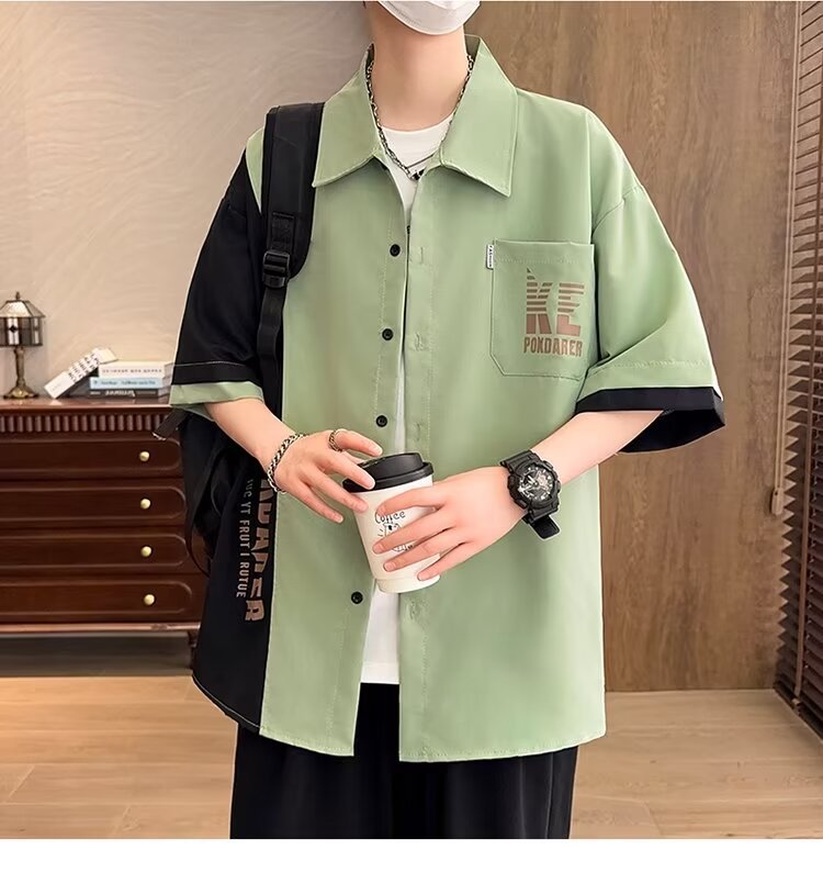 플러스 사이즈 크록 반팔 셔츠 남자의 여름 얇은 느슨한 디자인 센스 반팔 셔츠 남자의 유행 캐주얼 자켓스토어 가기