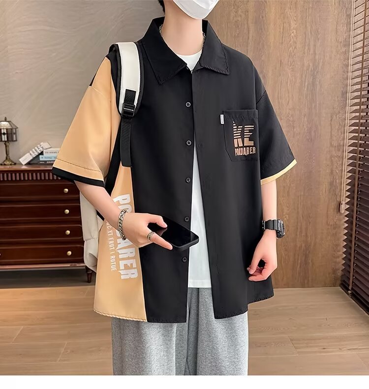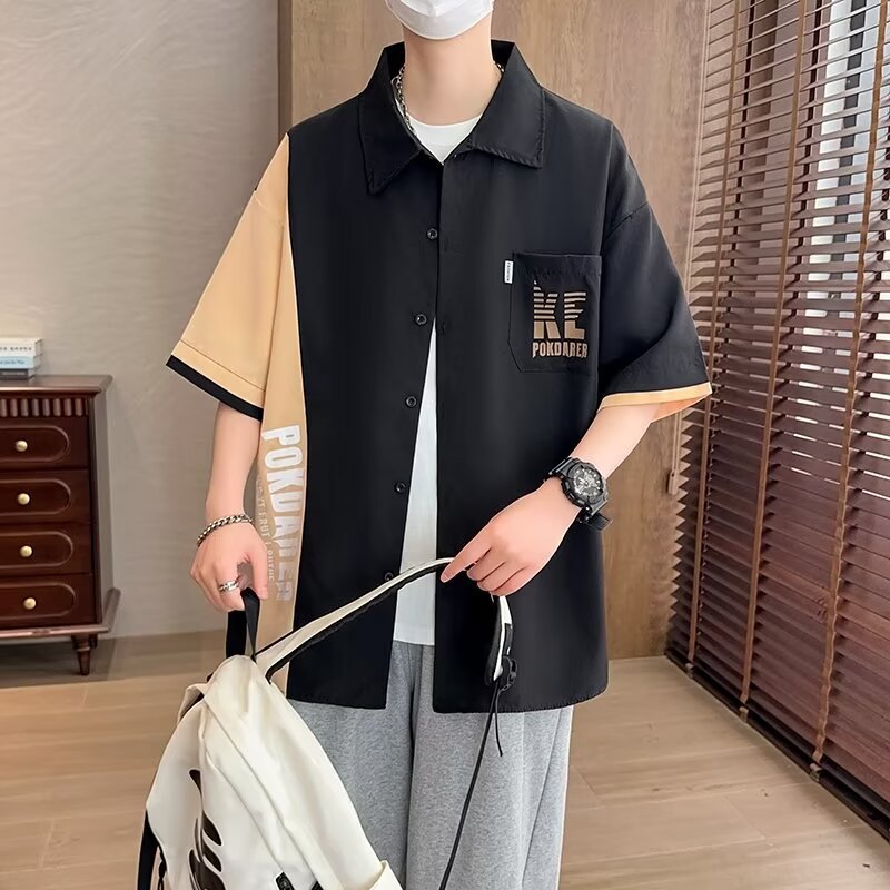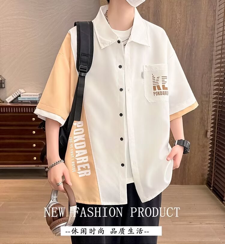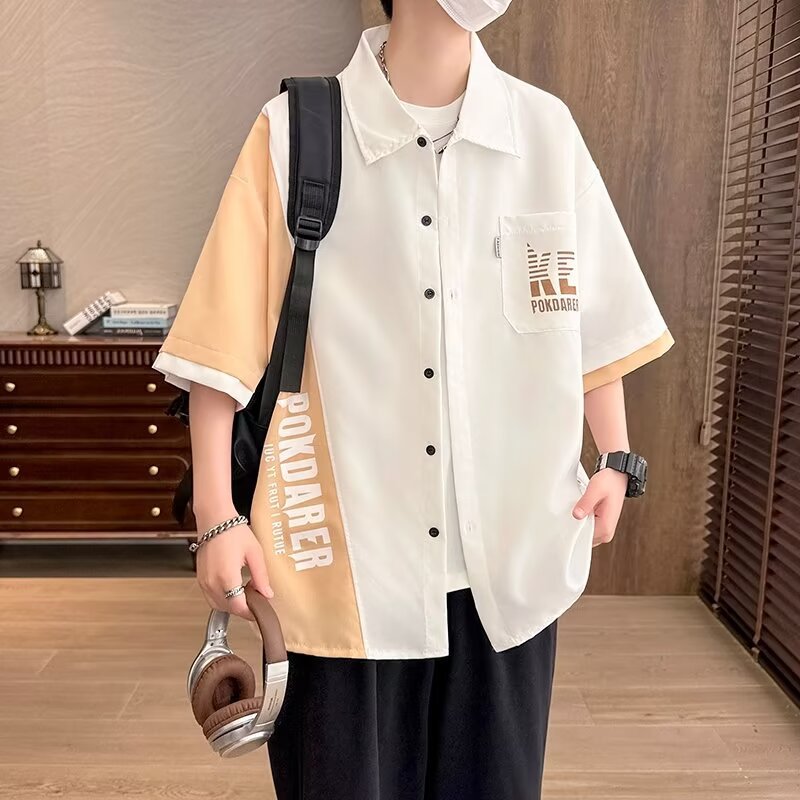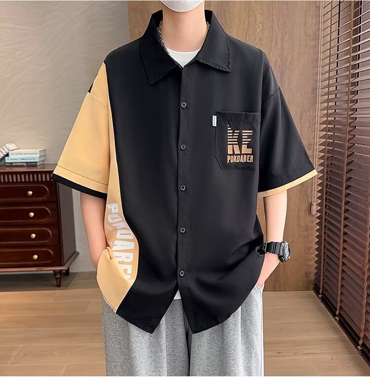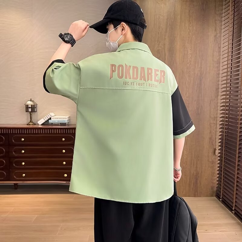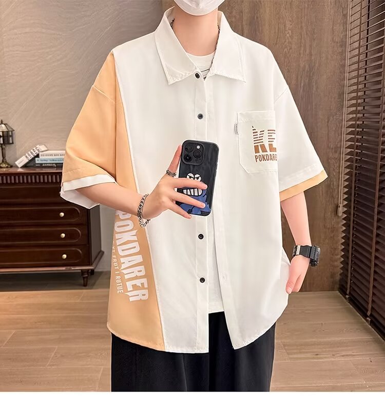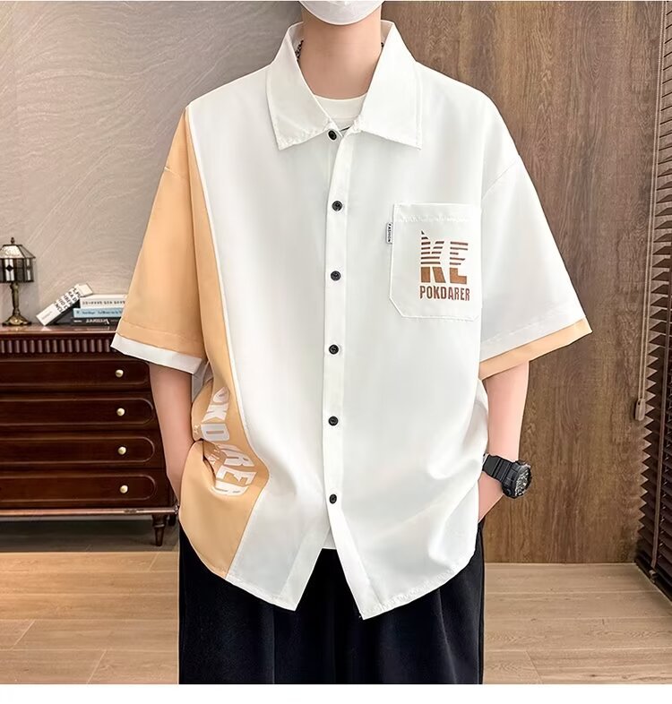 플러스 사이즈 크록 반팔 셔츠 남자의 여름 얇은 느슨한 디자인 센스 반팔 셔츠 남자의 유행 캐주얼 자켓스토어 가기
