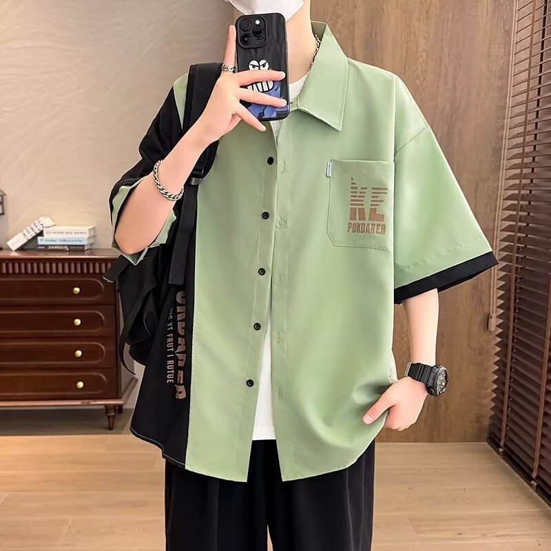플러스 사이즈 크록 반팔 셔츠 남자의 여름 얇은 느슨한 디자인 센스 반팔 셔츠 남자의 유행 캐주얼 자켓