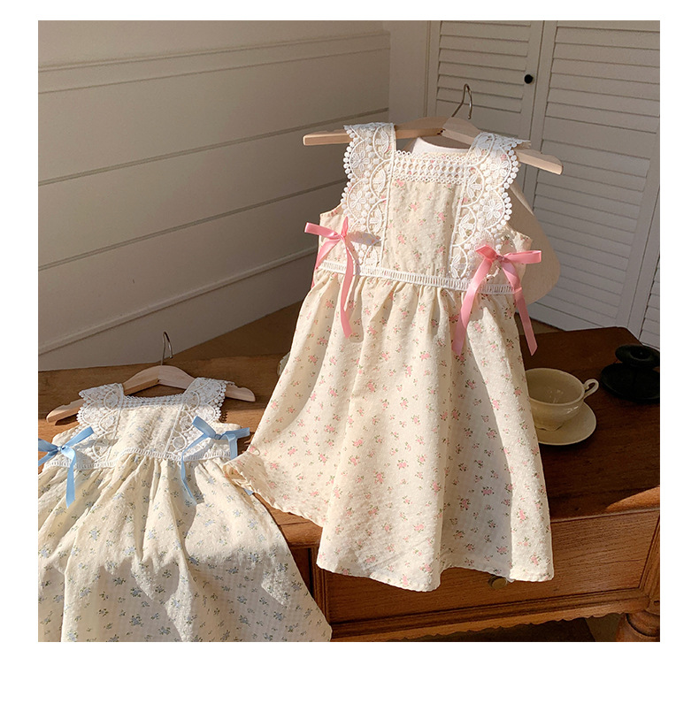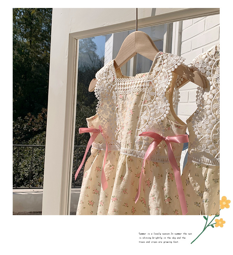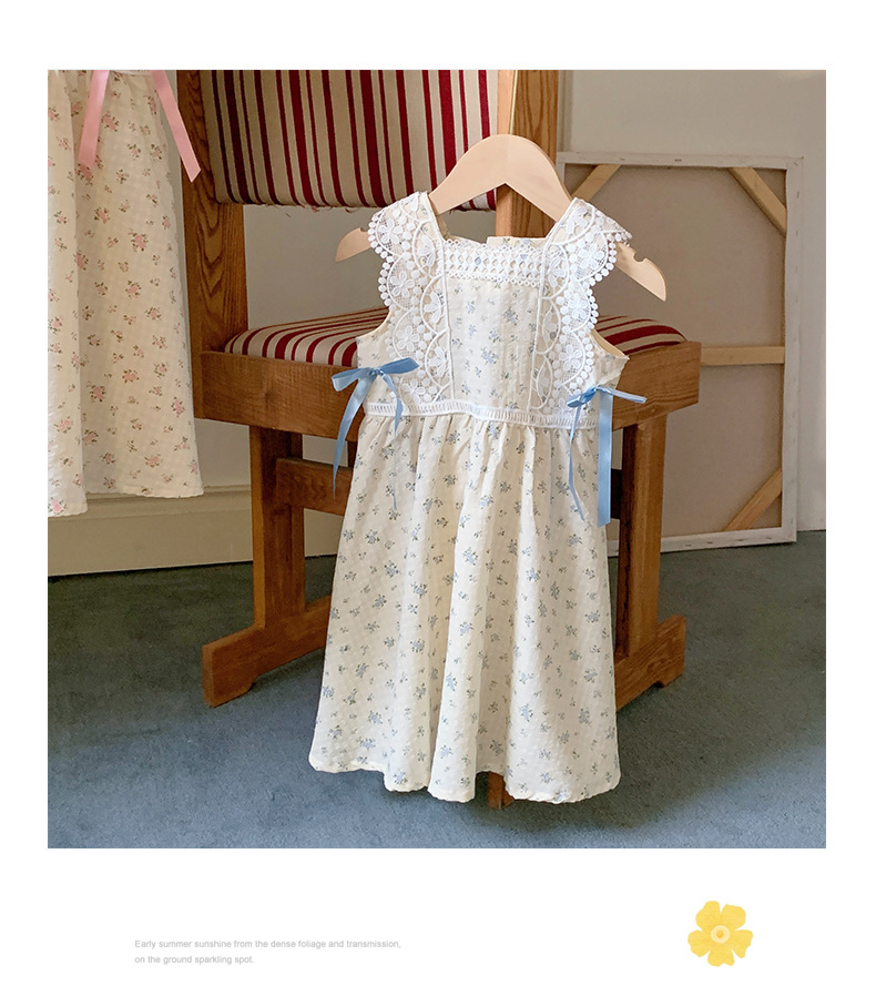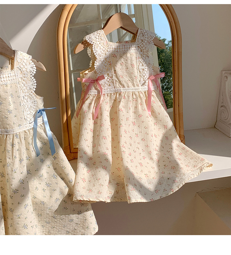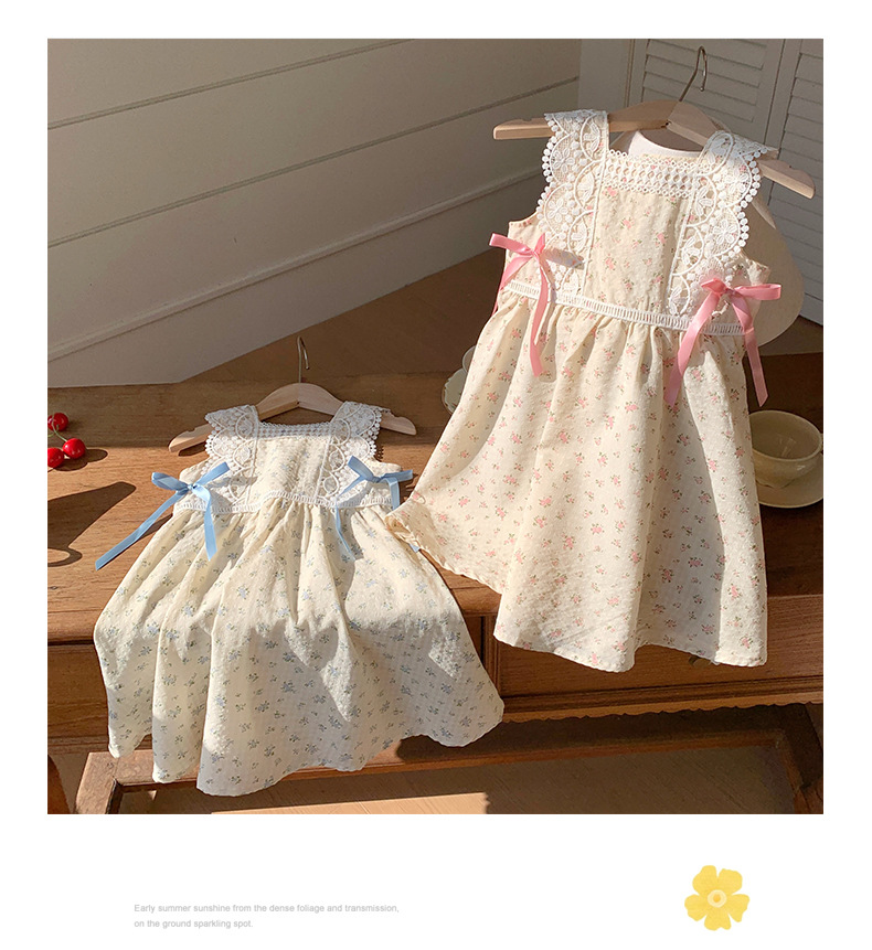 2025 여름 한국식 활 레이스 소녀 원피스 기질 민소매 어린이 공주 치마 조끼 치마스토어 가기
