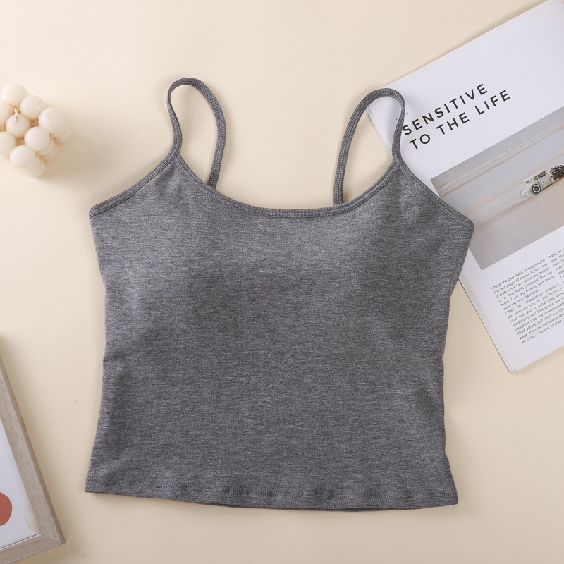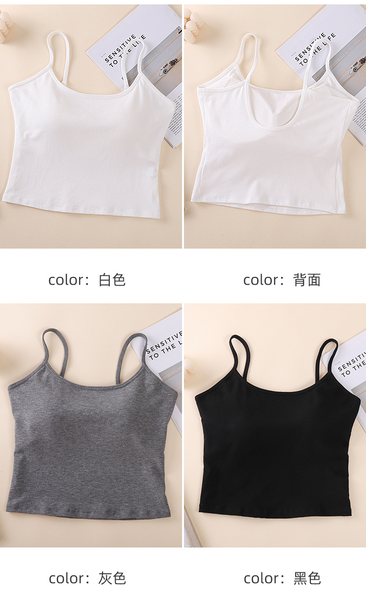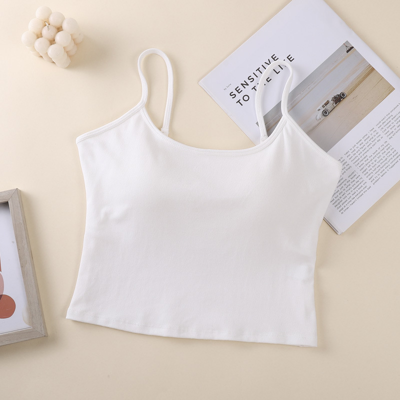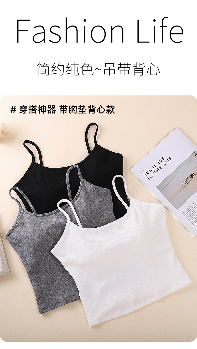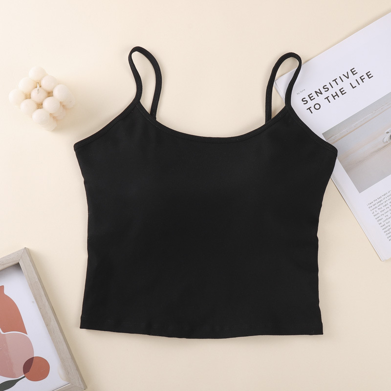 새로운 솔리드 컬러 간단한 슬링 작은 조끼 여성 벨트 가슴 패드 원피스 얇은 어깨 스트랩 순수한베이스 민소매 탑
