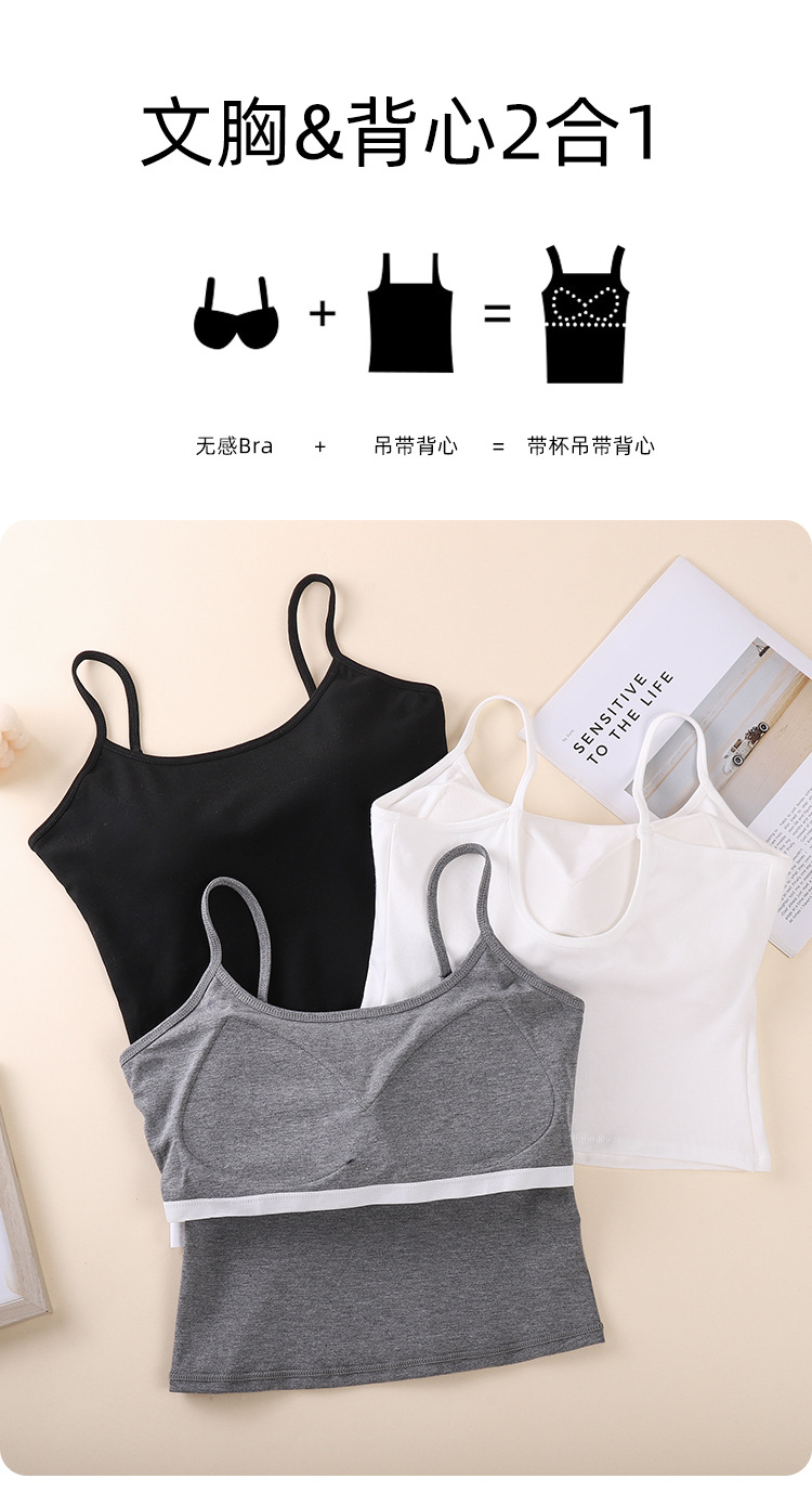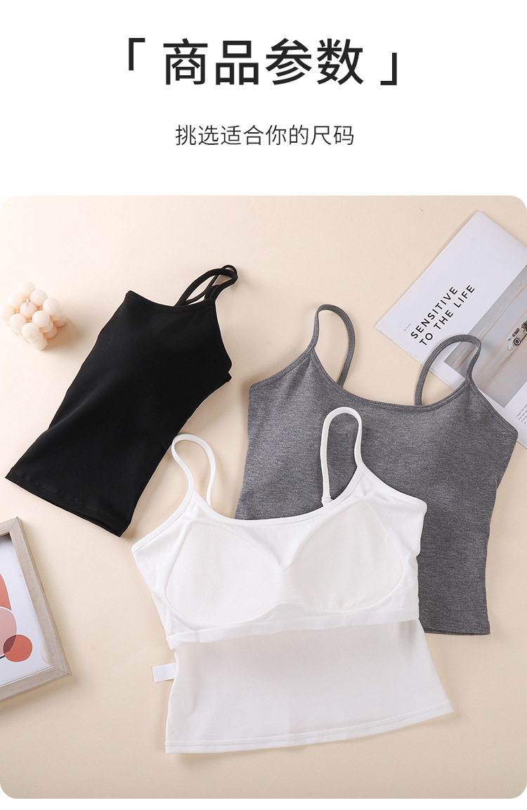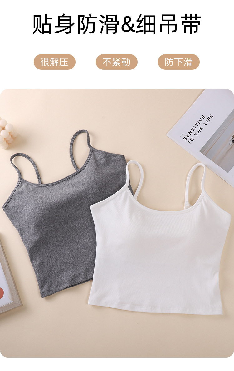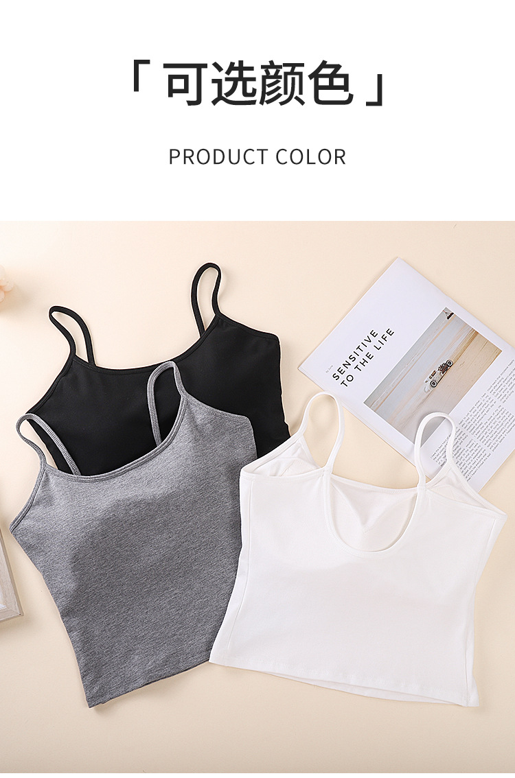새로운 솔리드 컬러 간단한 슬링 작은 조끼 여성 벨트 가슴 패드 원피스 얇은 어깨 스트랩 순수한베이스 민소매 탑