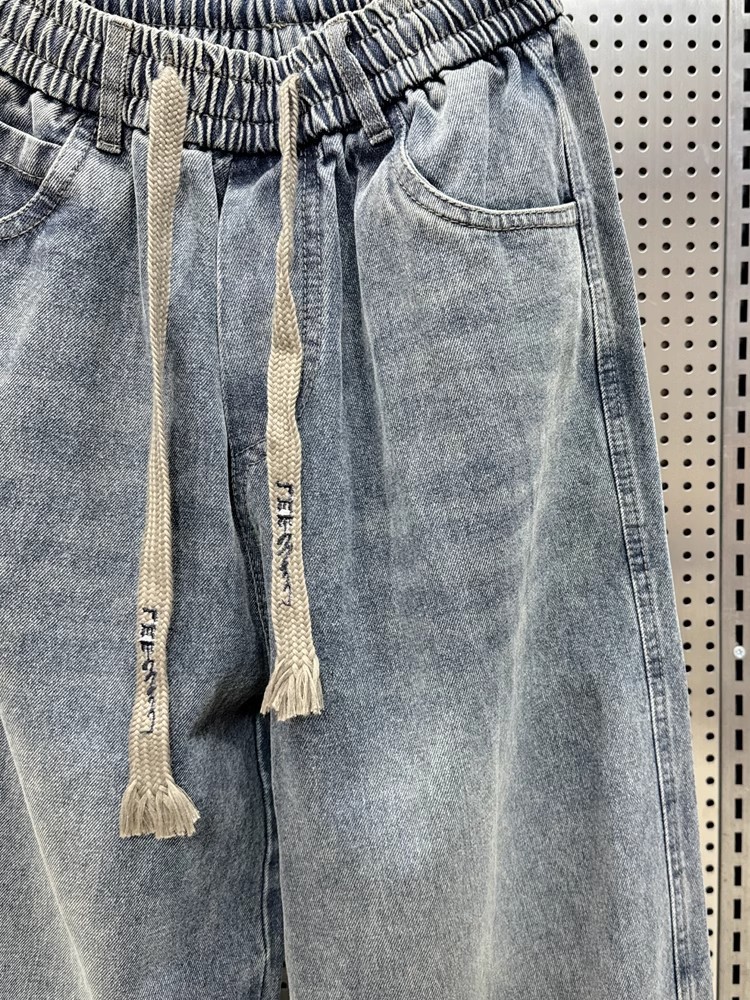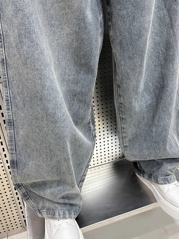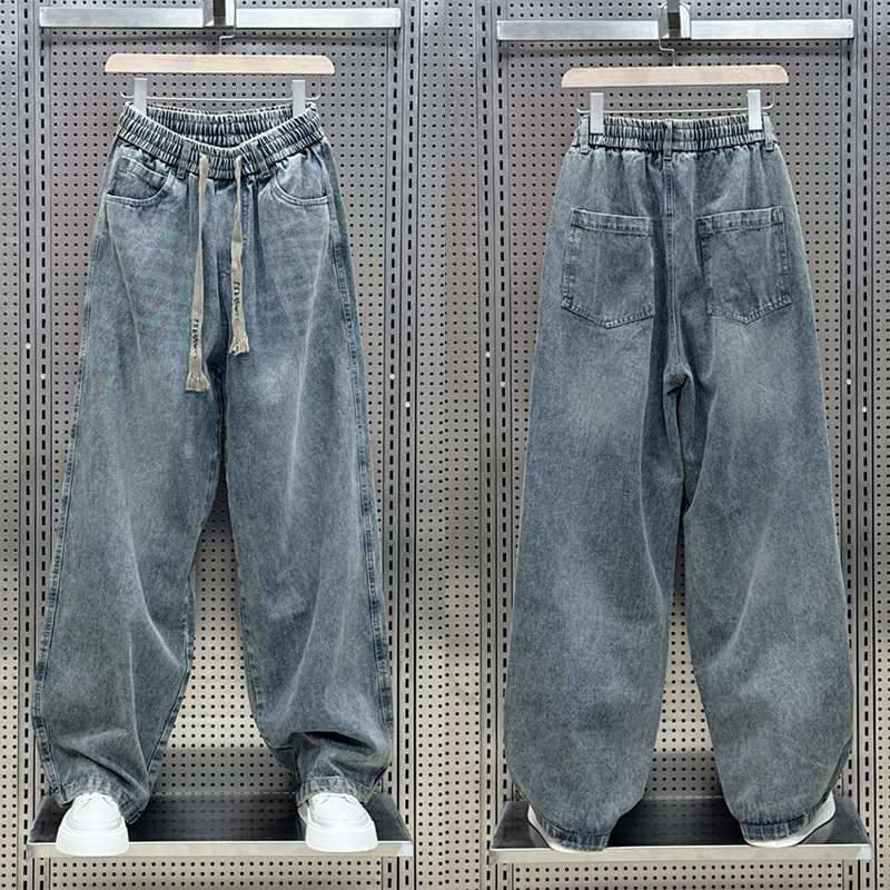 2025 남자 봄 홍콩 스타일 기모 새로운 패션 멋진 튀김 거리 러피 잘 생긴 스트레이트 튜브 느슨한 넓은 다리 청바지스토어 가기