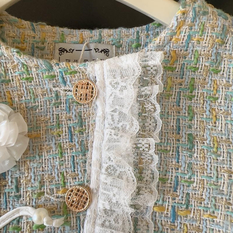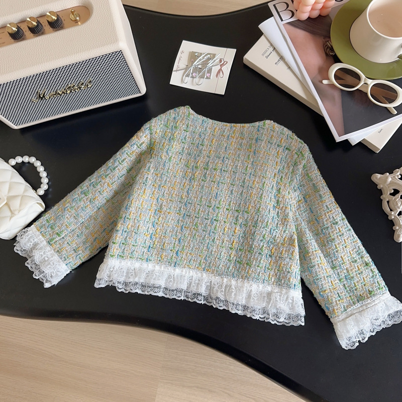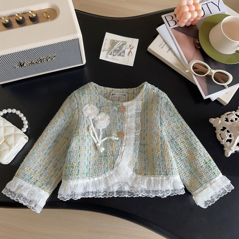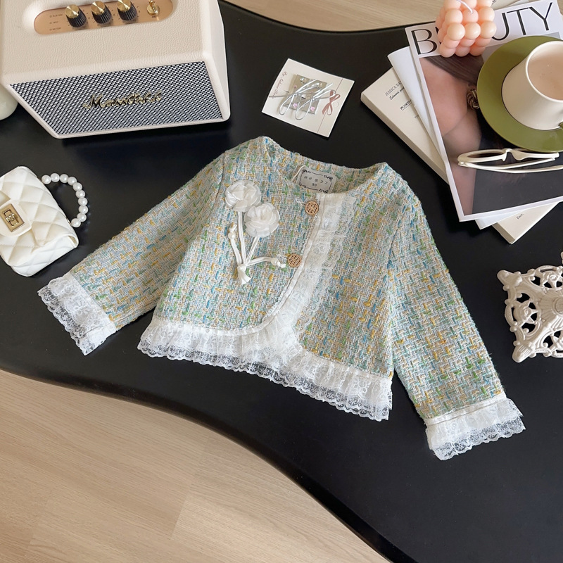 소녀 코트 2025 봄과 가을 새로운 패션 서양 스타일 작은 소녀 꽃 레이스 샤넬 스타일 코트스토어 가기