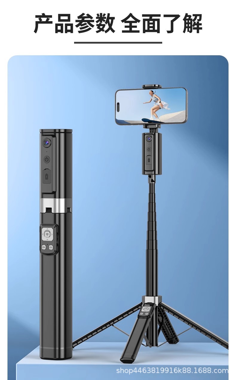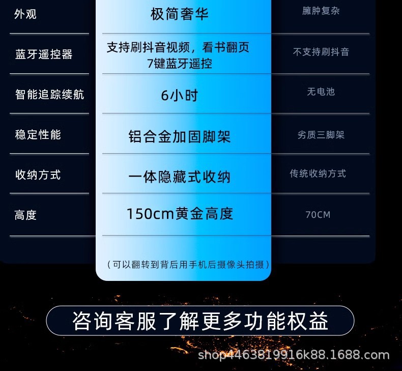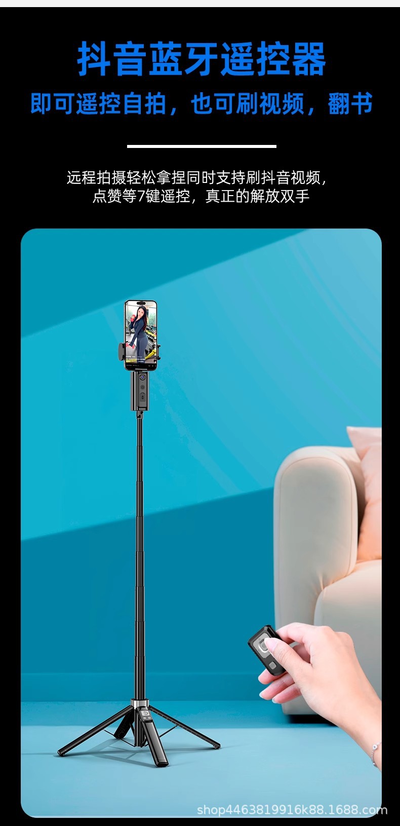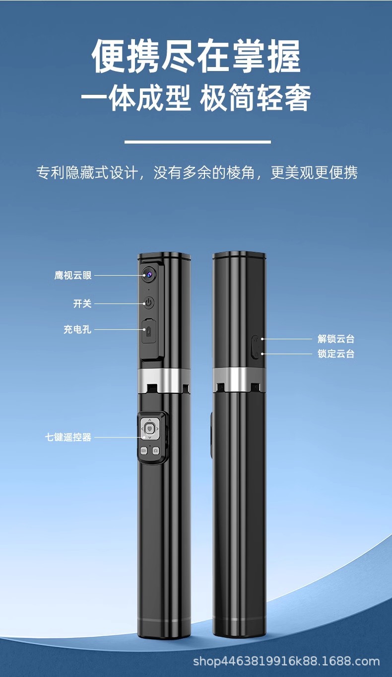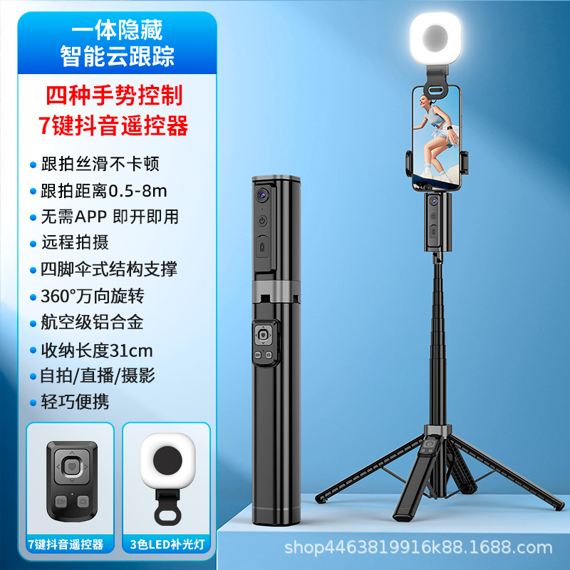 • [조명 버전] 통합 숨겨진 디자인 [스마트 페이스 추적 + 손떨림 방지 3축] 1.5m 항공 알루미늄 합금 + Douyin 리모콘 + 쿼드포드
