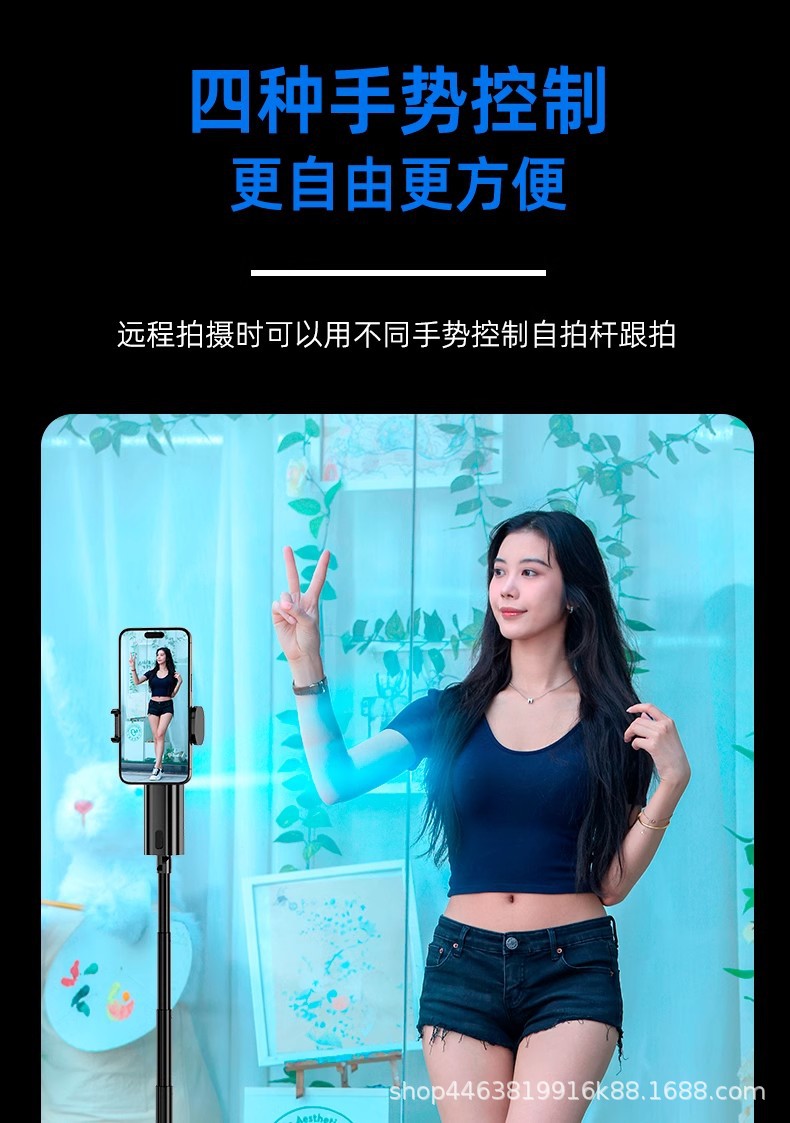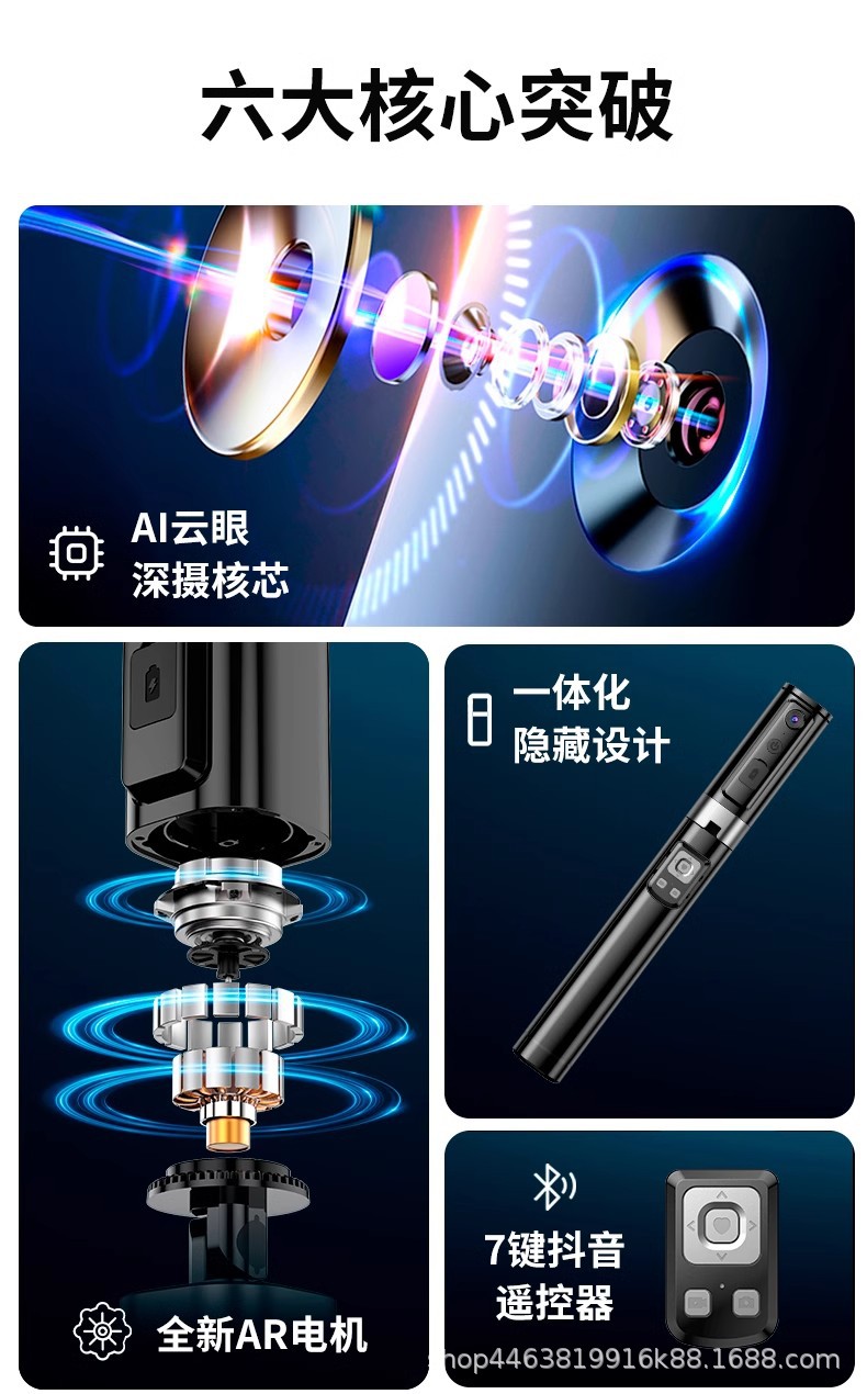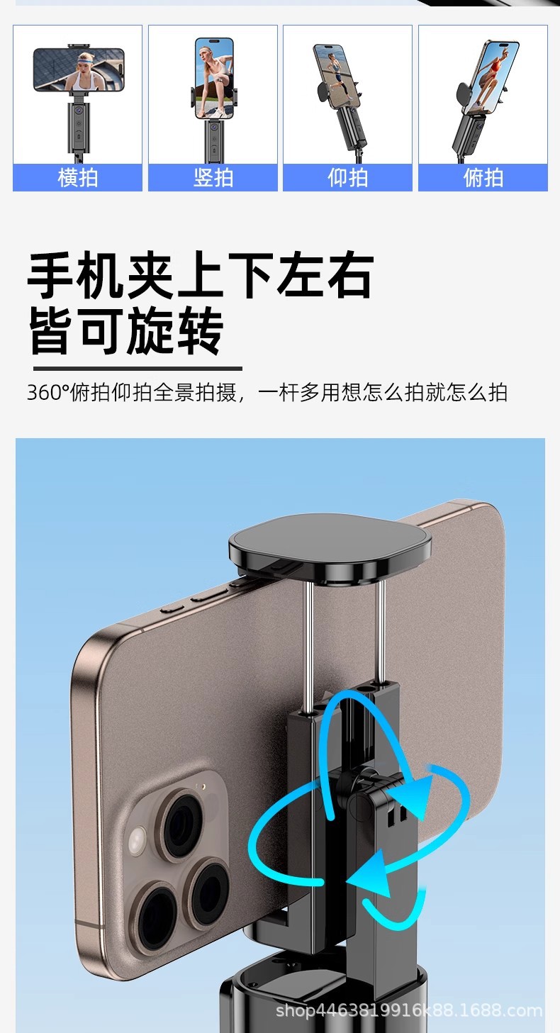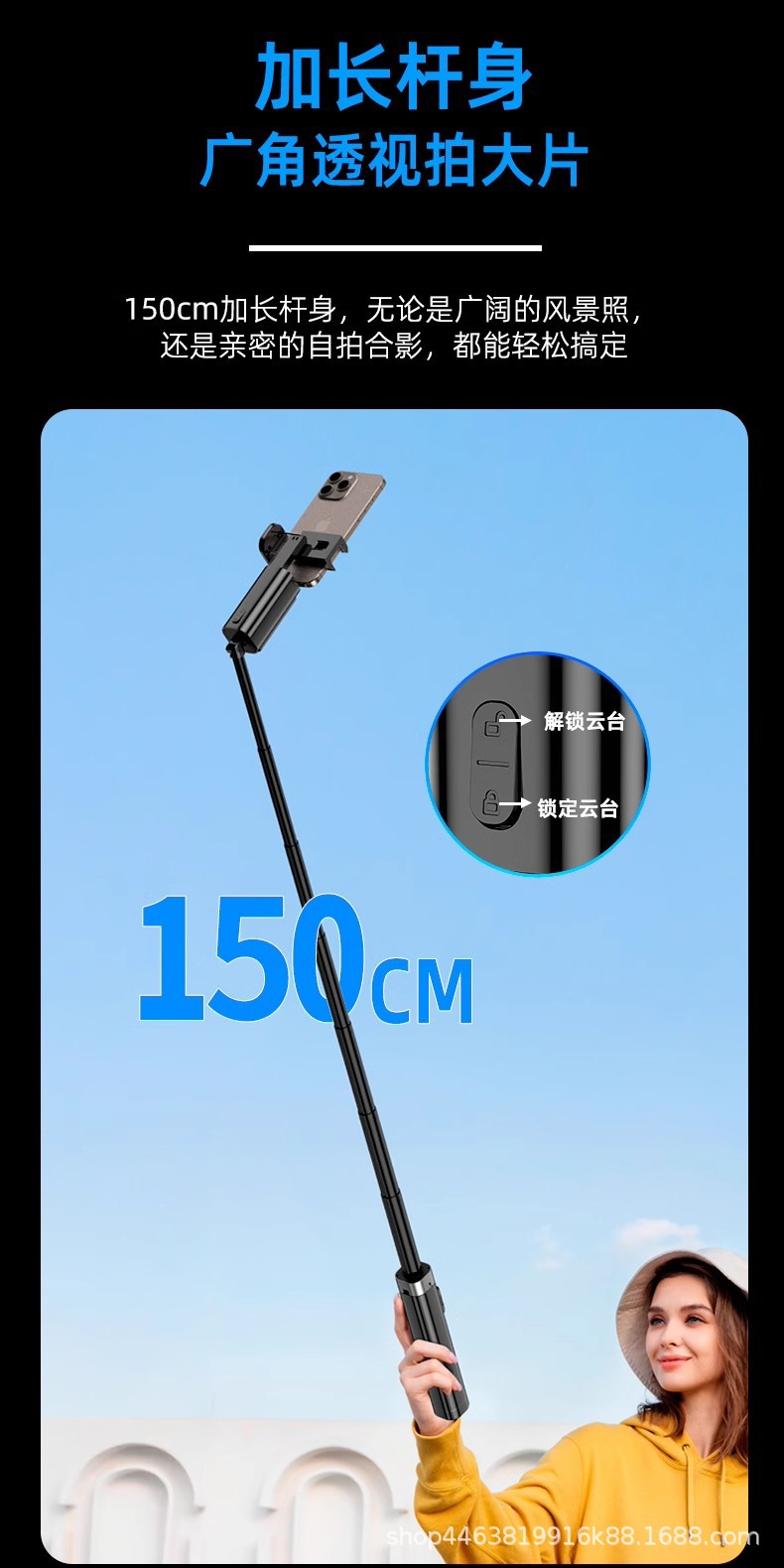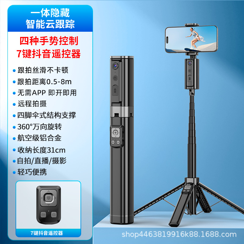 • 블랙 일체형 숨겨진 디자인 [스마트 페이스 추적 + 손떨림 방지 3축] 1.5m 항공 알루미늄 합금 + Douyin 리모콘 + 쿼드포드