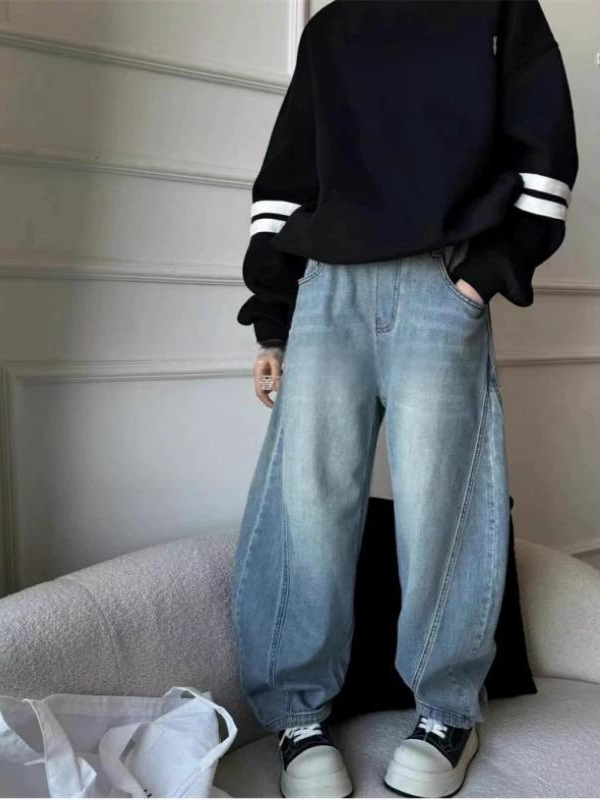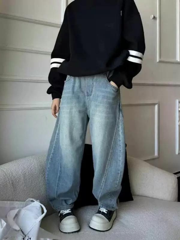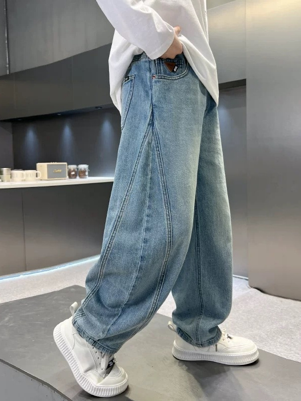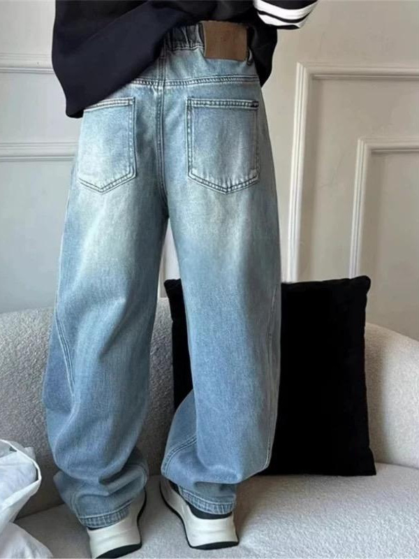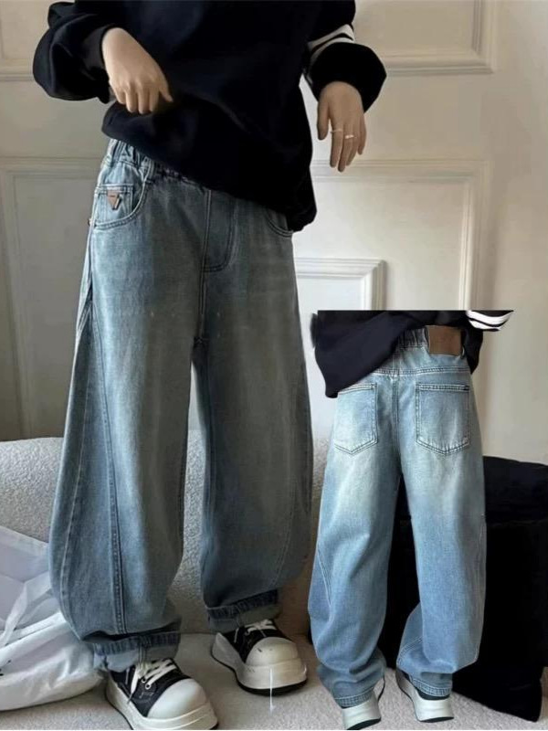 2025 봄웨어 한국 아동복 소년 및 소녀 중 큰 어린이 청바지 캐주얼 바지 소년 소녀 마체테 바지스토어 가기