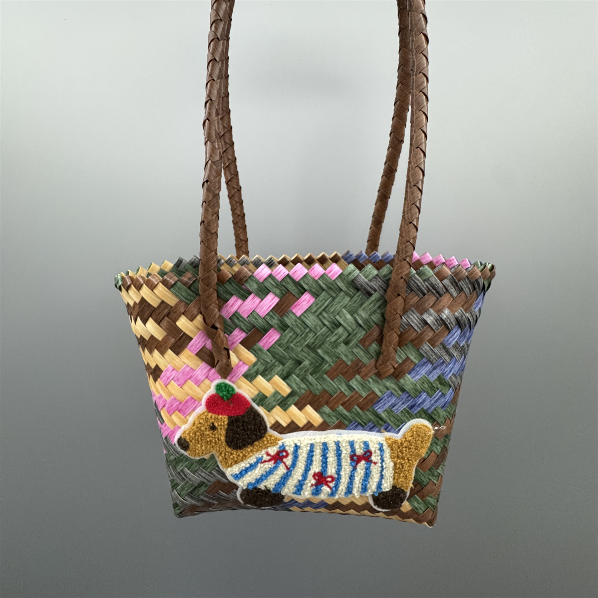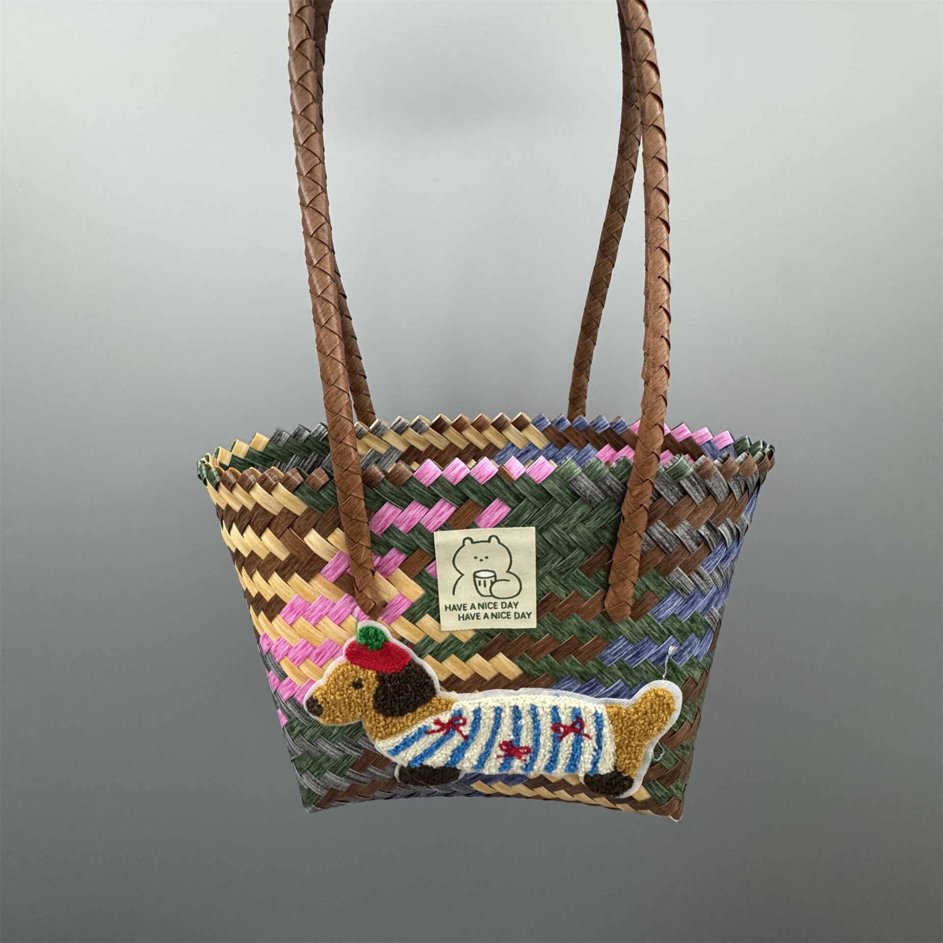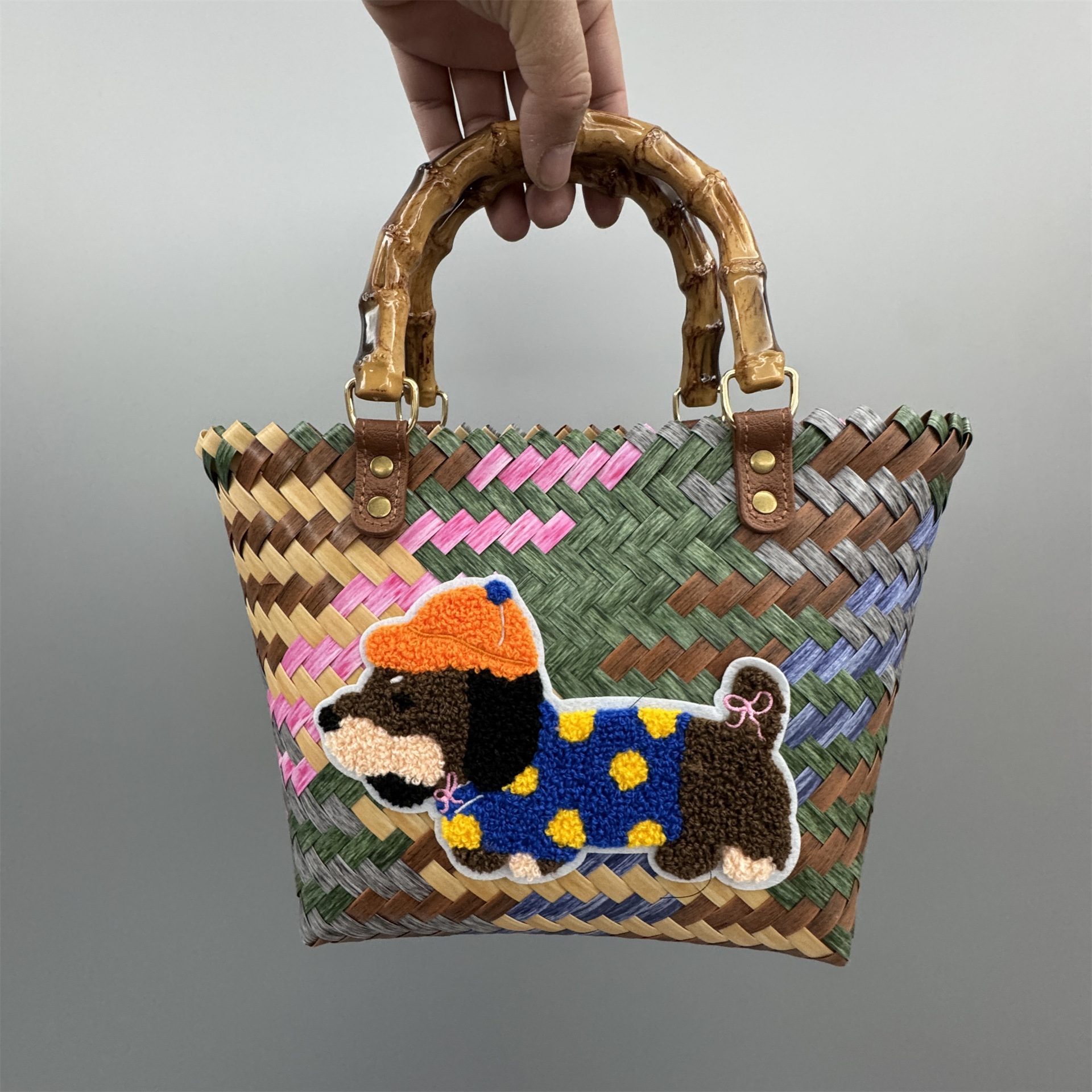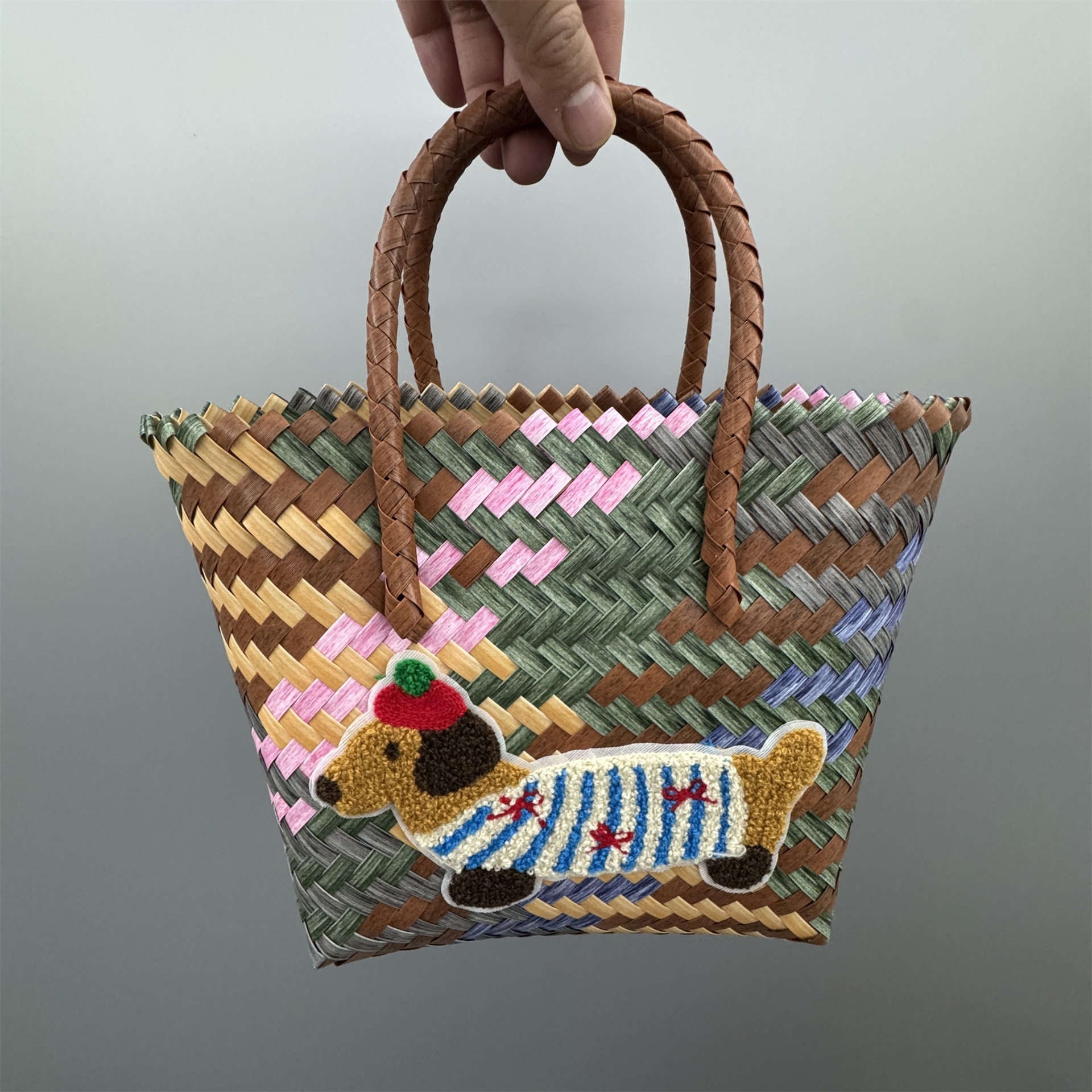 작은 빨간 책 같은 스타일 빈티지 wachshund 개 짠 가방 여성 핸드백 토트 가방 손 선물 바구니