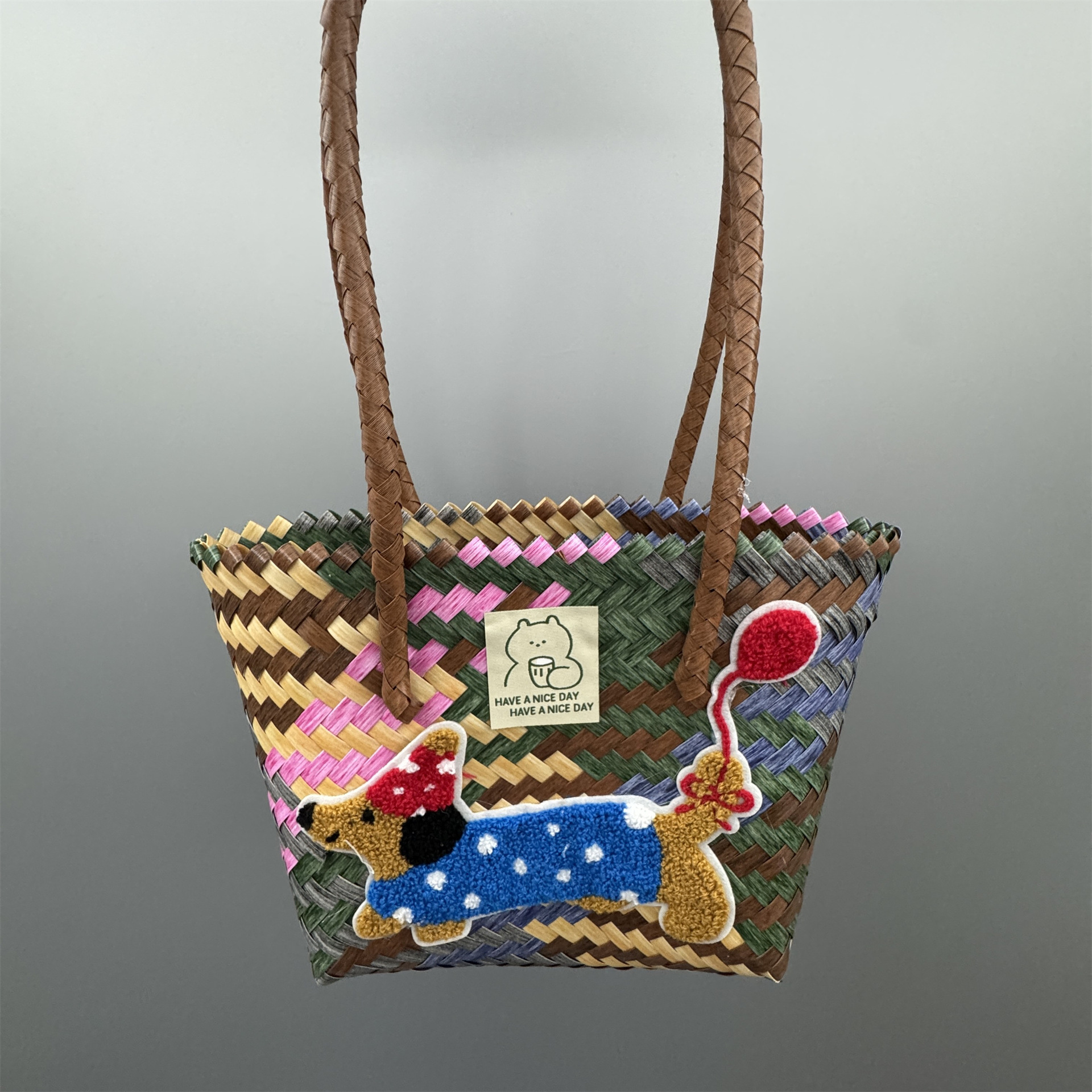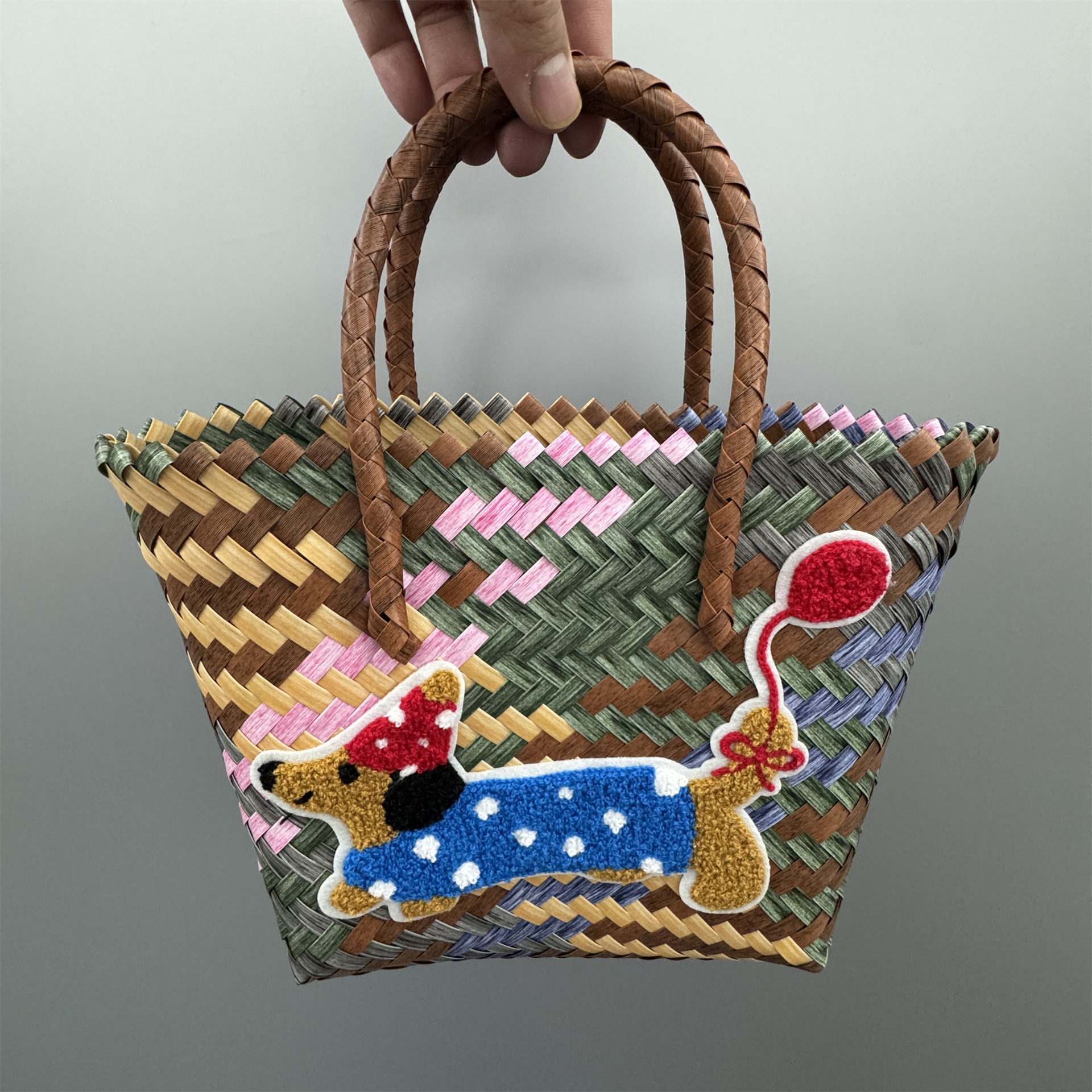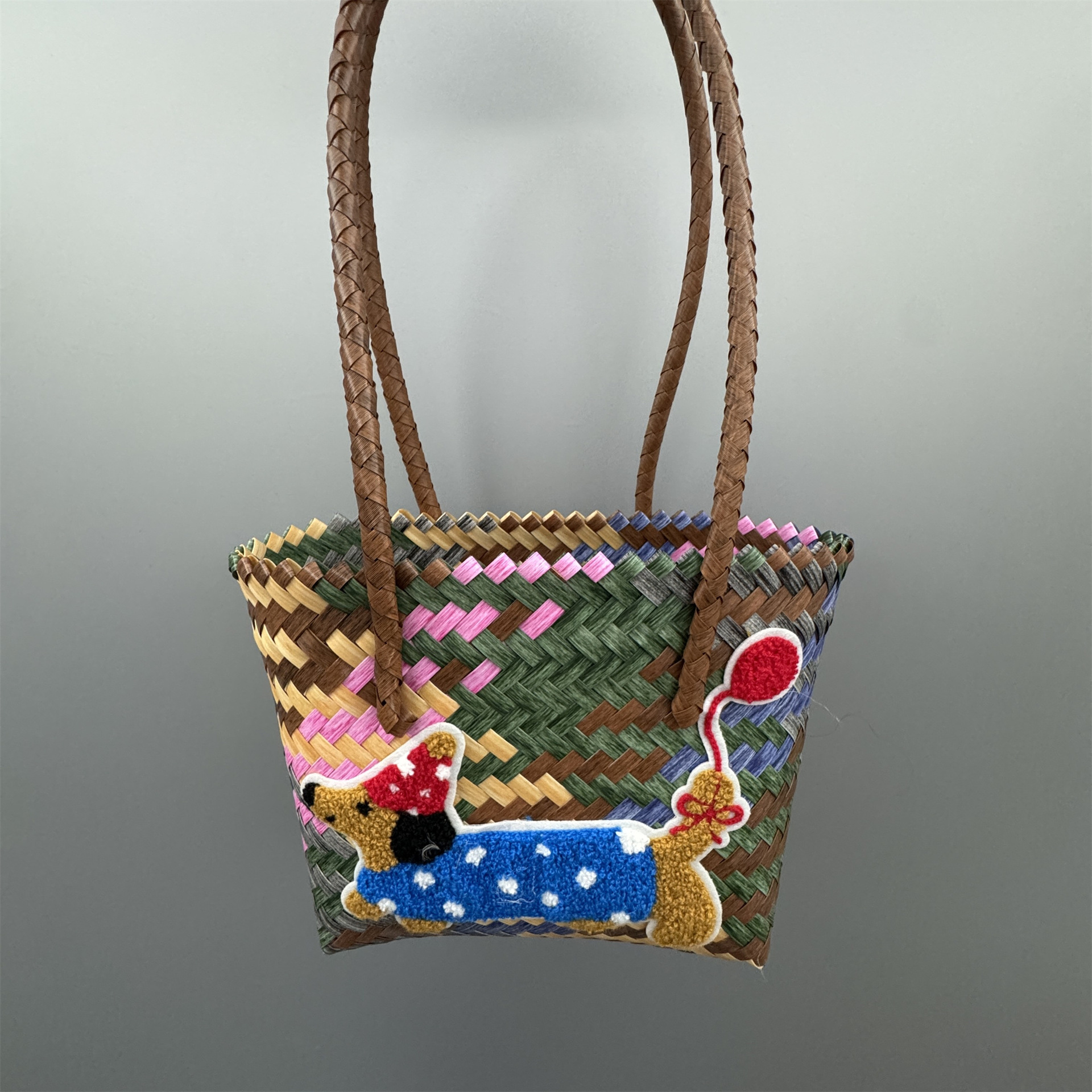 작은 빨간 책 같은 스타일 빈티지 wachshund 개 짠 가방 여성 핸드백 토트 가방 손 선물 바구니