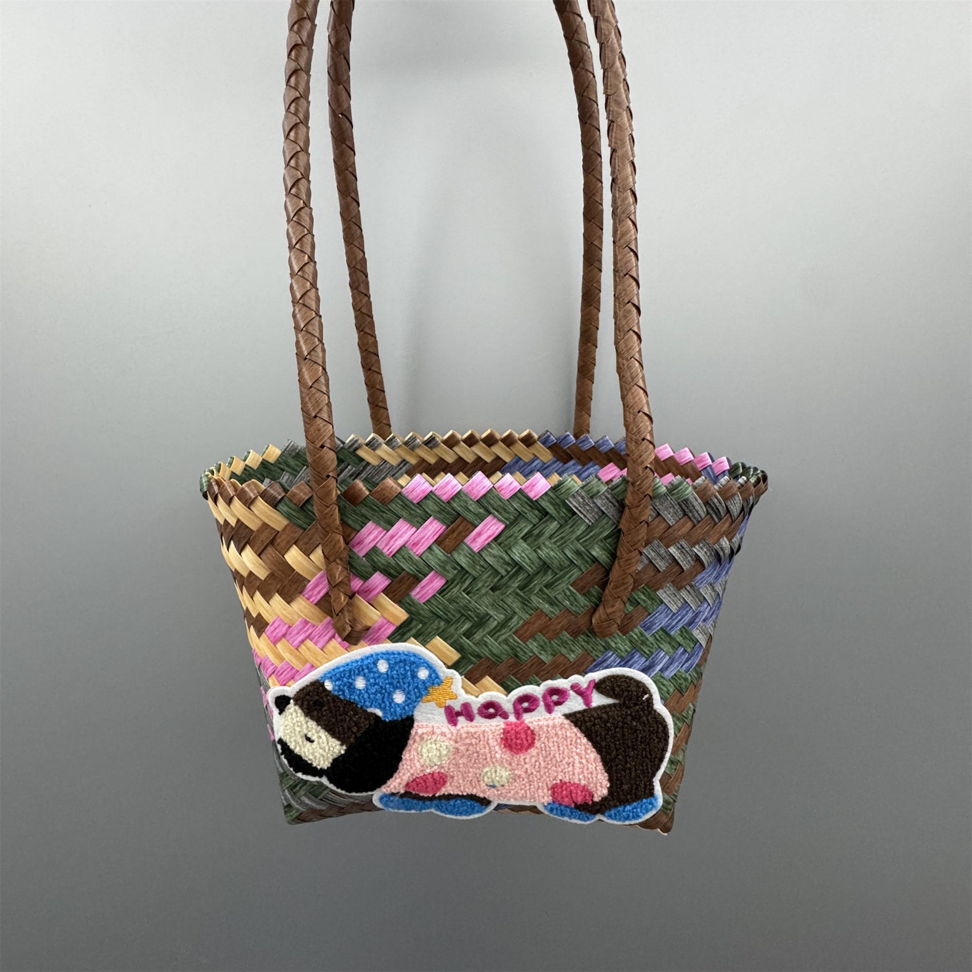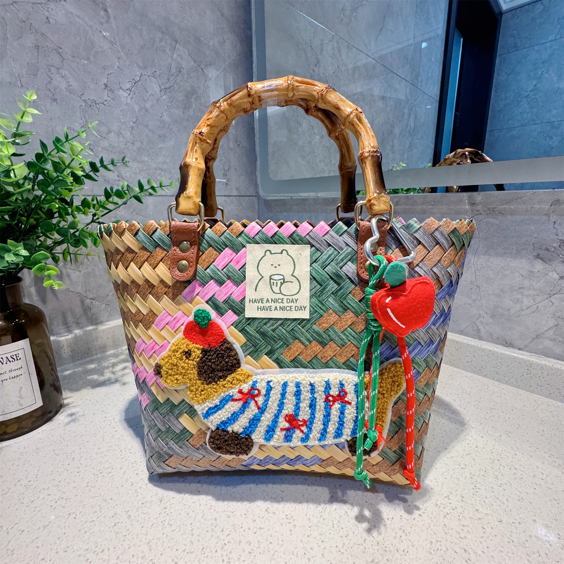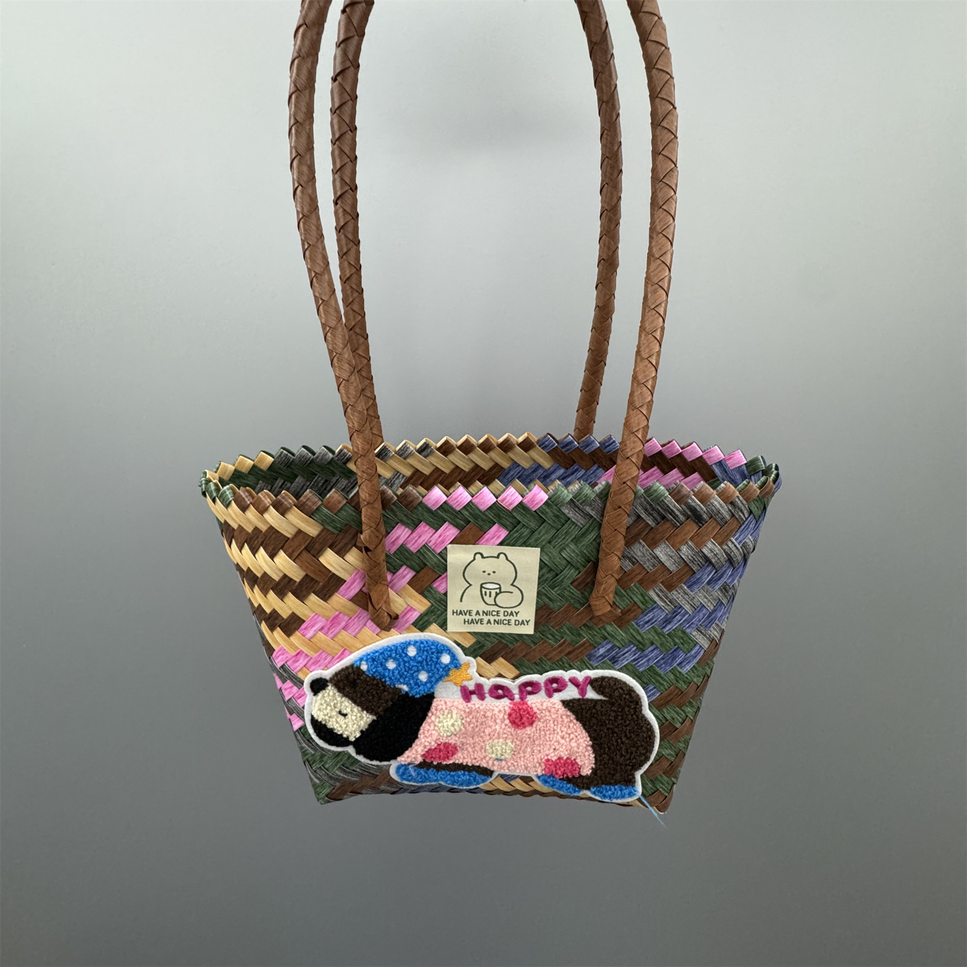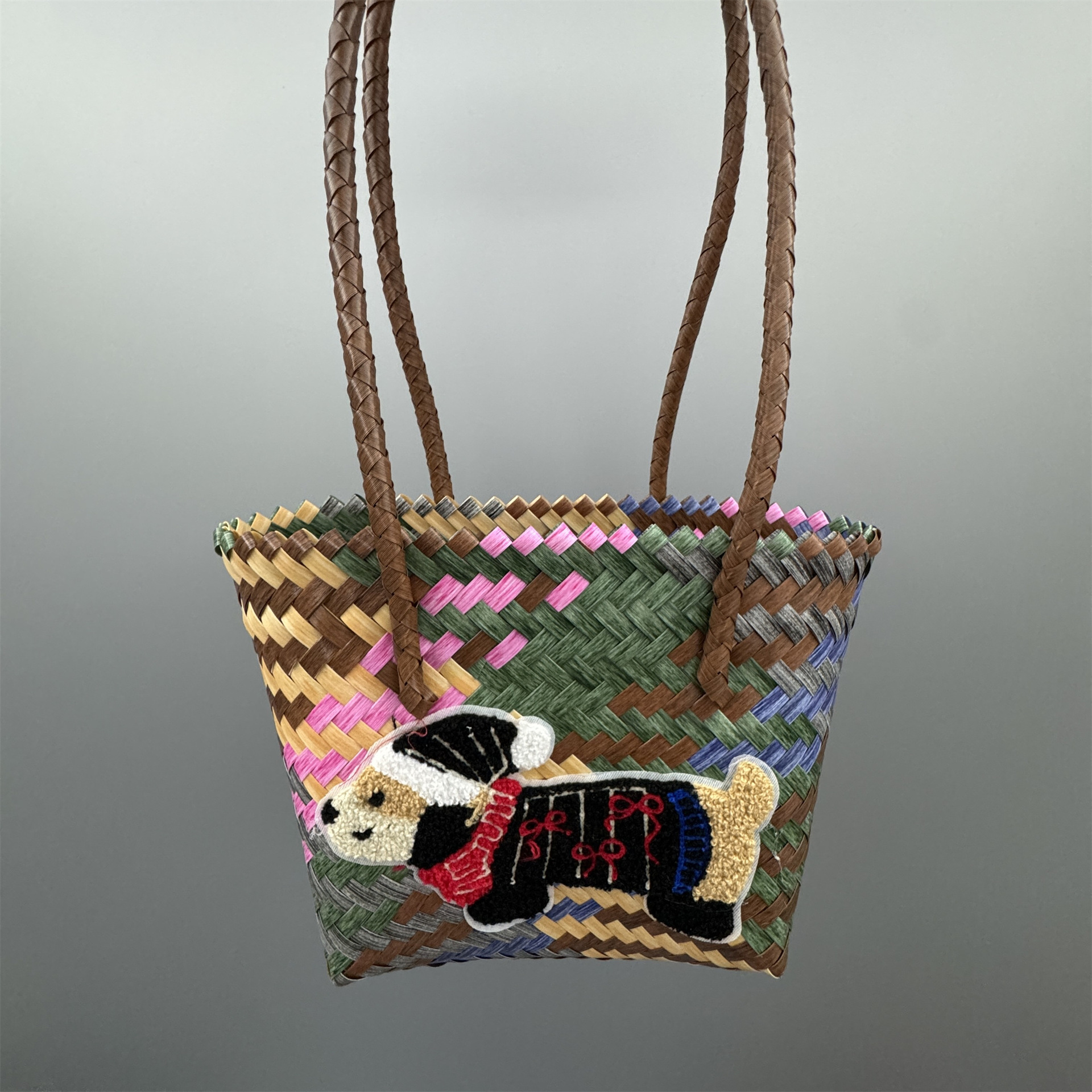작은 빨간 책 같은 스타일 빈티지 wachshund 개 짠 가방 여성 핸드백 토트 가방 손 선물 바구니