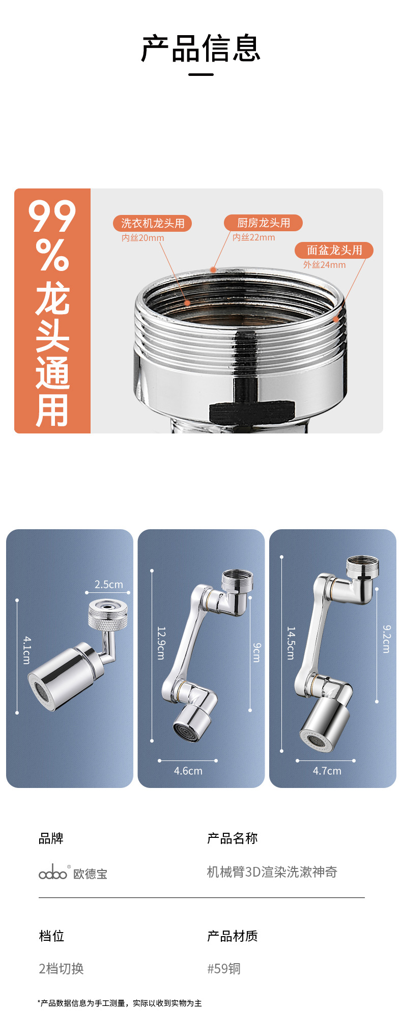• 2단 기어 로봇 팔 범용 수도꼭지
