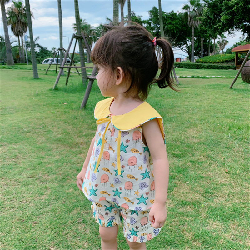 女童套装卡通燕尾领上衣加短裤25夏装新款外贸童装代发3-8岁스토어 가기