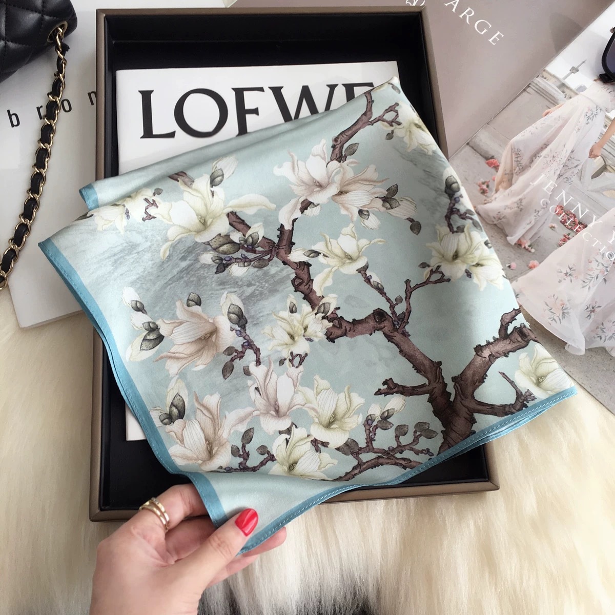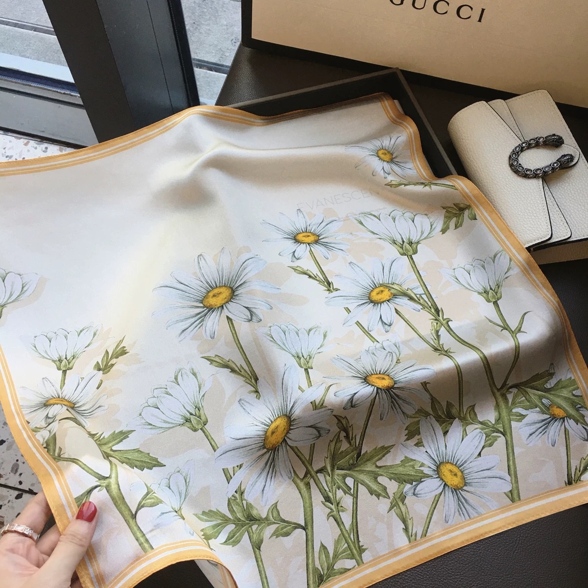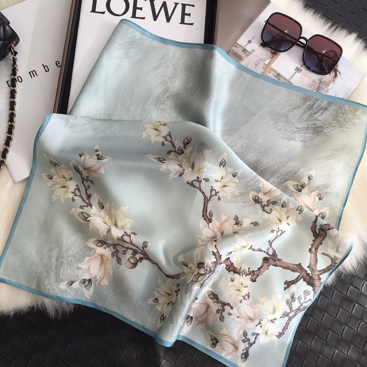잘 생긴 작은 스카프 ~ 봄과 여름 신선한 시대 감소 여자 감각 작은 광장 스카프 틈새 가벼운 럭셔리 스카프 여자 올매치스토어 가기