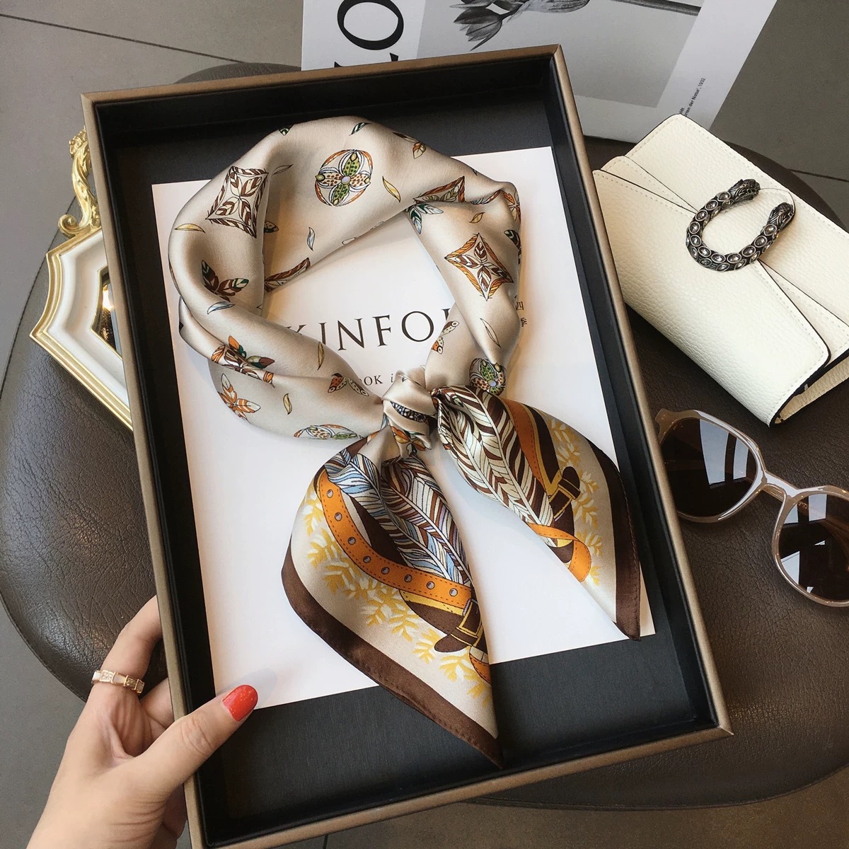 잘 생긴 작은 스카프 ~ 봄과 여름 신선한 시대 감소 여자 감각 작은 광장 스카프 틈새 가벼운 럭셔리 스카프 여자 올매치