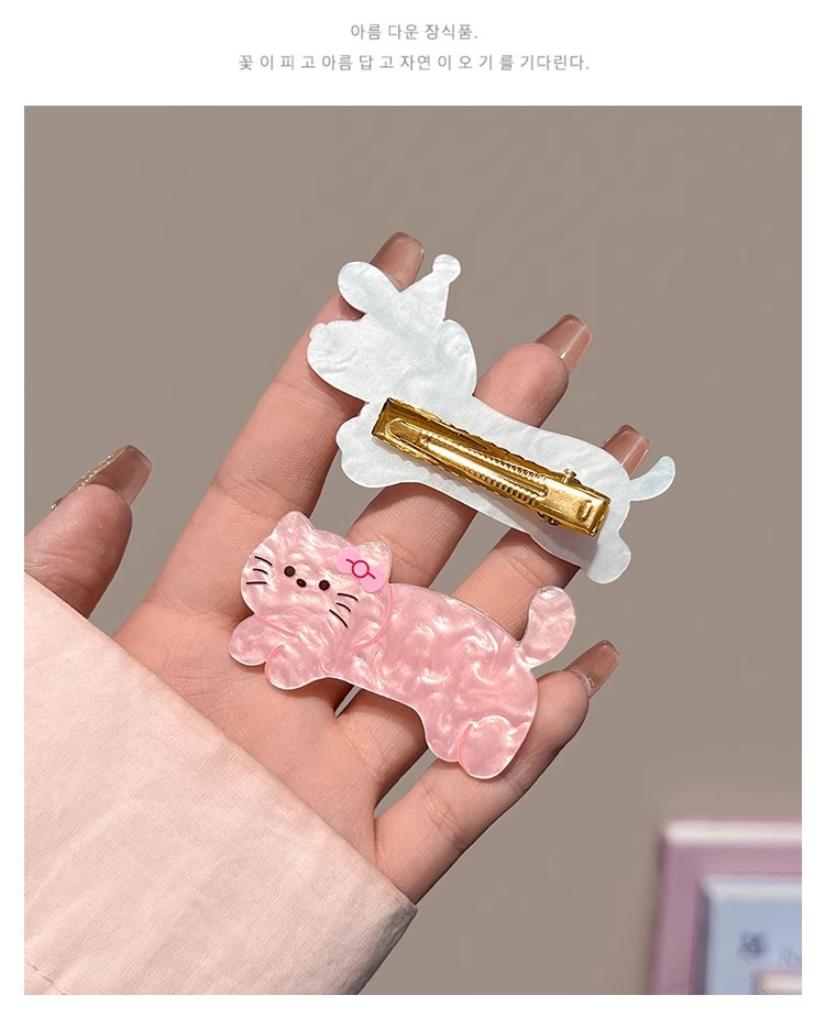 여성용 귀여운 만화 고양이와 강아지 머리핀, 사이드 클립, 헤어 액세서리, 고급 덕빌 클립, 여름 머리핀