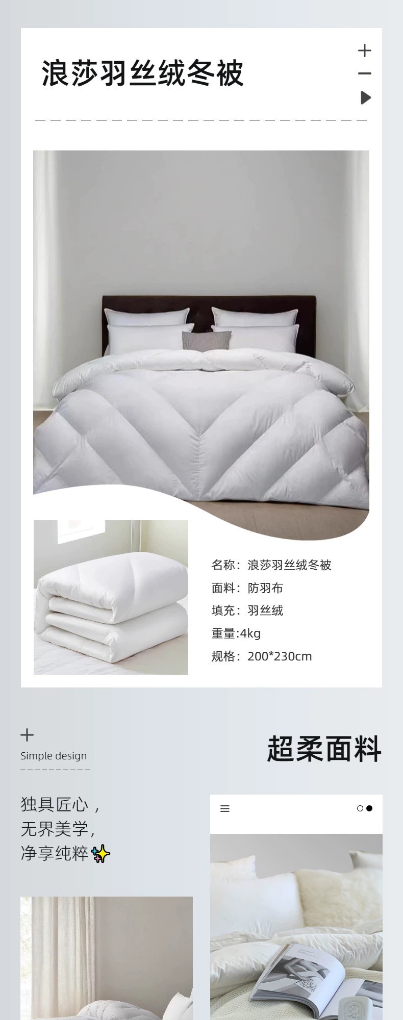 새로운 고 가치 Longsha 깃털 벨벳 겨울 퀼트 코어 따뜻한 두꺼운 판매 활동 선물 도매 동반자 선물스토어 가기