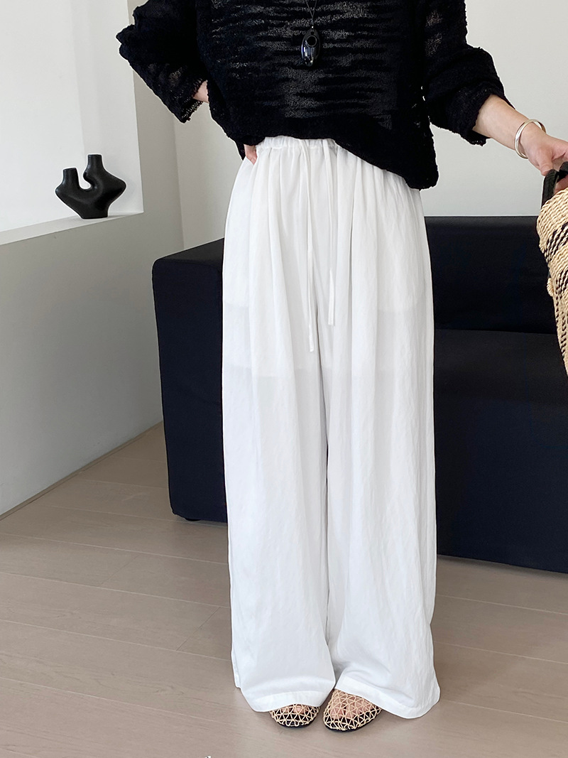 그러면 ju는 편안합니다! 한국식 캐주얼 탄성 허리 느슨한 와이드 레그 바지 여자 올매치 스트레이트 바지 E6005