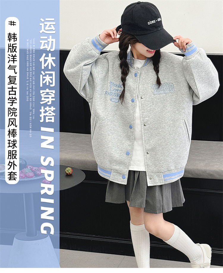 여자 코트 2025 봄 새로운 어린이 서양식 야구 세트 한국식 느슨한 캐주얼 자켓 트렌디 탑스토어 가기