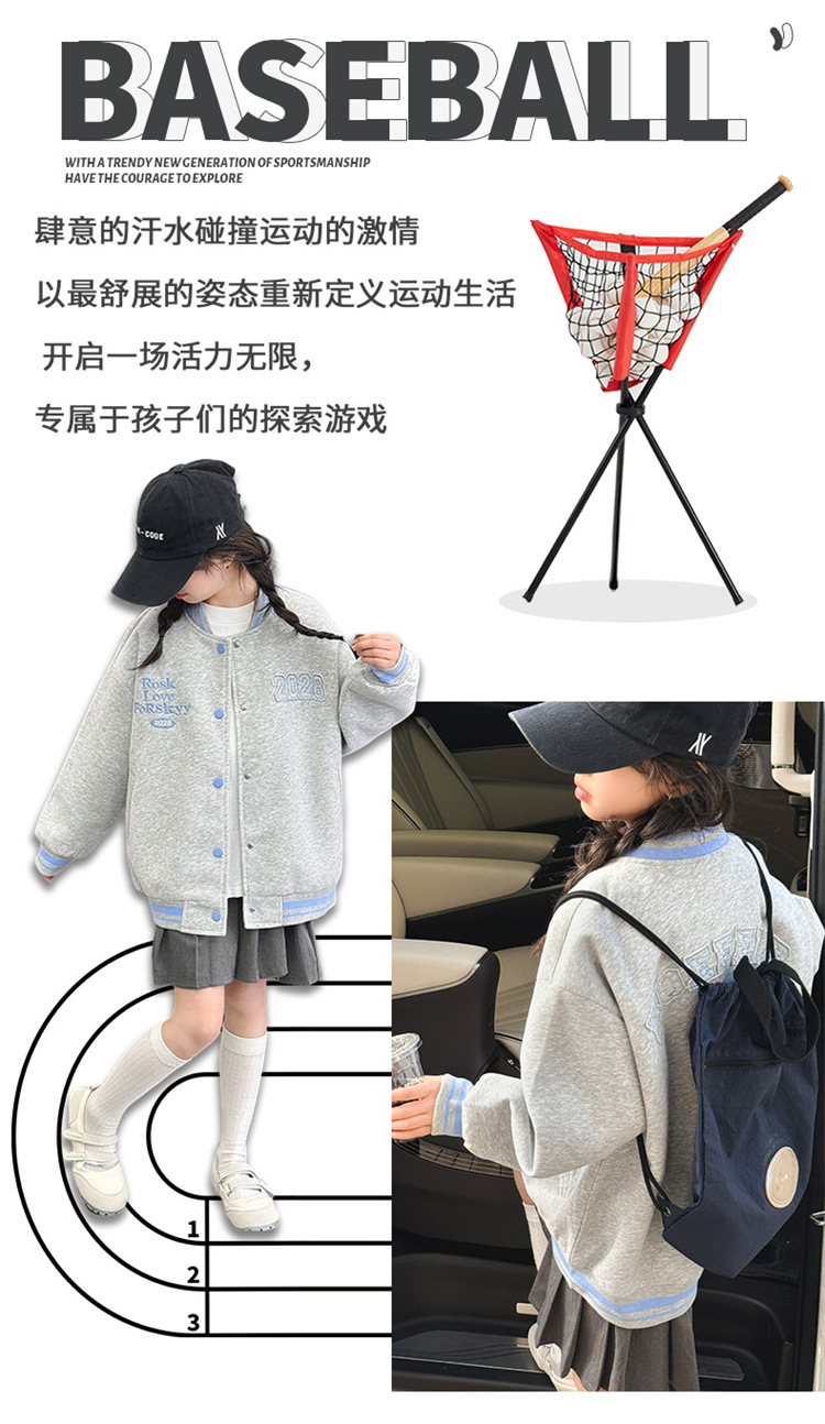 여자 코트 2025 봄 새로운 어린이 서양식 야구 세트 한국식 느슨한 캐주얼 자켓 트렌디 탑