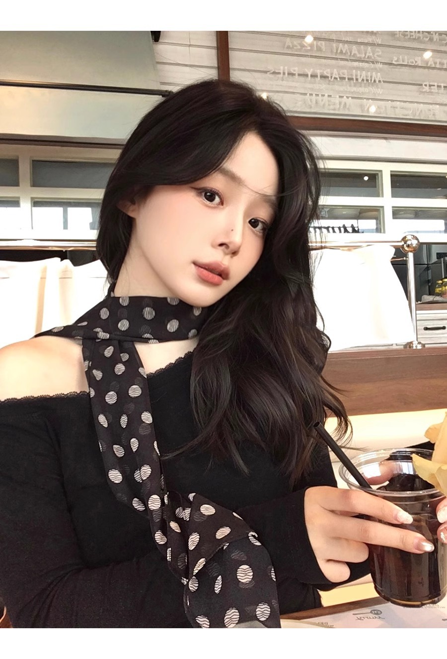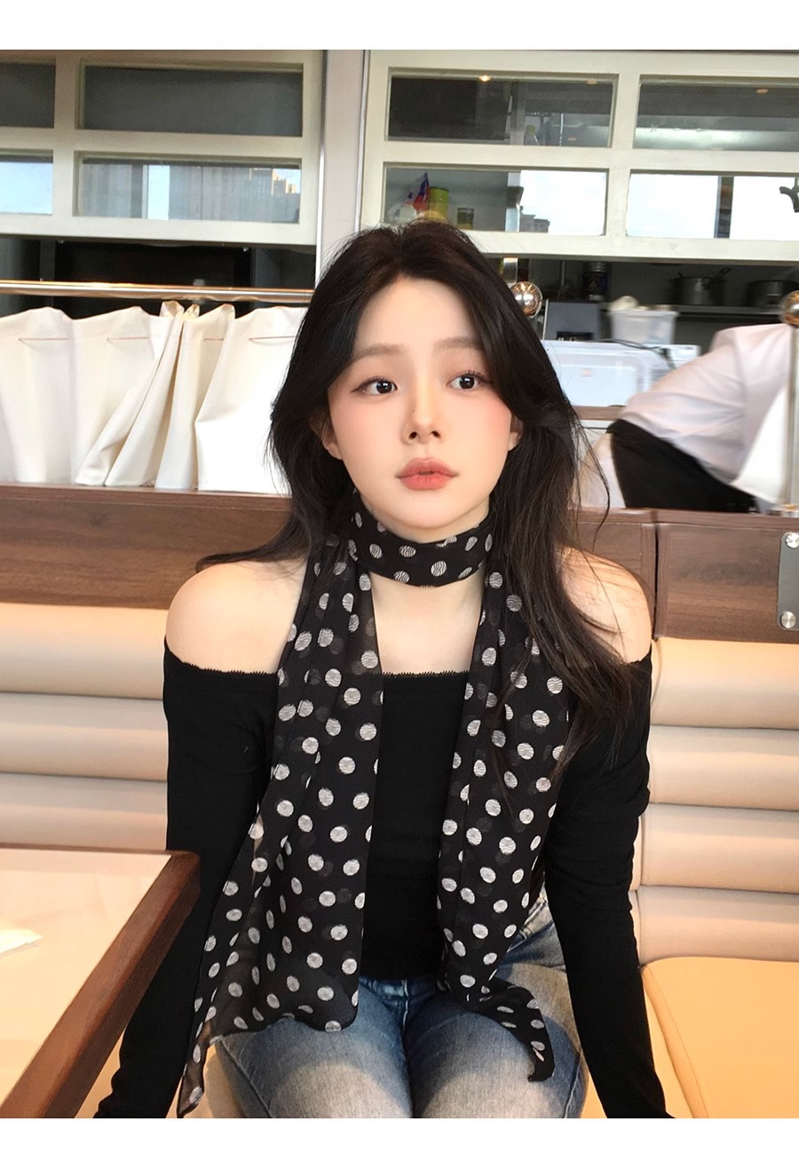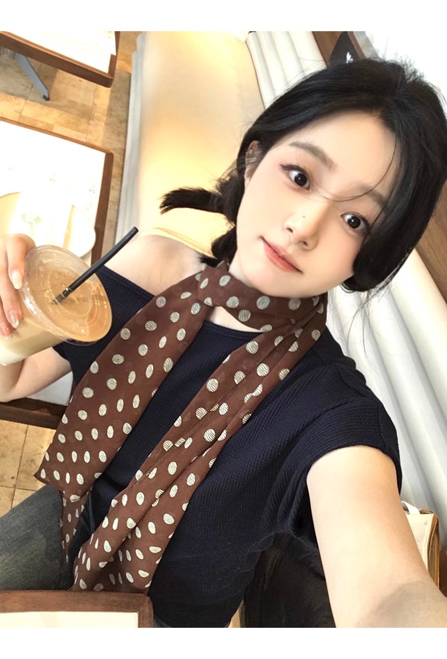 나는 실수로 한국 드라마 여주인이되었다! 다용도 레트로 웨이브 도트 롱 실크 스카프 여성용 해변 휴가 목 스카프 헤어 벨트