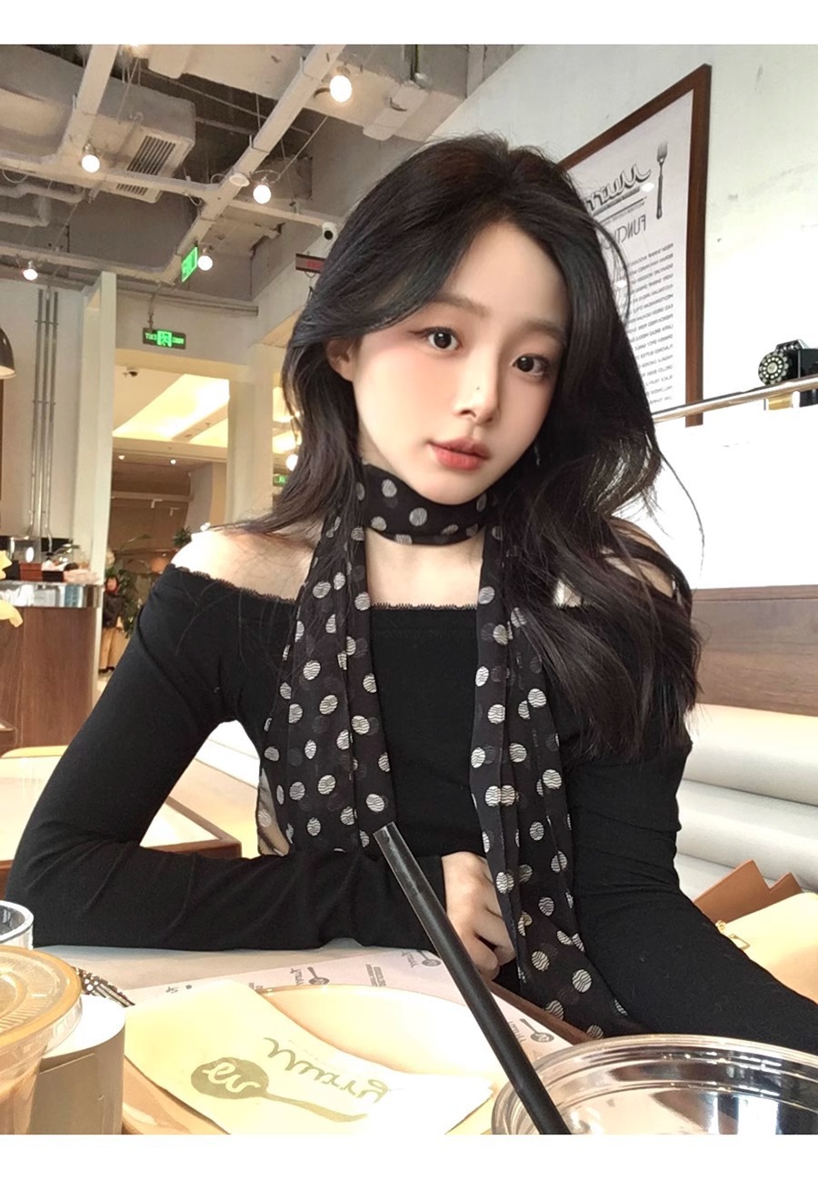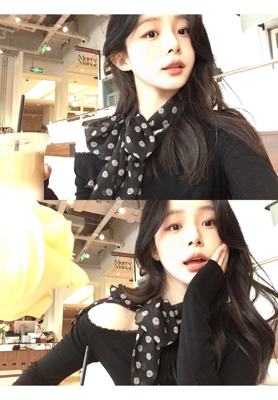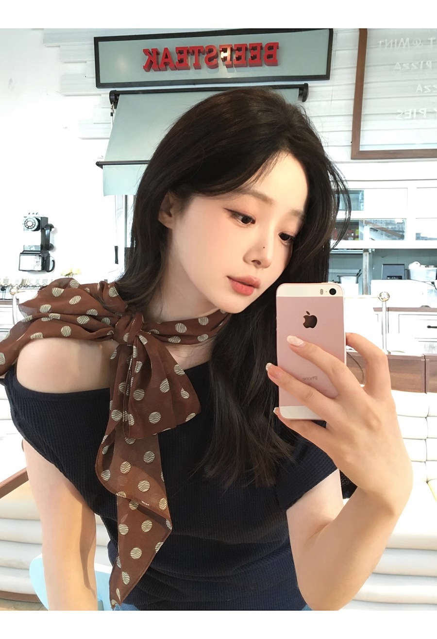 나는 실수로 한국 드라마 여주인이되었다! 다용도 레트로 웨이브 도트 롱 실크 스카프 여성용 해변 휴가 목 스카프 헤어 벨트