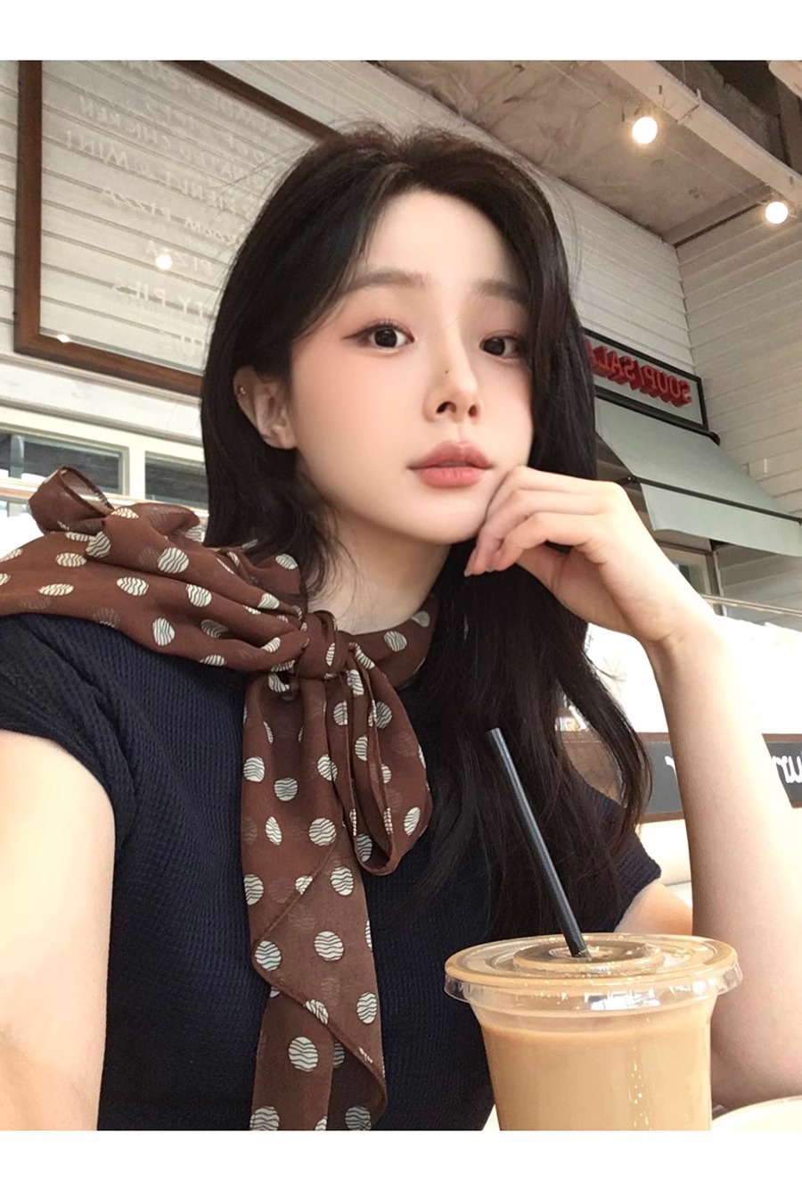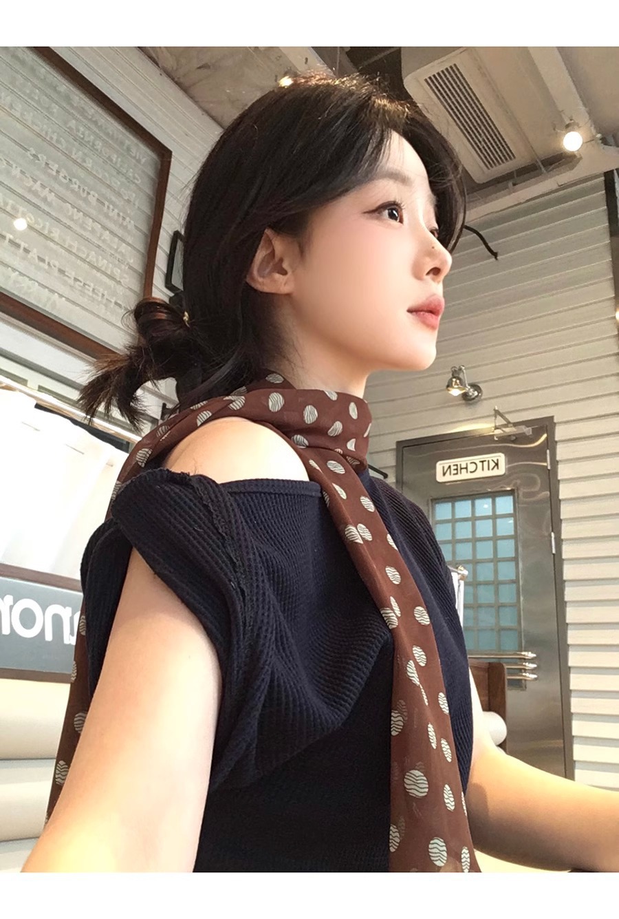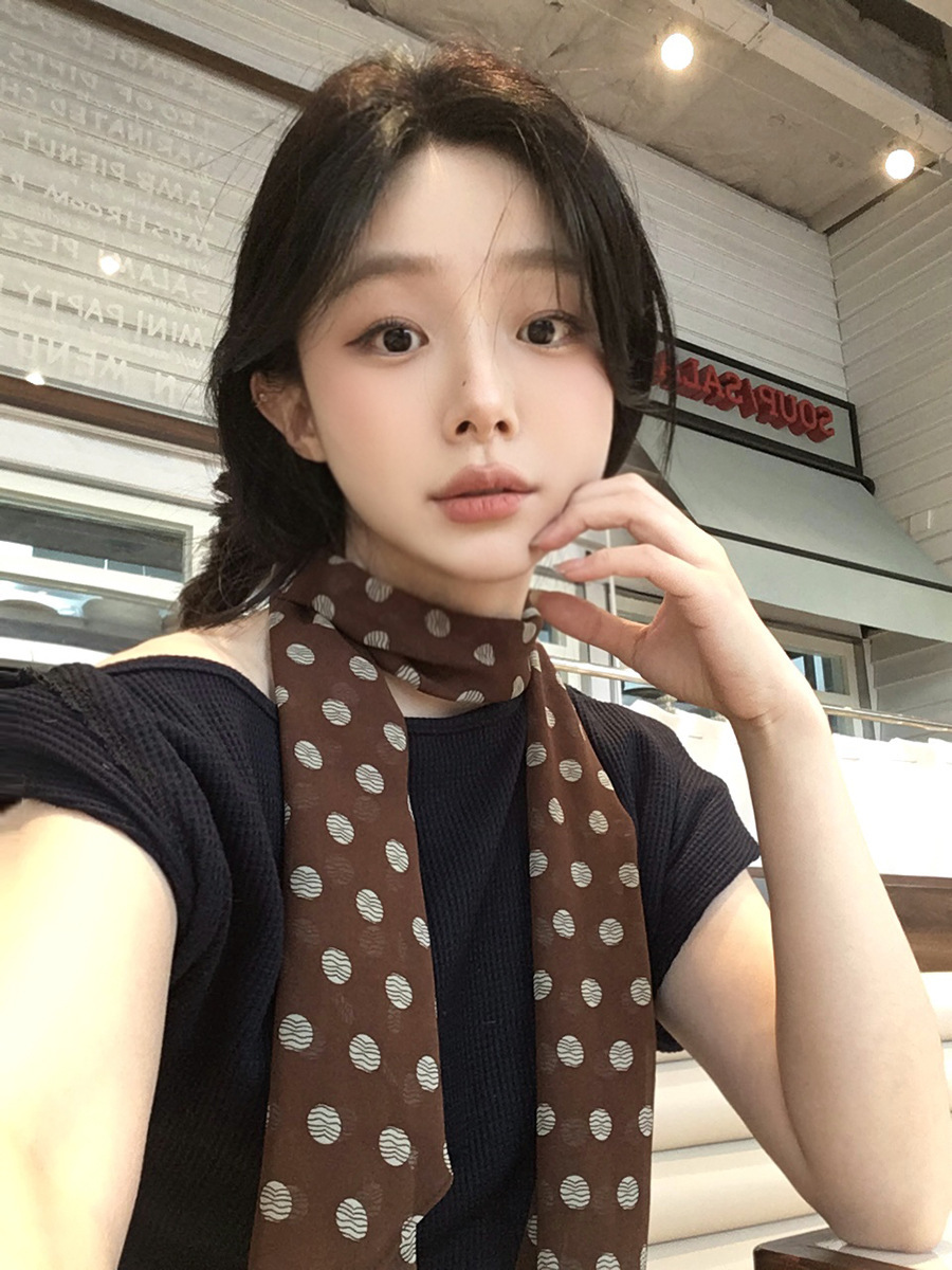나는 실수로 한국 드라마 여주인이되었다! 다용도 레트로 웨이브 도트 롱 실크 스카프 여성용 해변 휴가 목 스카프 헤어 벨트스토어 가기