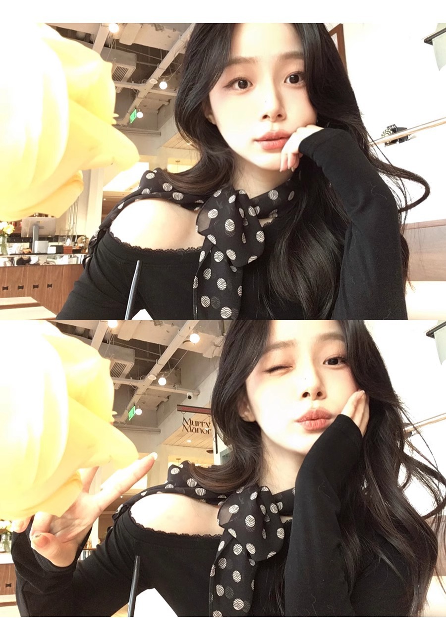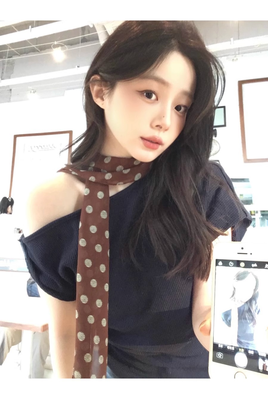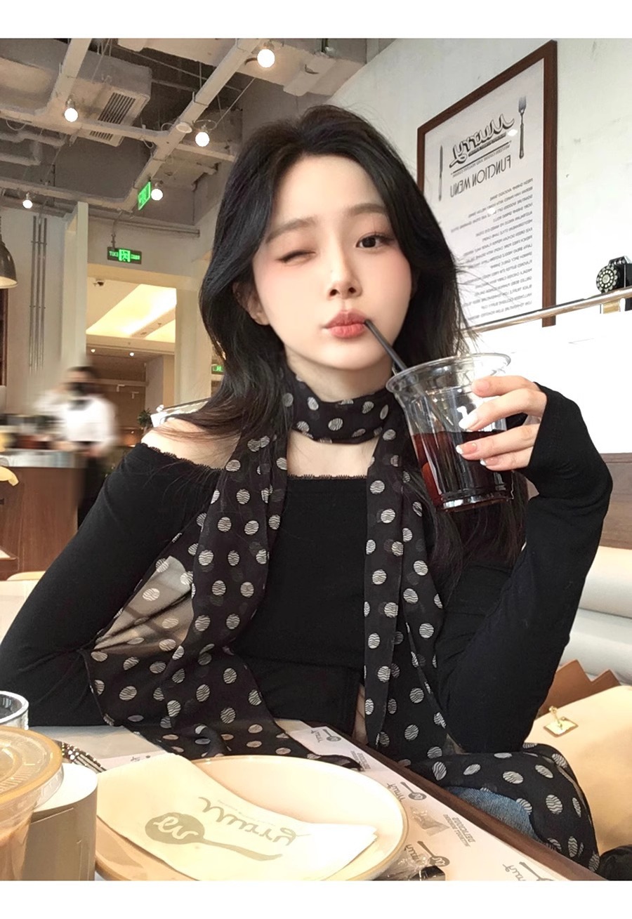 나는 실수로 한국 드라마 여주인이되었다! 다용도 레트로 웨이브 도트 롱 실크 스카프 여성용 해변 휴가 목 스카프 헤어 벨트스토어 가기