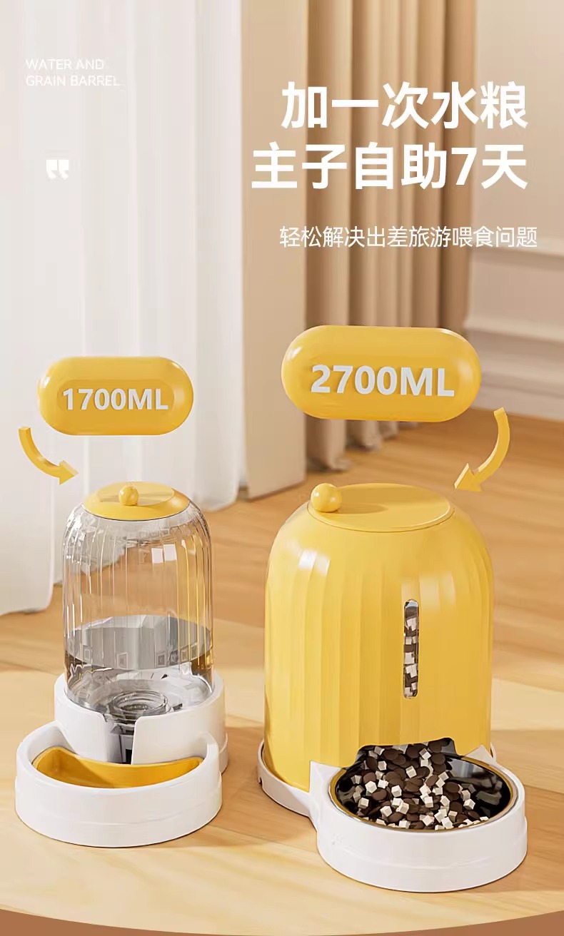 국경 간 새로운 애완 동물 자동 피더 비 카드 음식 분할 고양이 그릇 재고 대용량 애완 동물 물 디스펜서