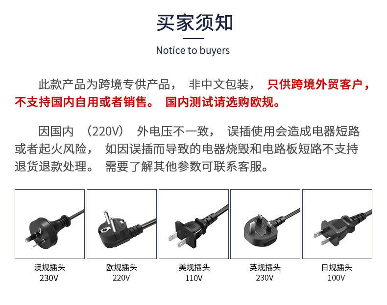 • 미국 표준 110V(중국에서는 사용할 수 없음)