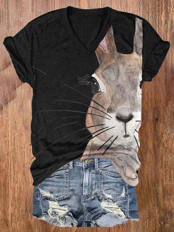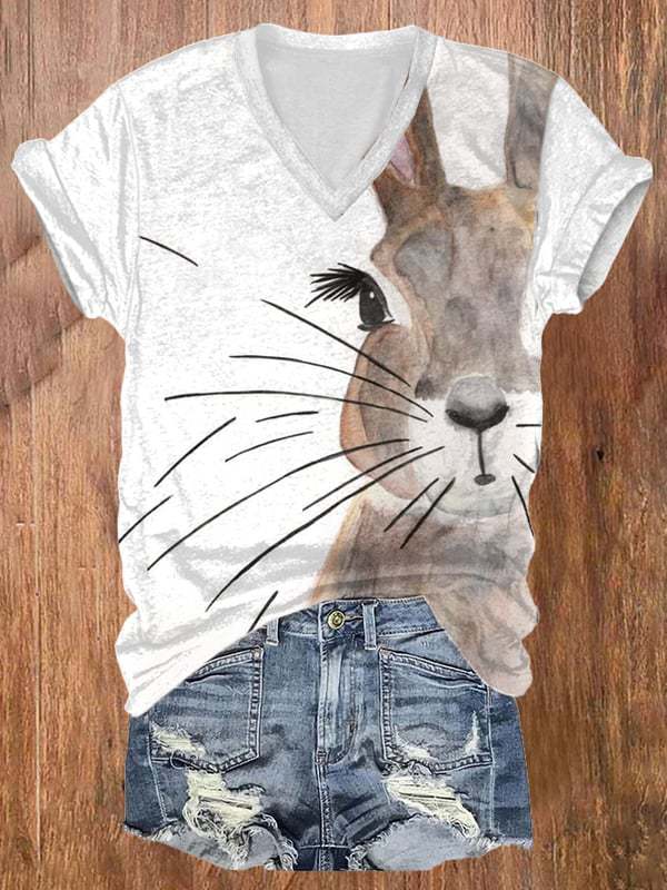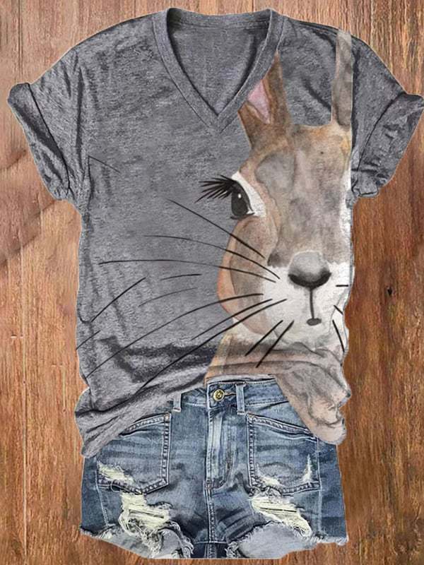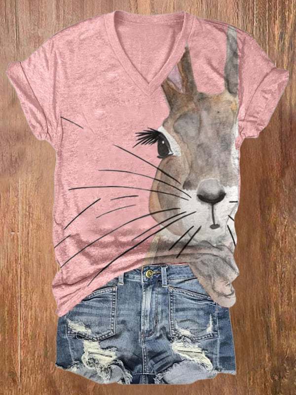 유럽과 미국 국경 아마존 독립 스테이션 3D 디지털 인쇄 부활절 여성의 V 넥 짧은 소매 티셔츠 공장 직접 판매