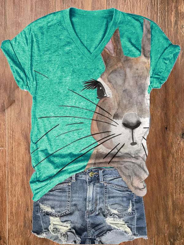 유럽과 미국 국경 아마존 독립 스테이션 3D 디지털 인쇄 부활절 여성의 V 넥 짧은 소매 티셔츠 공장 직접 판매스토어 가기