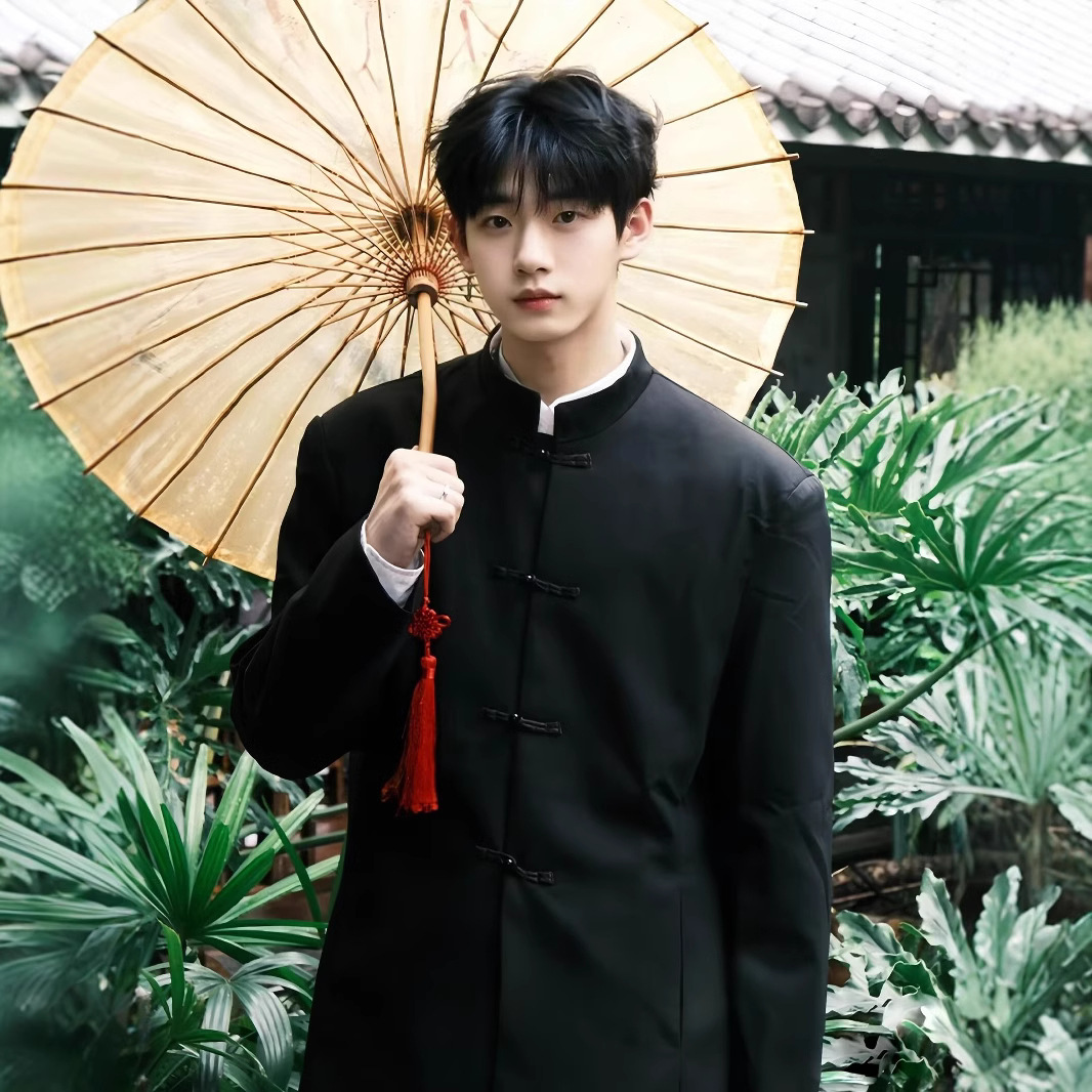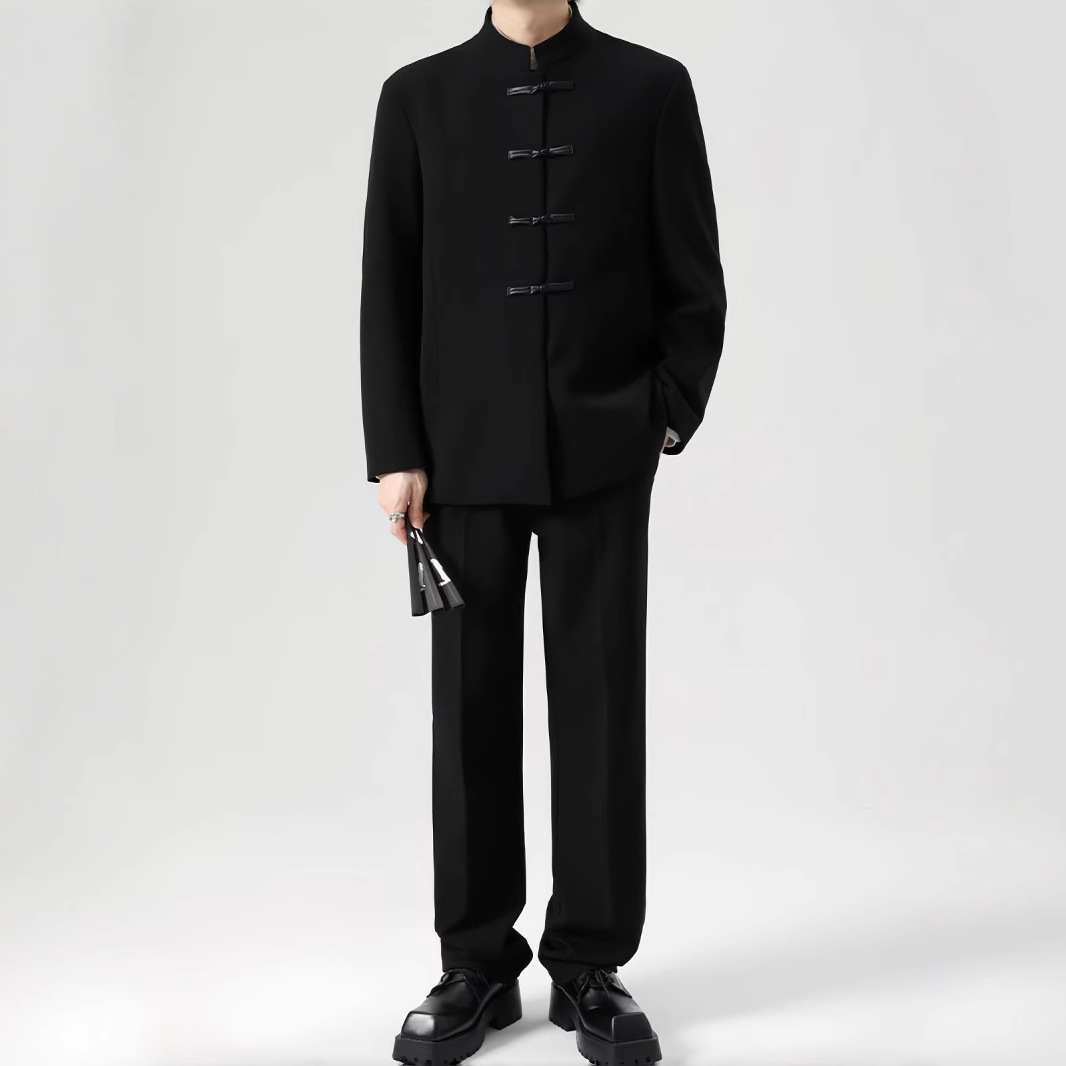 중국 스타일의 새로운 중국 스타일 중국 튜닉 세트 버클과 버클 하이 엔드 느낌 새로운 스타일 잘 생긴 수직 칼라 세트 재킷 남성 캐주얼 세트 작은 세트