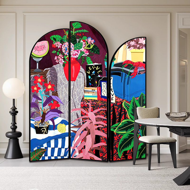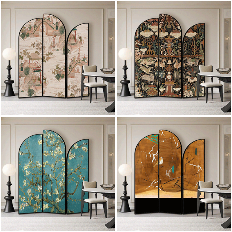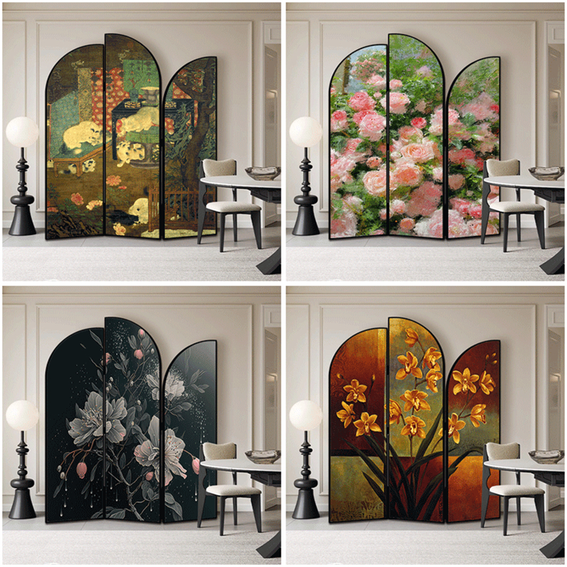 3W 프랑스 중간 고대 스크린 파티션 거실 복고풍 중국 스타일 오피스 호텔 쉼터 접이식 모바일 입구 접기