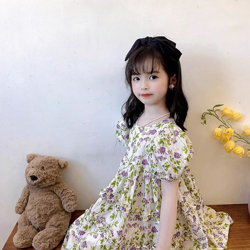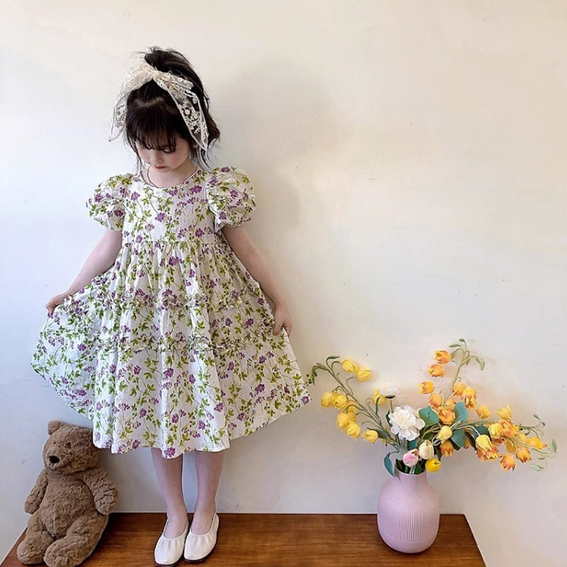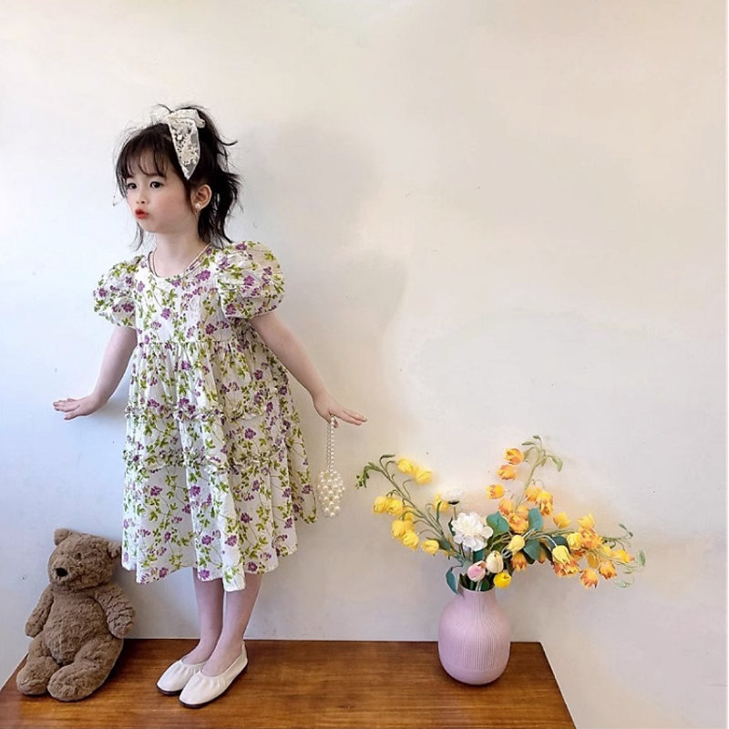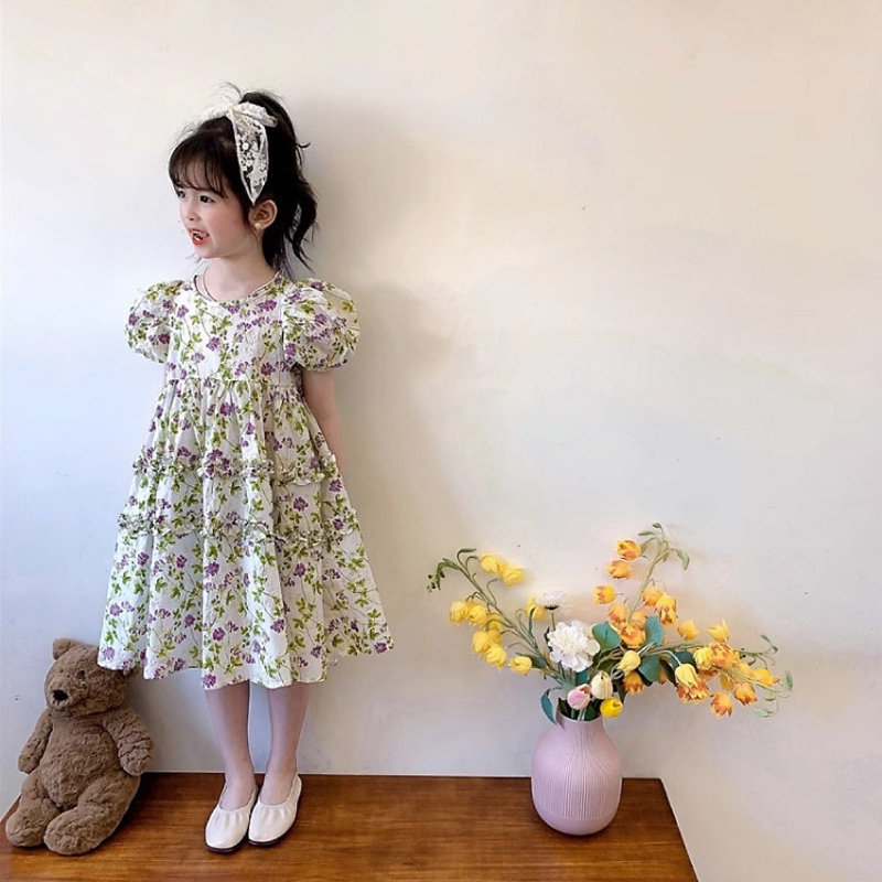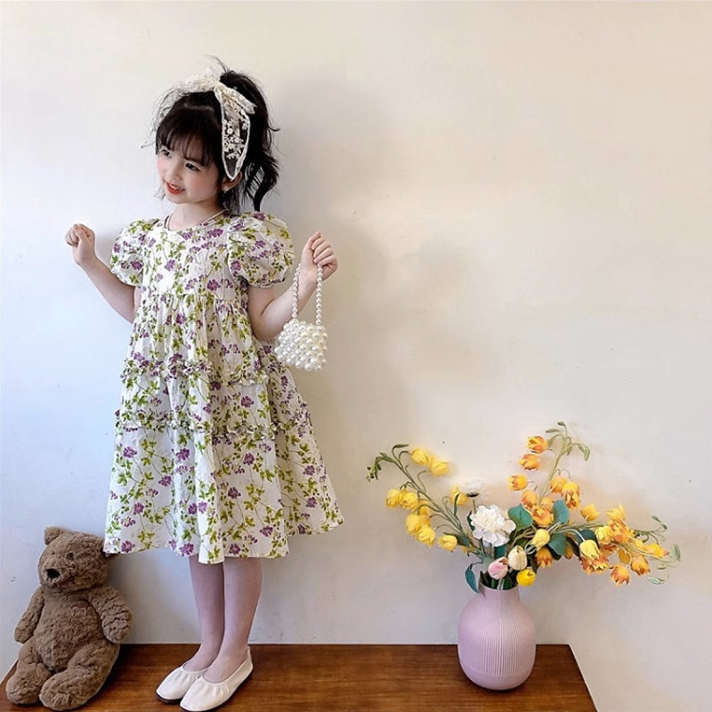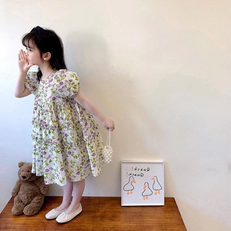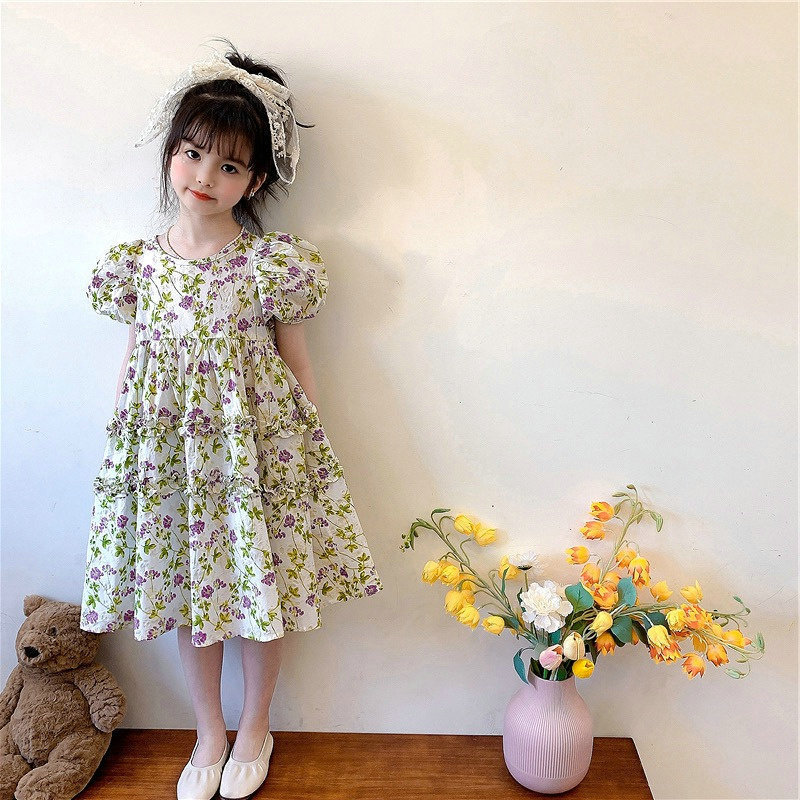 소녀의 원피스 꽃 크루 넥 짧은 소매 원피스 공주 원피스 25 여름 새로운 대외 무역 아동복 3-8 년스토어 가기