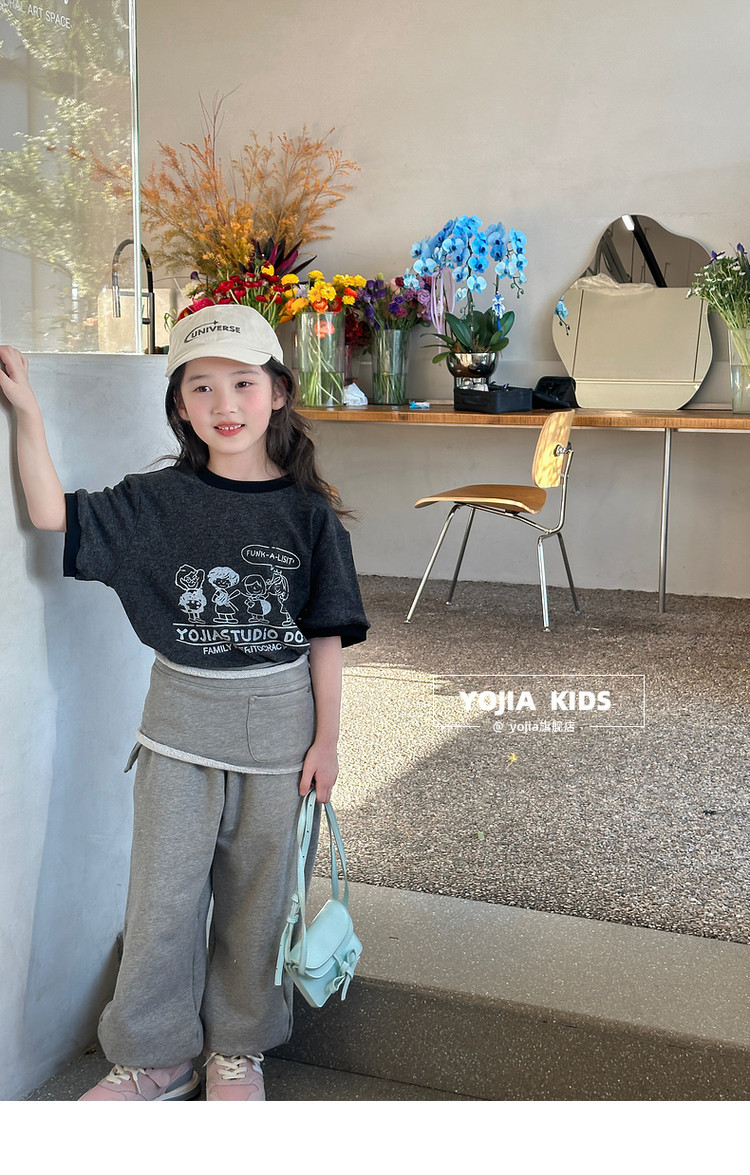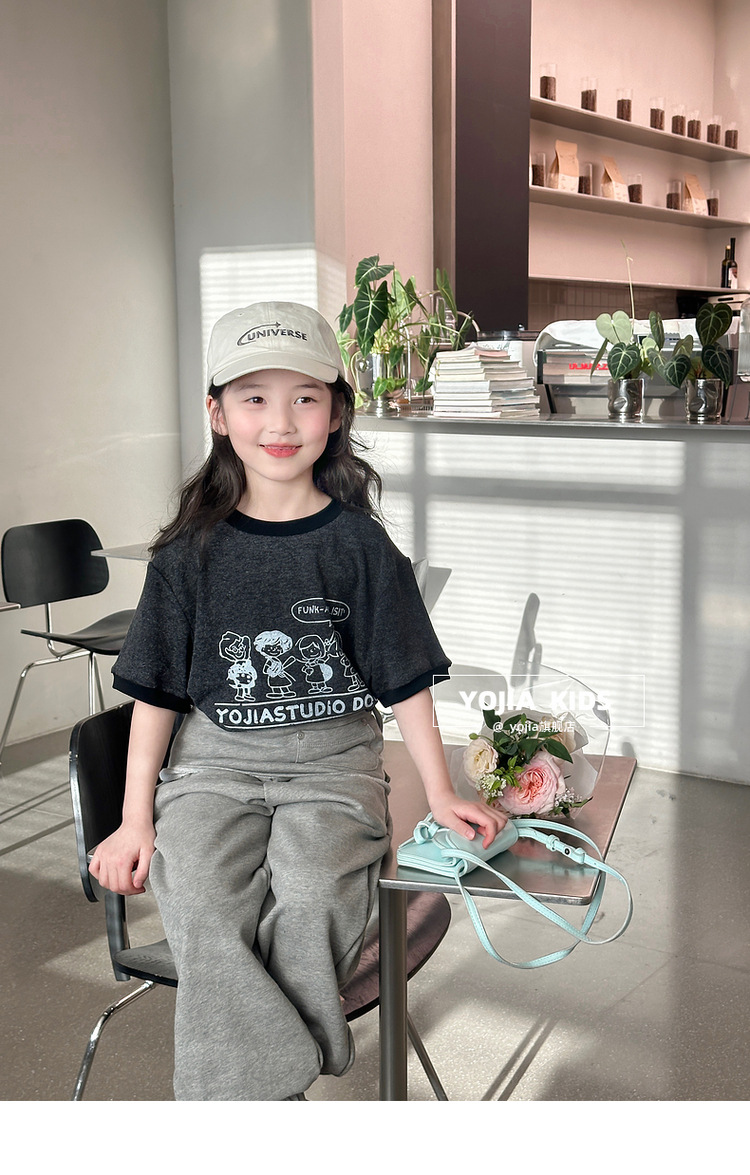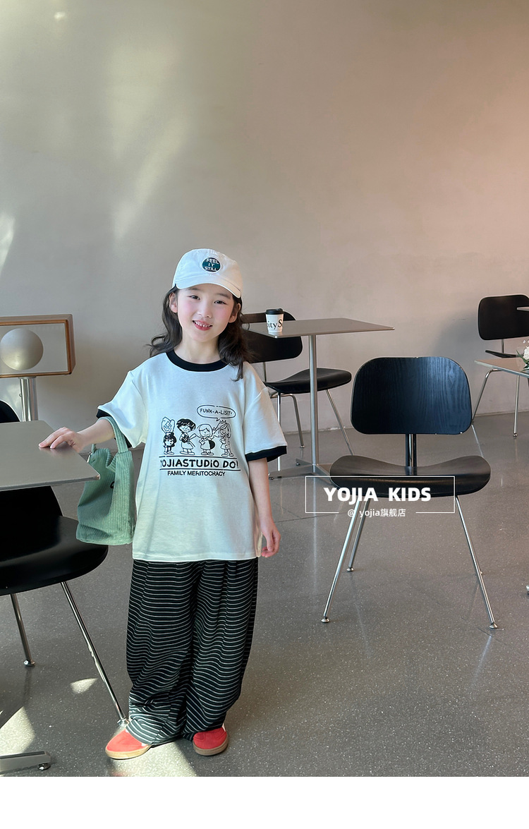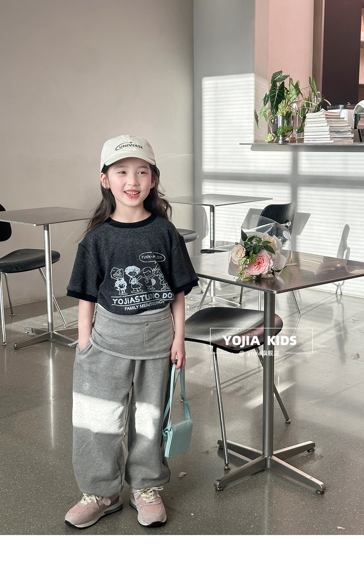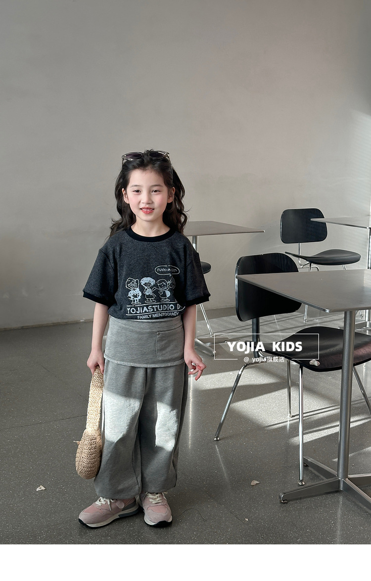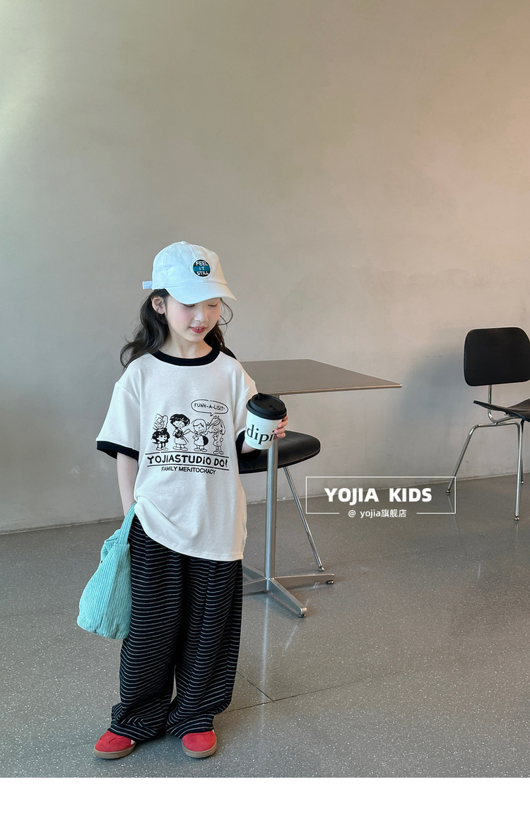 YOJIA 소녀 반팔 봄과 여름 2025 새로운 도착 한국 스타일 서양식 작은 소녀 크루 넥 티셔츠 어린이 티셔츠 여름 원피스스토어 가기