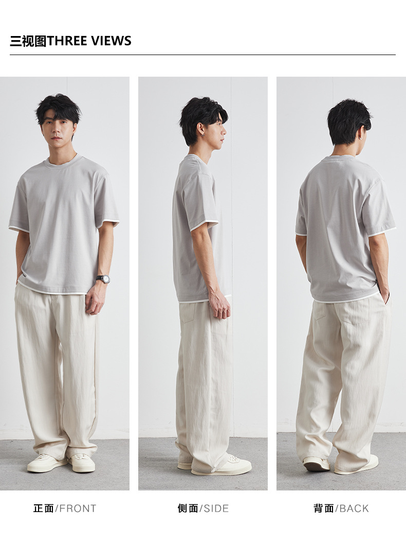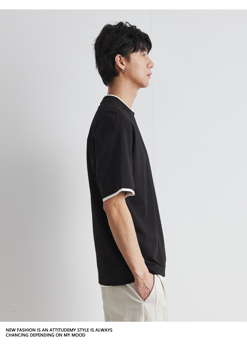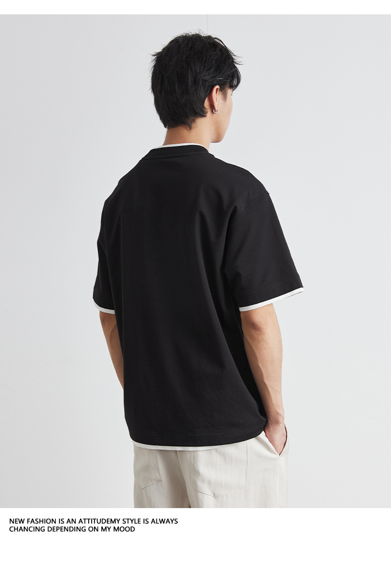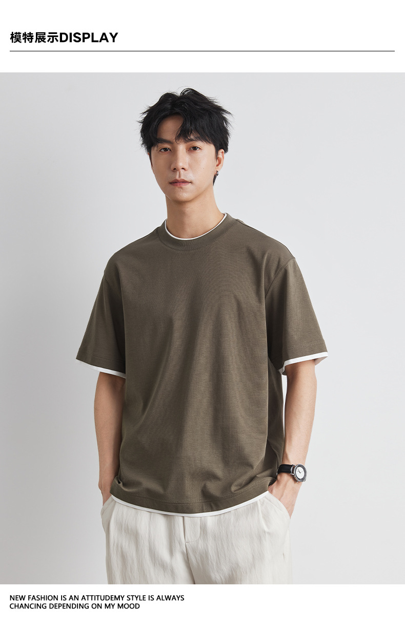 또한 남성용 가짜 투피스 반팔 티셔츠 2025 년 여름 새로운 고급 한국 패션 남성베이스 셔츠스토어 가기
